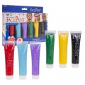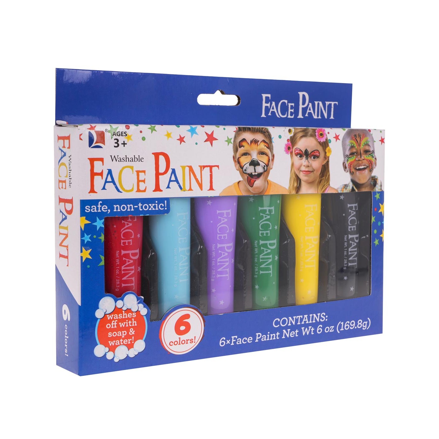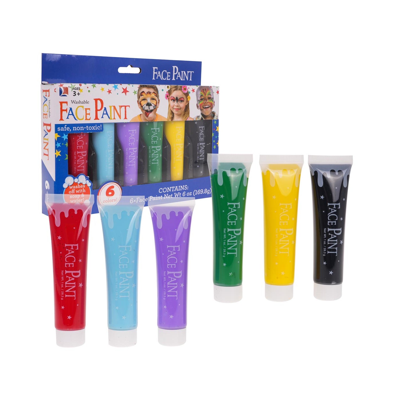 Sada farieb na tvár pre deti od 3 rokov. Farby na tvár sú vyrobené z netoxických materiálov bezpečných pre deti. Sú ľahko umývateľné, stačí mydlo a voda. Sada obsahuje 6 tub s farbami na tvár v rôznych farbách.
