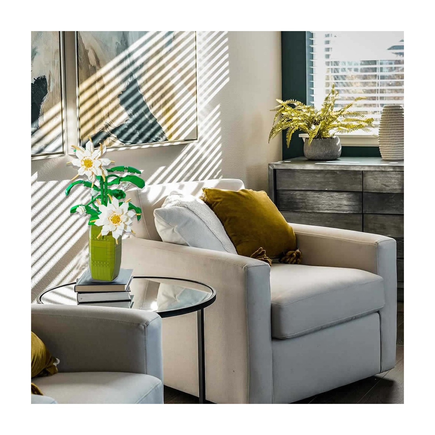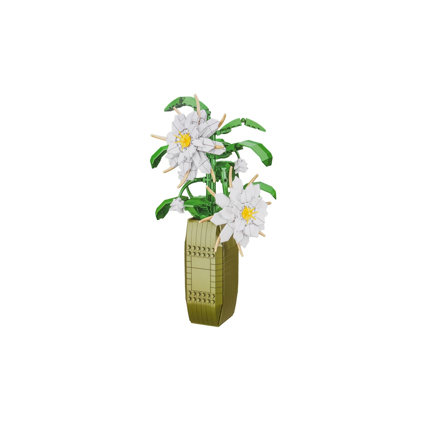 Vysokokvalitné stavebné kocky pre deti od šiestich rokov. Táto sada zo série Kvetina pozostáva z 571 dielikov, z ktorých si môžete postaviť biele kvety v kvetináči. Tento úžasný model určite zaujme svojím detailným prevedením.