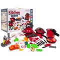 - tlakový hrniec, - batériový sporák, - hrniec s pokrievkou, - panvica, - rýchlovarná kanvica, - štrbinová lyžica, - naberačka, - sekáčik, - rameno, - nôž na pizzu, - lyžica na cestoviny, - gril, - kliešte, - doska na krájanie, - 2x pohár, - 2x pohár, - 2x lyžica, - 2x zásobník, - 2x sada paličiek, - 4x špajle, - kečup, - mlieko, - falošné potravinárske výrobky: vajce, 2 x kukurica, 2 x kus mäsa, 2 x klobása, kus kuracieho mäsa, chilli paprička , hrášok (na suchý zips), krab (na suchý zips), brokolica (na suchý zips), zelená paprika, mrkva , zemiak , šalát (na suchý zips), baklažán, cibuľa (na suchý zips), huby (na suchý zips), ryba (na suchý zips), praženica, šalát (na suchý zips), ryba (na suchý zips), brokolica (na suchý zips), cibuľa (suchý zips), huba (suchý zips) |