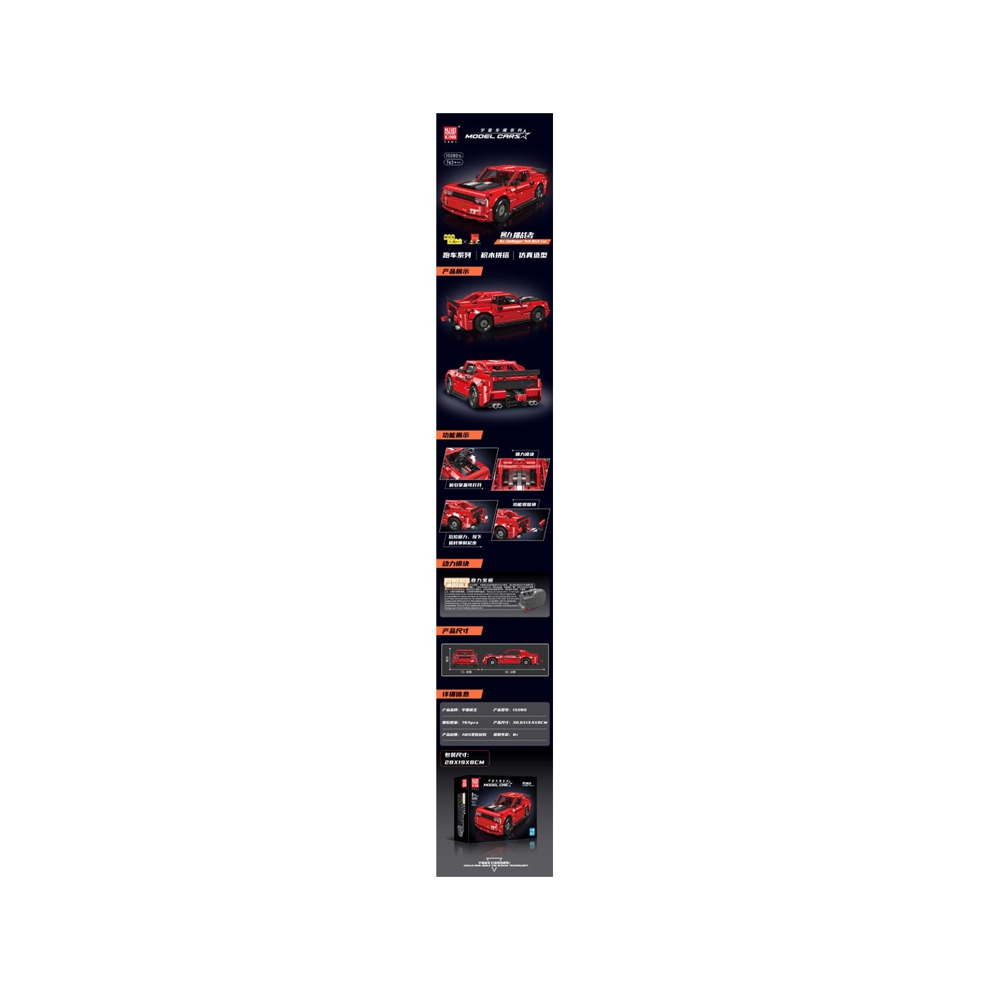 Červená sada blokov do športových áut 1958 ks.
