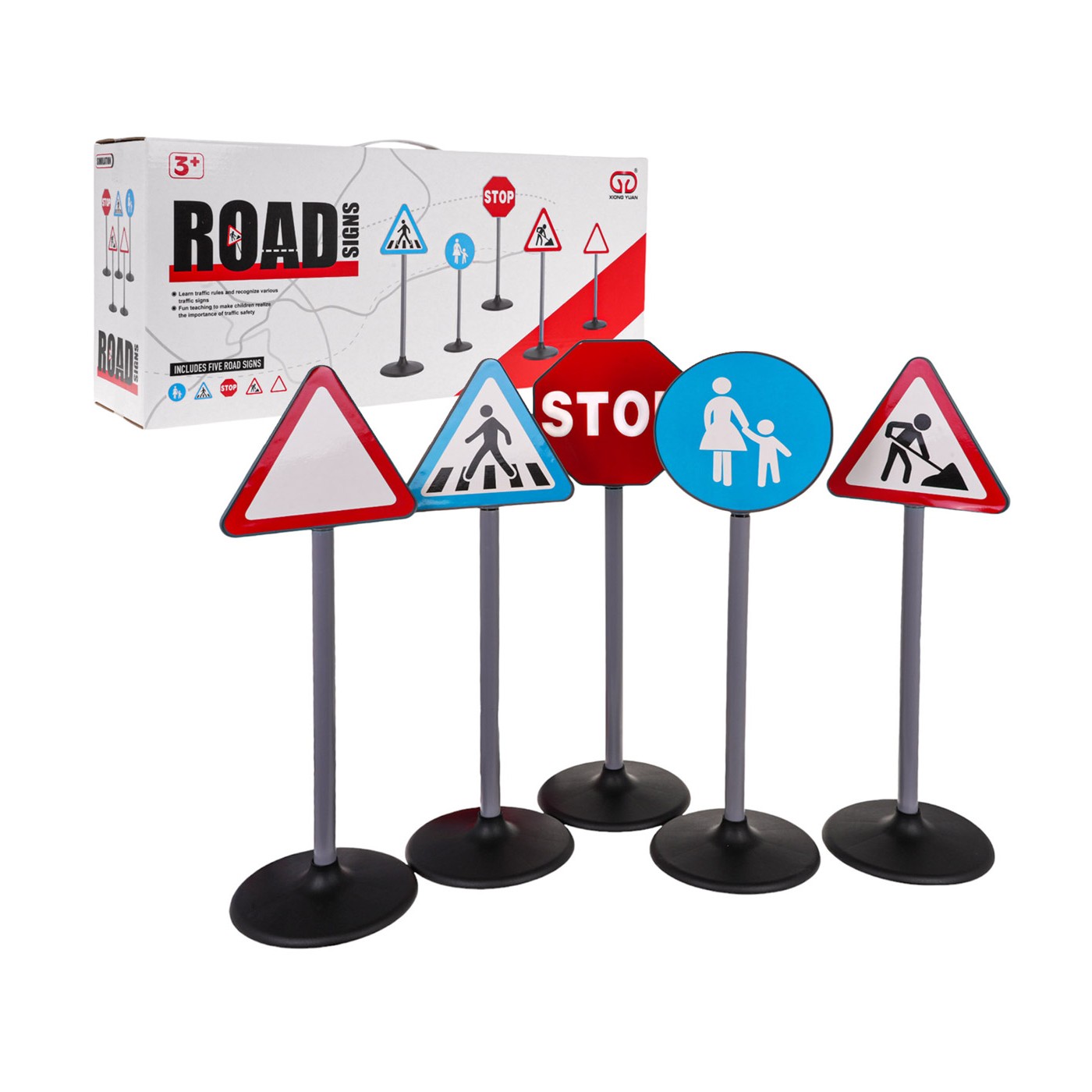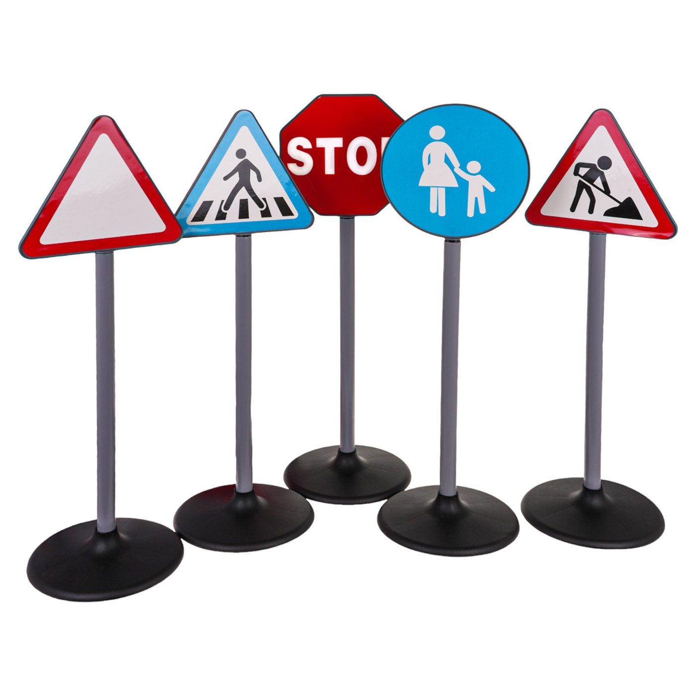 Sada 5 dopravných značiek pre deti od 3 rokov. Sada pozostáva z dopravných značiek: stopka, prechod pre chodcov, výstražný trojuholník, cestné práce, chodník pre chodcov, ktoré boli vyrobené s dôrazom na detail a vyzerajú veľmi realisticky. Veľkosť je samozrejme prispôsobená výške dieťaťa. Ideálna hračka na učenie sa pravidiel cestnej premávky.
