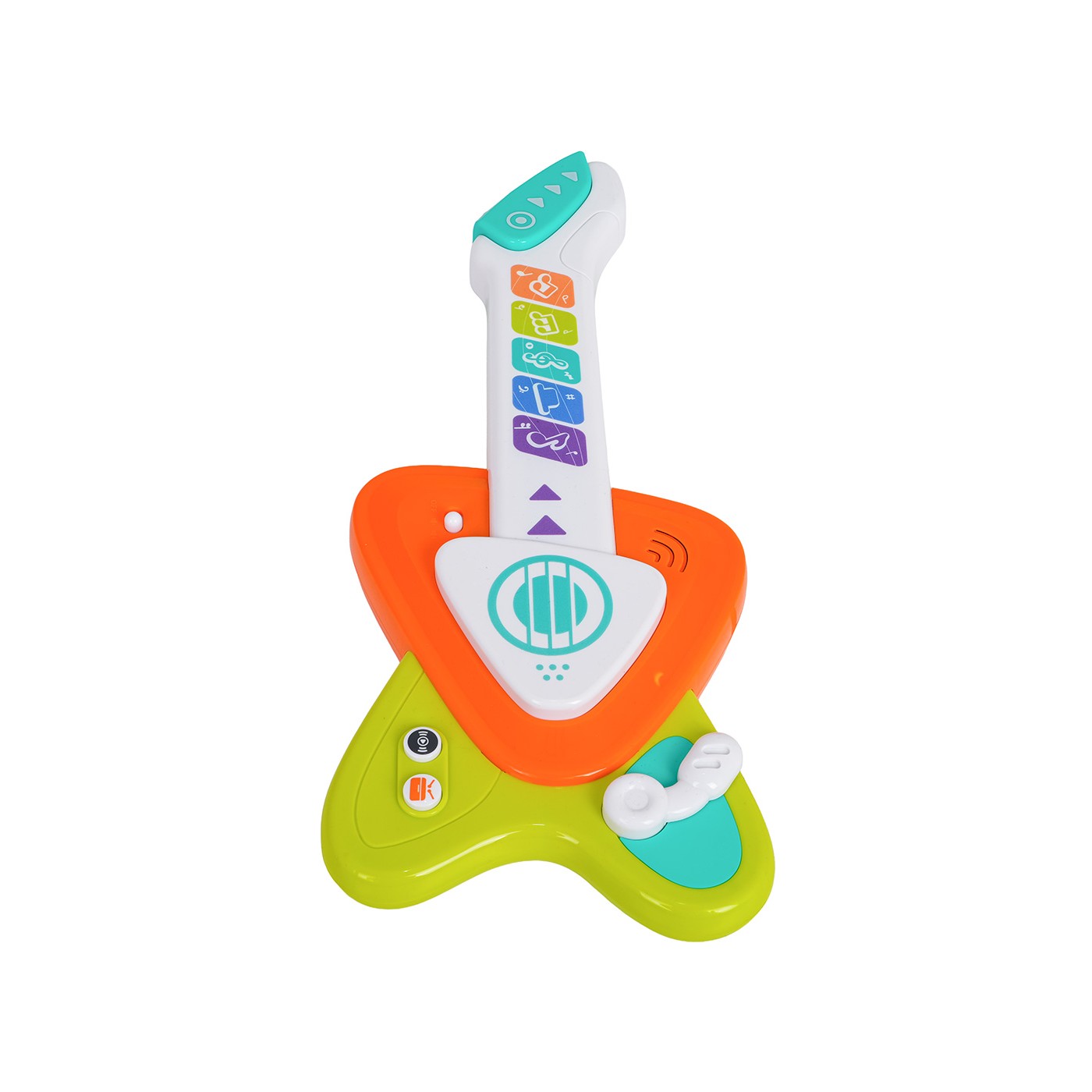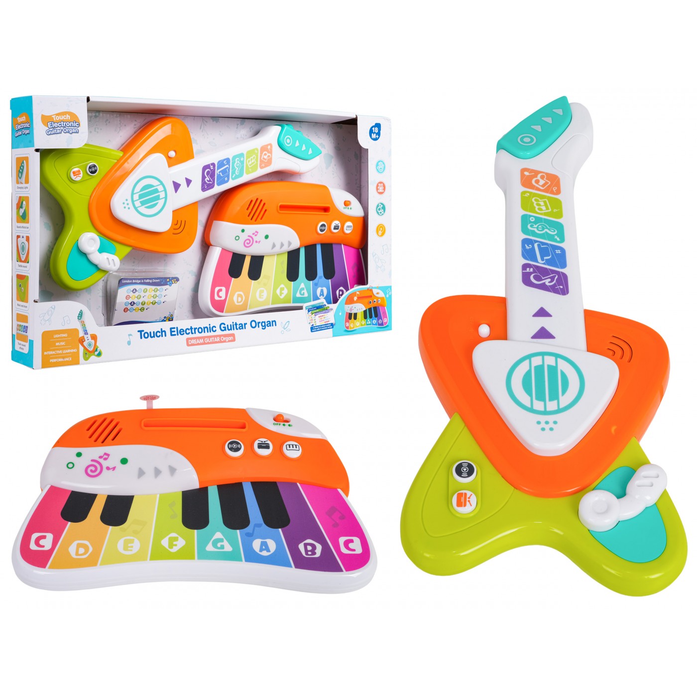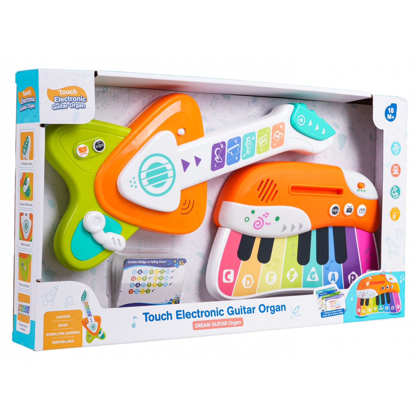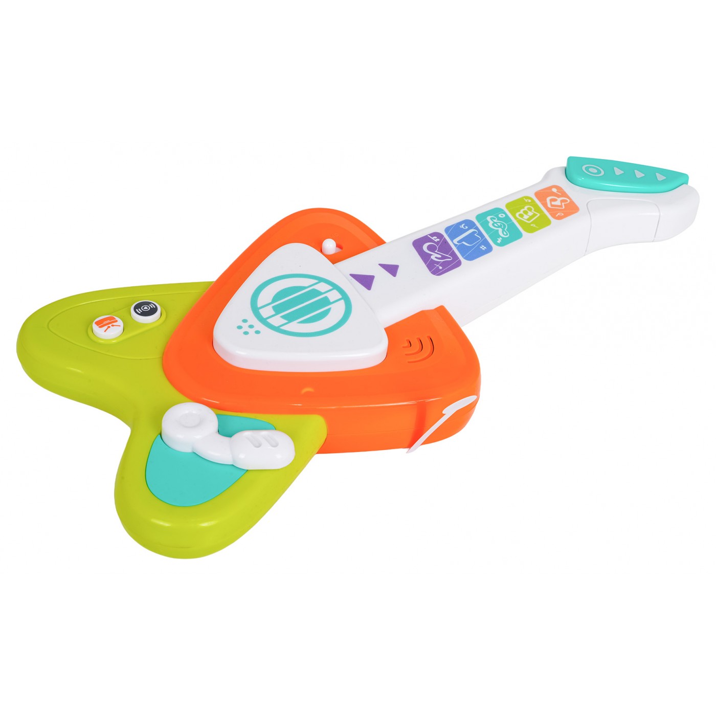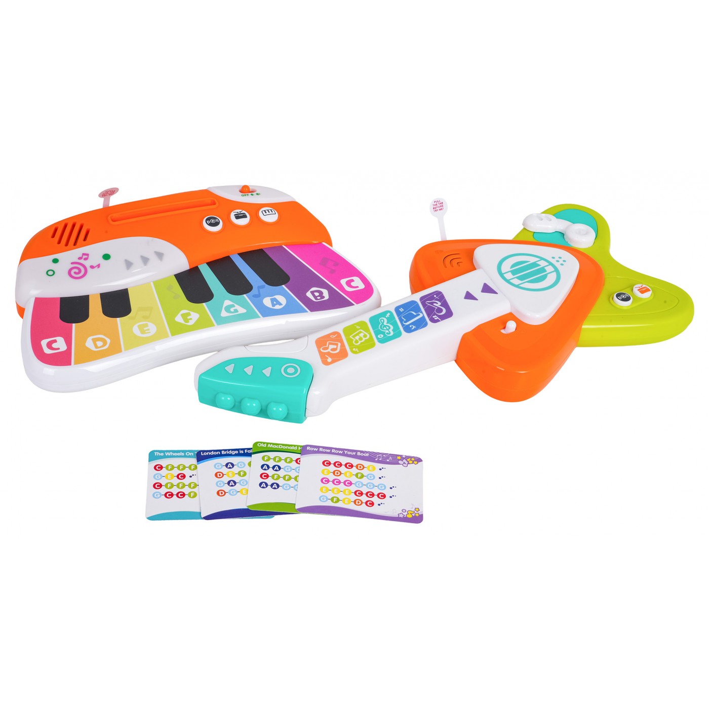 Sada prvých hmatových nástrojov pre deti od osemnástich mesiacov. Sada obsahuje gitaru, klávesy a notový zápis. Tieto hračkárske nástroje sú vyrobené z najkvalitnejšieho plastu bezpečného pre deti. Sýte farby sady priťahujú pozornosť detí a povzbudzujú k hre. Hra na nástroje rozvíja hudobné zručnosti a sluch detí a učí ich rozlišovať zvuky. Gitara je napájaná 3 batériami AAA 1,5 V (nie sú súčasťou balenia), zatiaľ čo klávesy sú napájané 3 batériami AAA 1,5 V (nie sú súčasťou balenia). Vlastnosti: - pre deti od osemnástich mesiacov veku, - vyrobené z najkvalitnejších materiálov bezpečných pre deti, - živé farby stimulujú zmysly, - sada rozvíja hudobné zručnosti, učí rozlišovať zvuky, - ovládanie hlasitosti, - zvukové efekty gitary: zvuky tónov, hotové hudobné pozadia, bicie - zvukové efekty kláves: hotová hudba na pozadí, bicie, zvuky nôt, - svetelné efekty vo forme blikajúcich farebných svetiel: gitara (zelený hrot), klávesnica (biely panel pod reproduktorom), - notové záznamy na hranie 8 krátkych skladieb. |