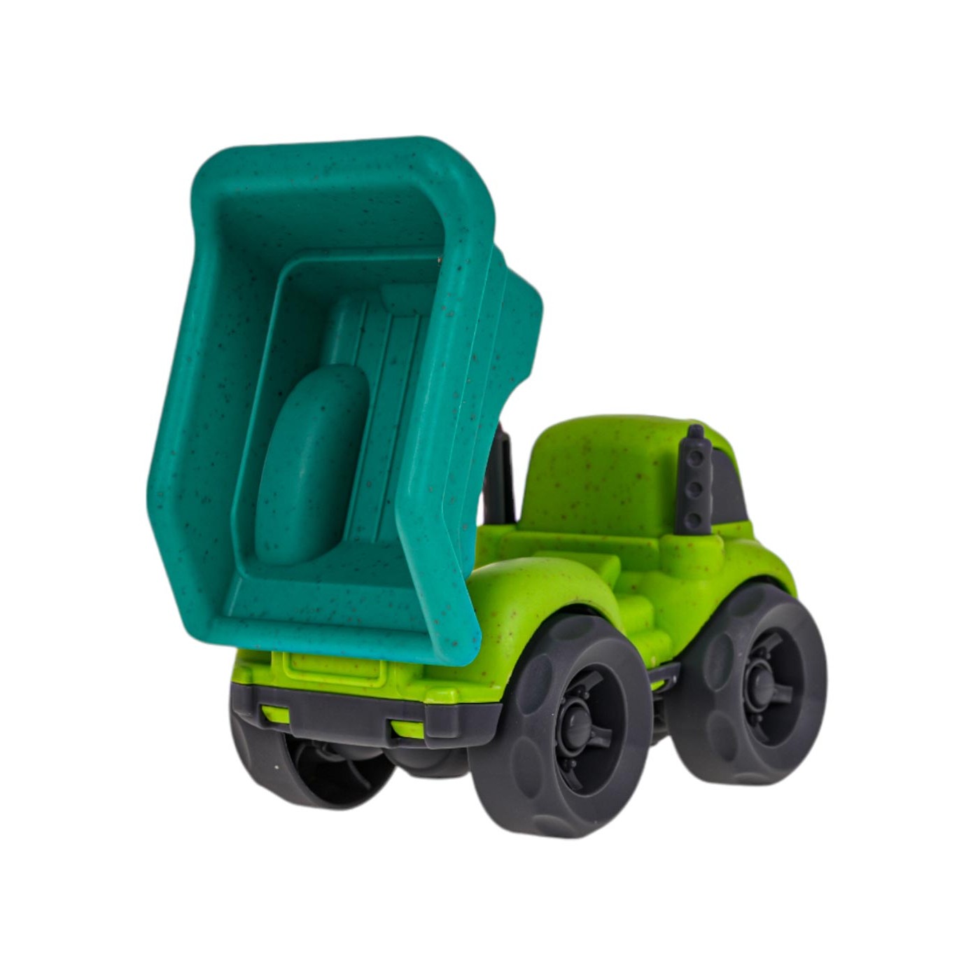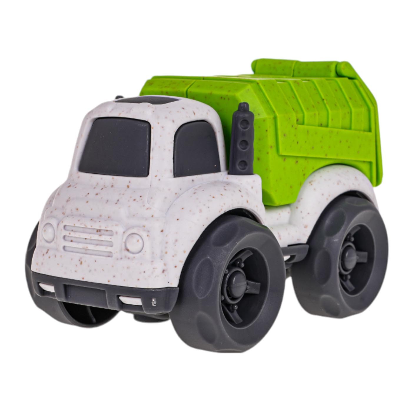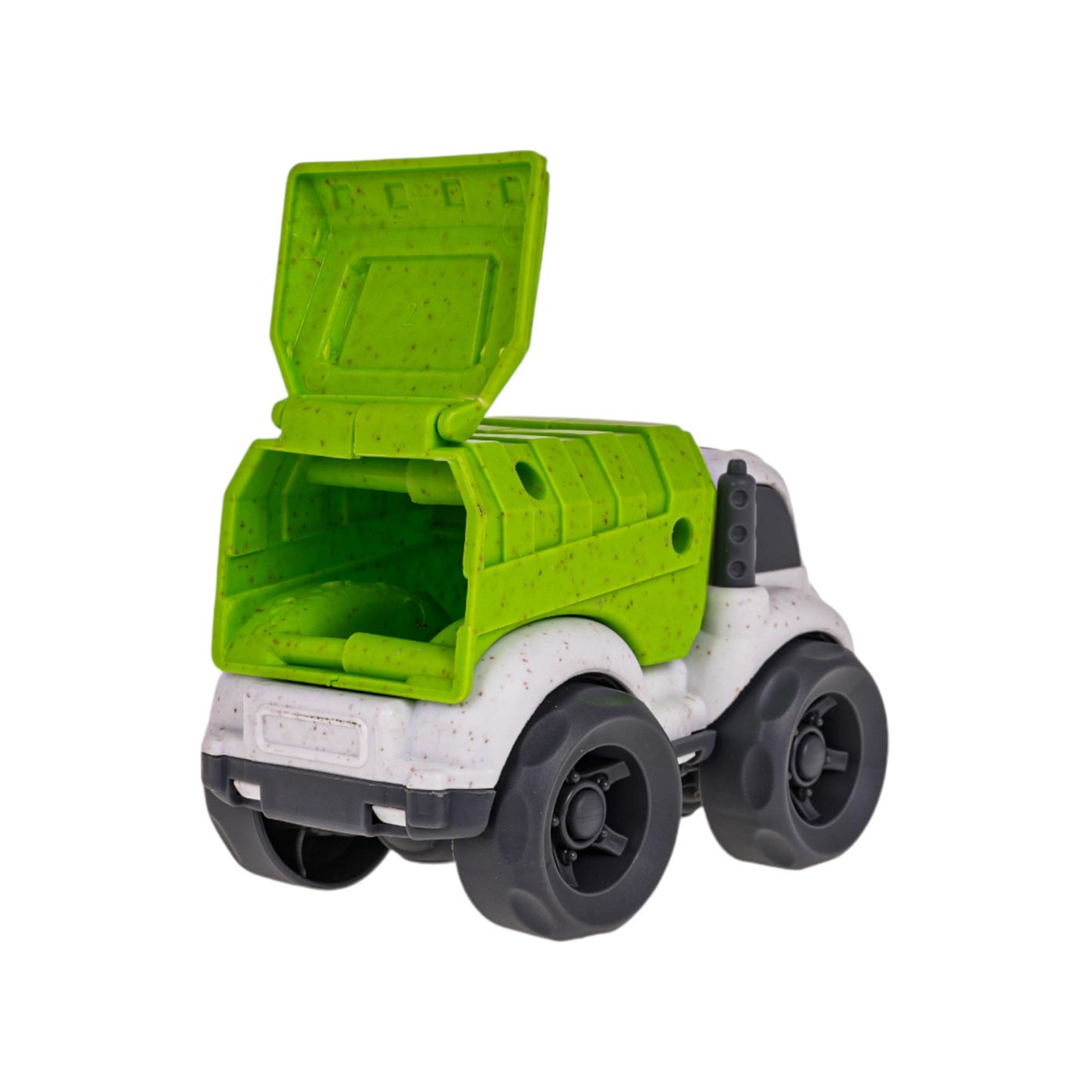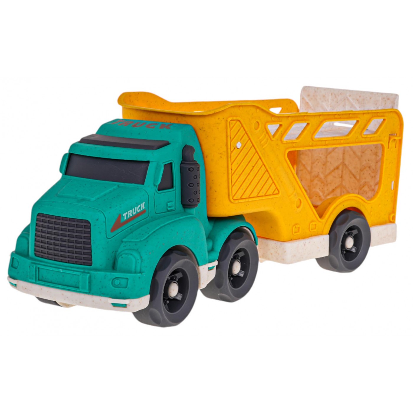 Sada vozidiel z bioplastu pre deti od 18 mesiacov. Súprava pozostáva z veľkého prívesu s pohyblivou plošinou a áut. Ekologický plast je bezpečný pre deti a šetrný k životnému prostrediu. Vozidlá sú farebné, odolné a odolné voči poškodeniu a majú pohyblivé časti. V domiešavači betónu môžeme ručne otáčať betónovou žiarovkou, v sklápači môžeme zdvíhať a spúšťať príves a v smetiarskom aute môžeme otvárať zadné poklop vozidla. Bábätko môže tiež ručne pohybovať vozidlom po zemi vďaka pohyblivým kolieskam.