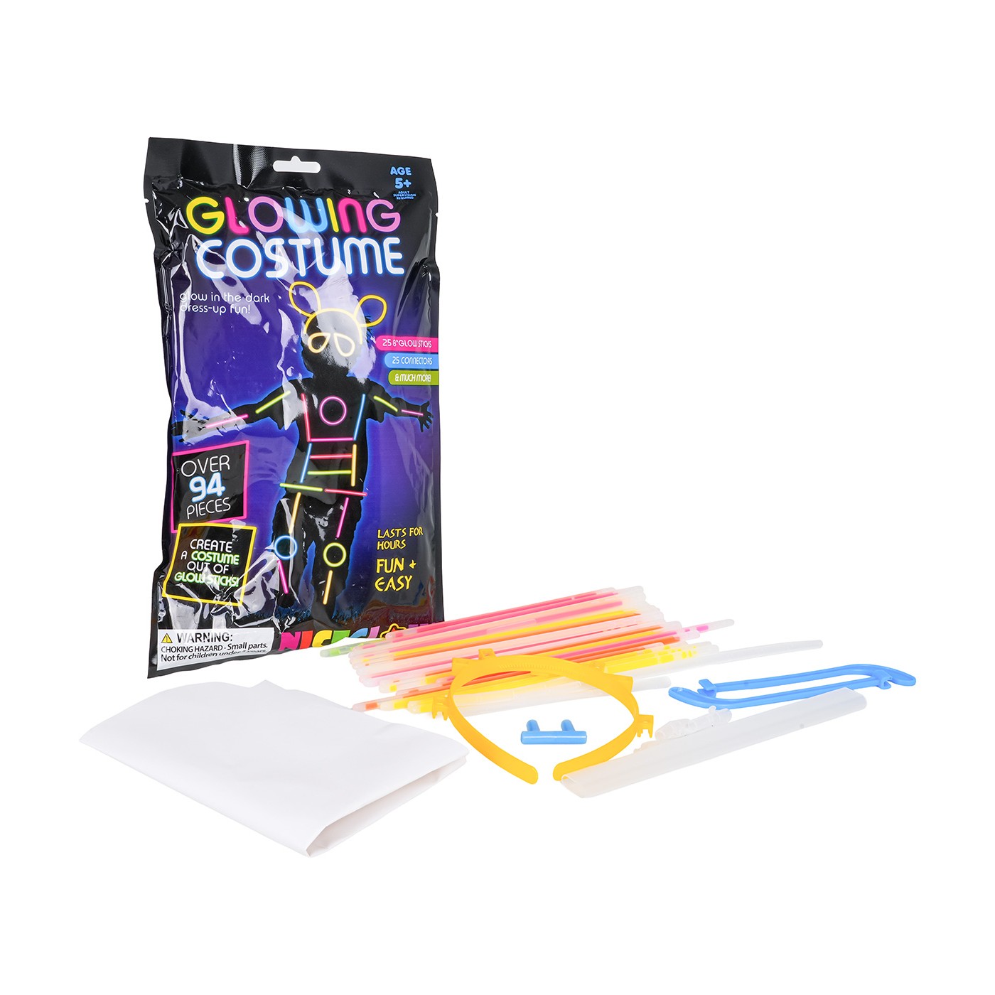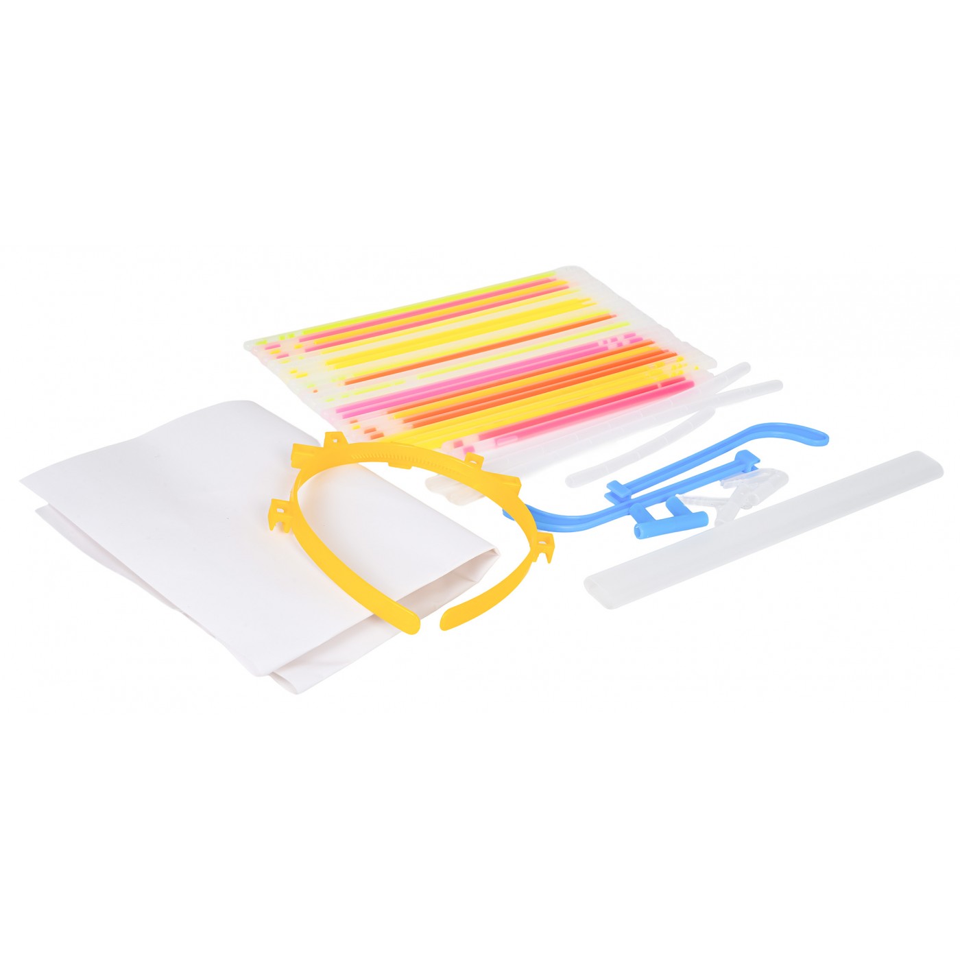 Sada svietiacic tyčiniek pre deti od piatich rokov. Tyčinky sa dajú použiť na výrobu okuliarov, čeleniek alebo na zdobenie kostýmov. Sú ideálne na plesy, predstavenia a vonkajšie podujatia. Tyčinky zvyčajne svietia 6 až 8 hodín v závislosti od teploty okolia. Sada sa ľahko používa. Tyčinky jednoducho ohnite, kým nezacvaknú, a potom nimi zatraste. Potom ich pomocou priložených spojovacích prvkov vytvarujte do okuliarov alebo čelenky.