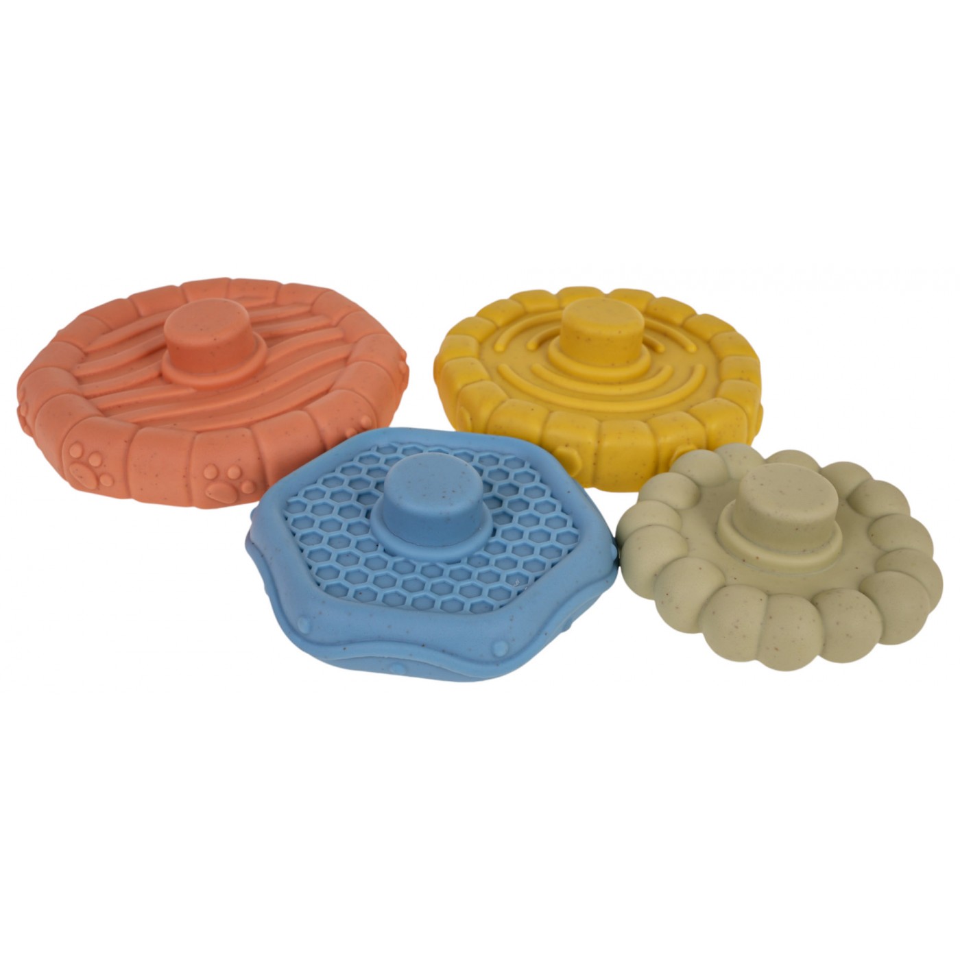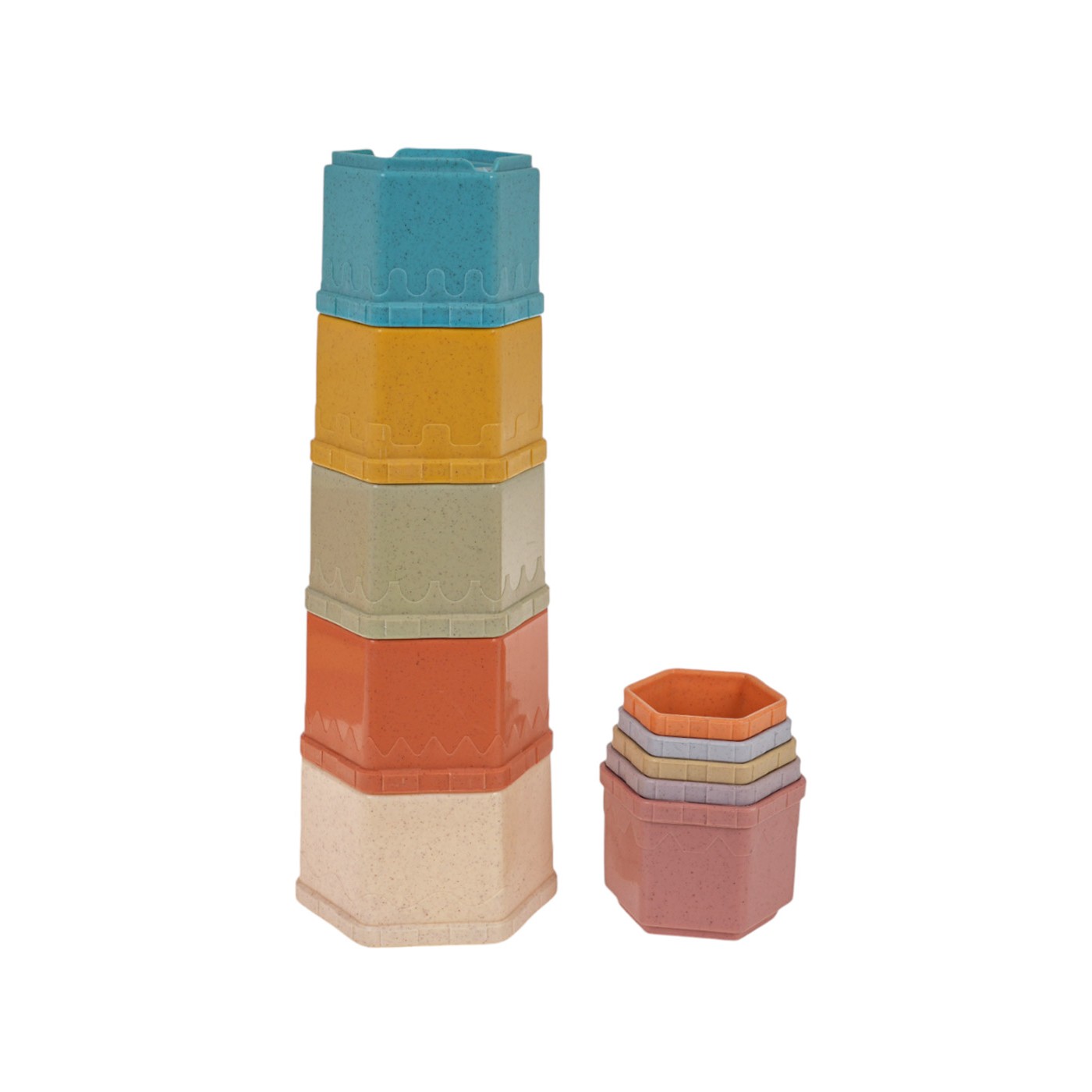 - učí farby a tvary, - učí, ako postaviť štruktúru, usporiadať prvky na sebe, - stimuluje zmysly dieťaťa farbami a rôznymi prvkami, - ponúka veľa možností zábavy, po hraní skryť do krabice , - perfektná hračka na doma, do kúpeľa alebo do piesku. |