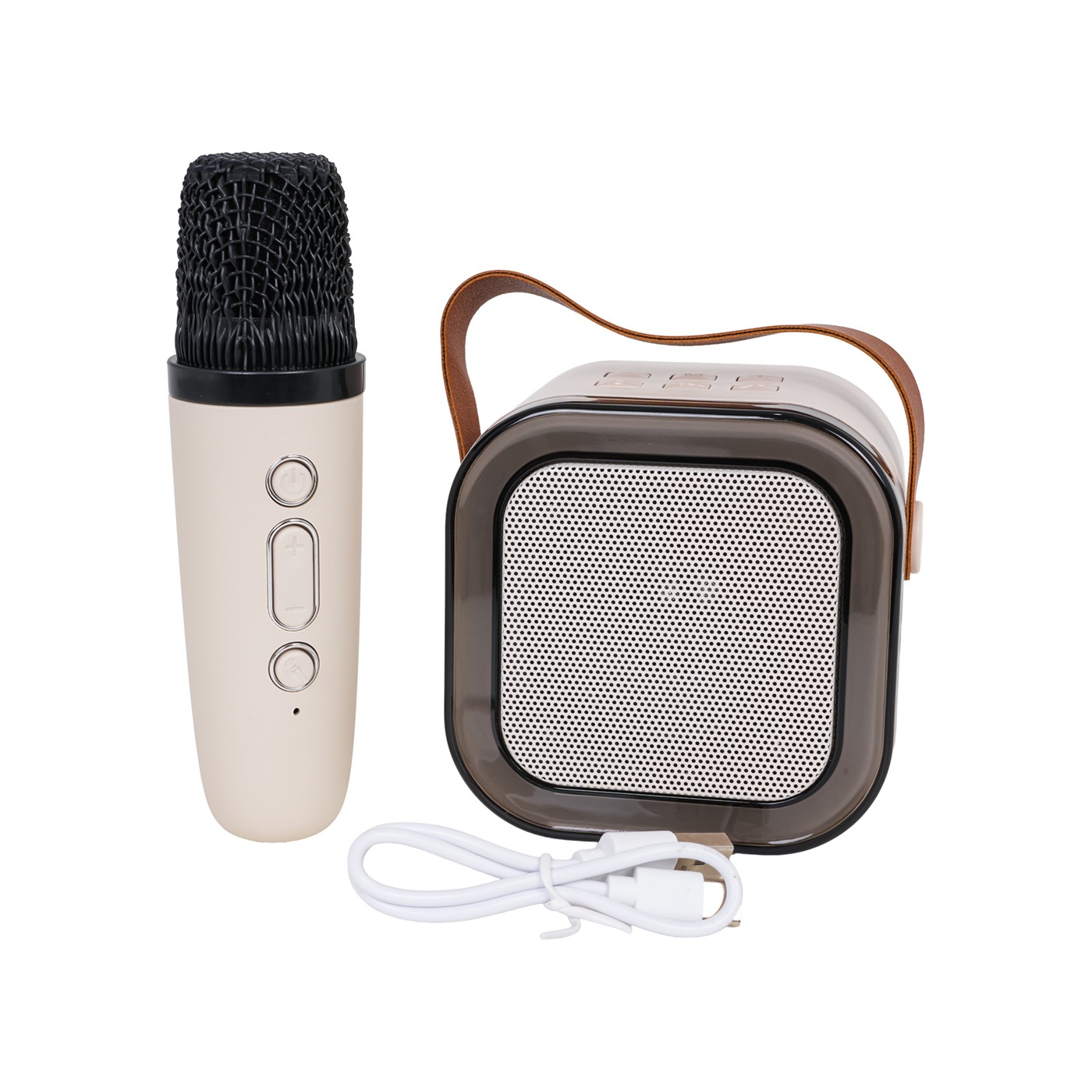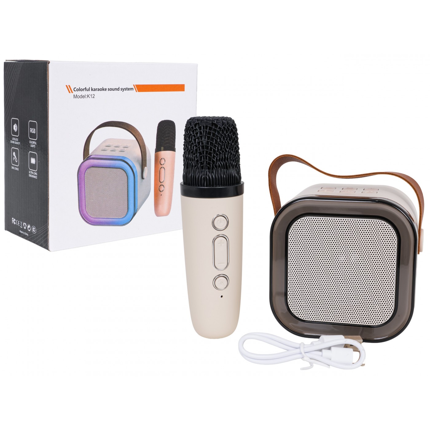 Sada karaoke mikrofónu a reproduktora pre deti od troch rokov, ako aj pre dospelých. Táto prenosná sada zaberá málo miesta a je ľahká, takže si ju môžete vziať kamkoľvek. Nenechajte sa oklamať jej malými rozmermi, pretože táto sada sa môže pochváliť výnimočnou kvalitou zvuku a vytvára úžasný vizuálny zážitok s RGB osvetlením. Pokročilá technológia dekódovania MP3 poskytuje čistý a silný zvuk. Reproduktor je vybavený redukciou šumu DSP, vďaka čomu je zvuk hlasnejší a plnší. Bluetooth zaisťuje stabilné pripojenie. Sada je kompatibilná s mobilnými telefónmi, televízormi, tabletmi, počítačmi a ďalšími zariadeniami, ako aj s rôznymi populárnymi aplikáciami. Reproduktor má slot pre 64G TF kartu, slúchadlá a nabíjačku typu C. Vysokokvalitná kožená rukoväť je praktická a odolná. Na výber je 5 LED svetelných efektov, ktoré sa synchronizujú s hudbou a vytvárajú neuveriteľný vizuálny zážitok. Krátkym stlačením tlačidla na reproduktore sa zmenia svetelné efekty a podržaním na dve sekundy sa LED diódy vypnú. Indikátor nabíjania uľahčuje používanie a odolné puzdro s úrovňou ochrany IPx3 zaisťuje ochranu pred dažďom a dlhú životnosť.