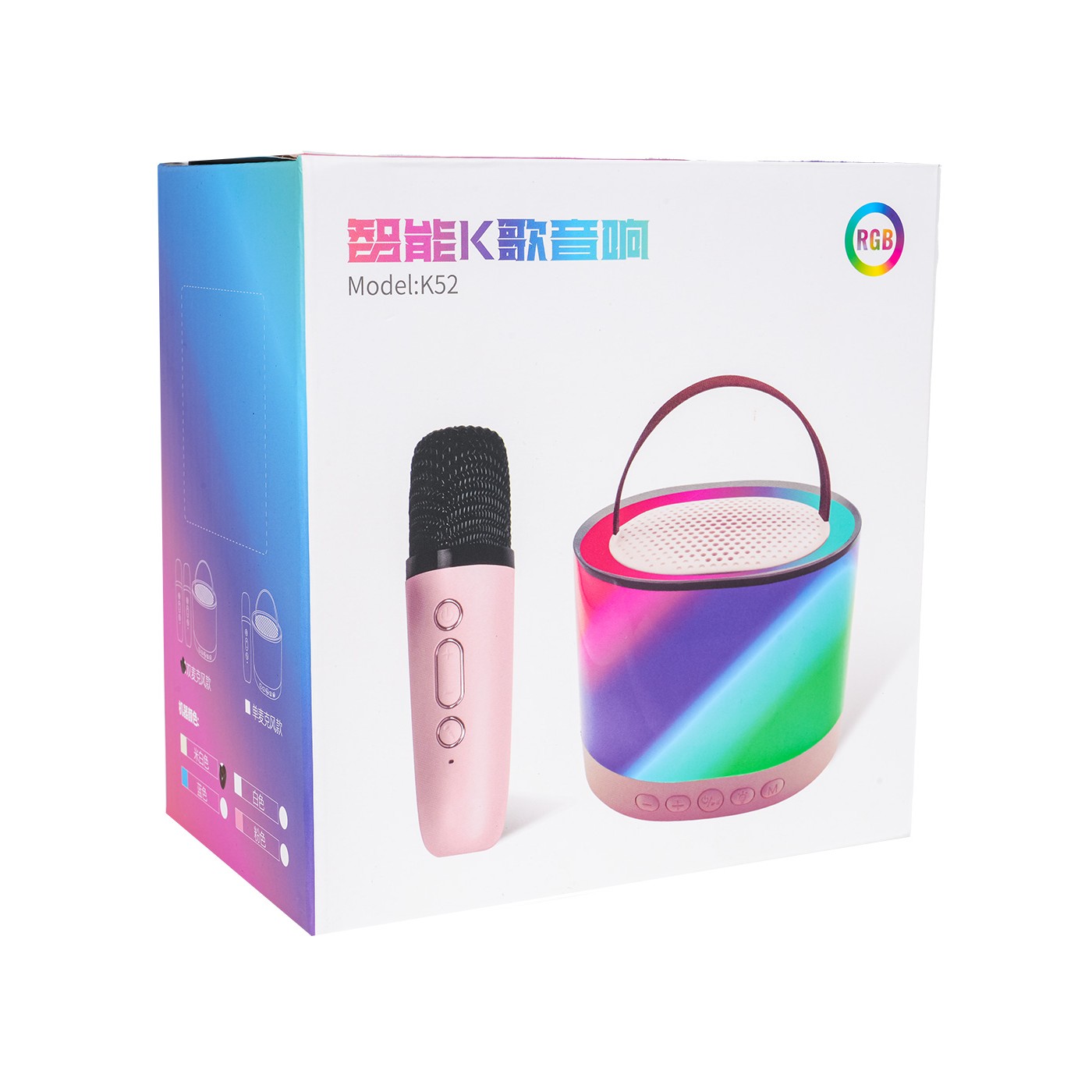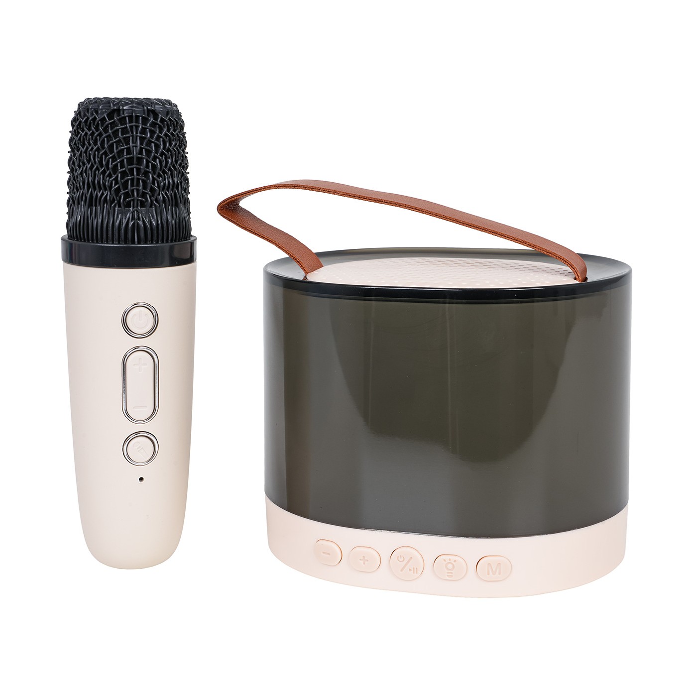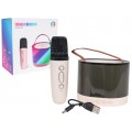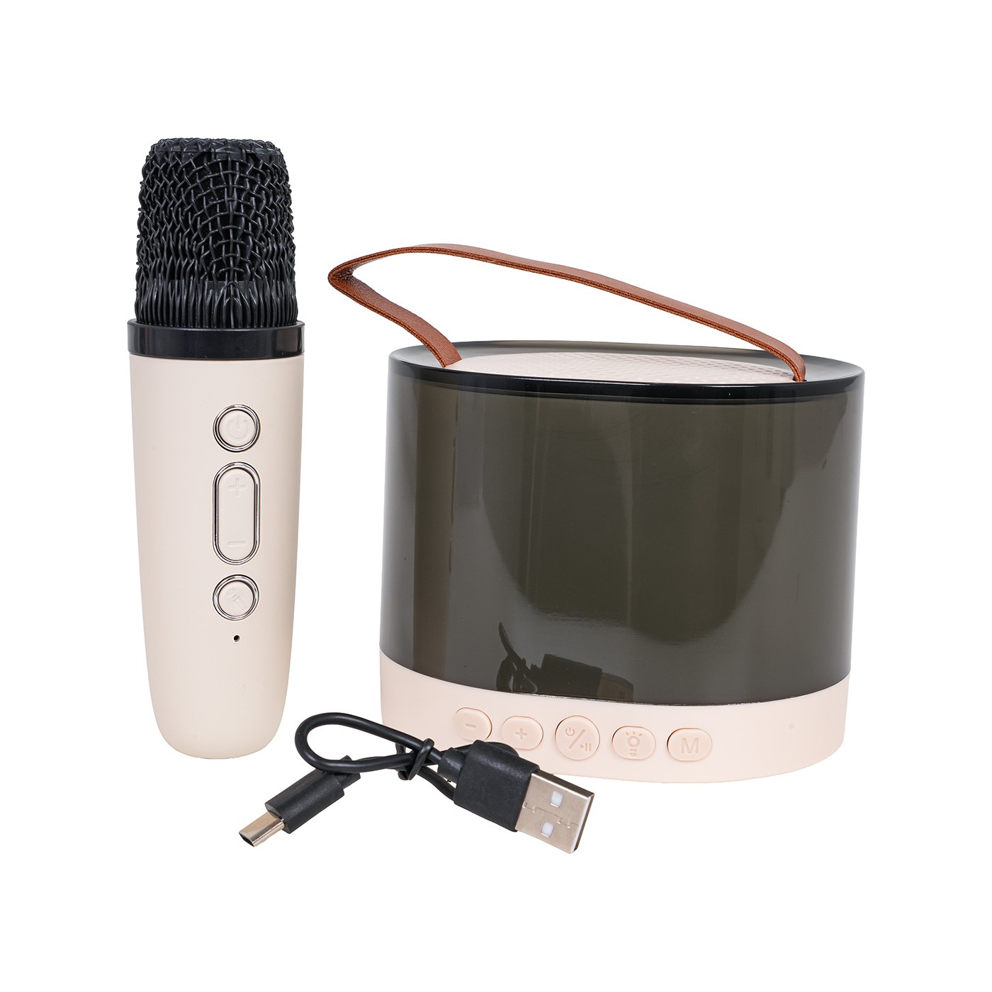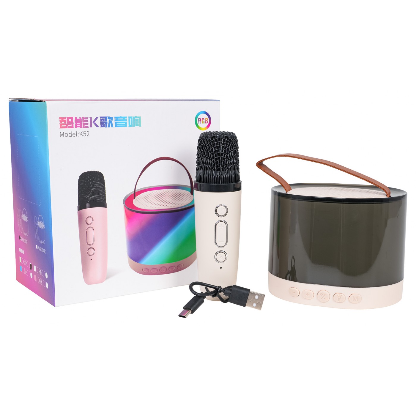 Sada karaoke mikrofónu a reproduktora pre deti od troch rokov, ako aj pre dospelých. Táto prenosná sada zaberá málo miesta a je ľahká, takže si ju môžete vziať kamkoľvek. Nenechajte sa oklamať jej malými rozmermi, pretože táto sada sa môže pochváliť výnimočnou kvalitou zvuku a vytvára úžasný vizuálny zážitok s RGB osvetlením. Pokročilá technológia dekódovania MP3 poskytuje čistý a silný zvuk. Reproduktor je vybavený redukciou šumu DSP, vďaka čomu je zvuk hlasnejší a plnší. Bluetooth zaisťuje stabilné pripojenie. Sada je kompatibilná s mobilnými telefónmi, televízormi, tabletmi, počítačmi a ďalšími zariadeniami, ako aj s rôznymi populárnymi aplikáciami. Reproduktor má slot pre 64G TF kartu, slúchadlá a nabíjačku typu C. Vysokokvalitná kožená rukoväť je praktická a odolná. Na výber je 5 LED svetelných efektov, ktoré sa synchronizujú s hudbou a vytvárajú neuveriteľný vizuálny zážitok. Krátkym stlačením tlačidla na reproduktore sa zmenia svetelné efekty a podržaním na dve sekundy sa LED diódy vypnú. Indikátor nabíjania uľahčuje používanie a odolné puzdro s úrovňou ochrany IPx3 zaisťuje ochranu pred dažďom a dlhú životnosť.