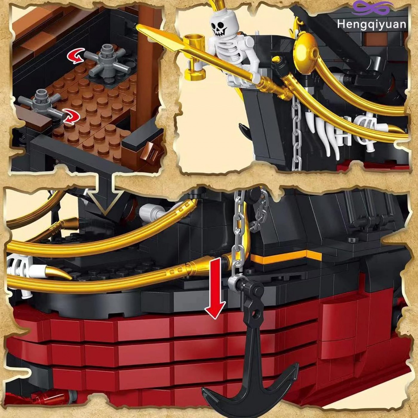 Sada 3 139 stavebných kociek na stavbu pirátskej lode svojpomocne. Hračka je určená pre deti od 14 rokov. Bloky a prvky lode sú vyrobené z kvalitného plastu. Je možné jednoducho rozobrať trup a kapitánsku kajutu, aby ste videli stred paluby. Loď má veľa pohyblivých prvkov, ako sú otváracie dvere kabíny, zdvíhacie delové klapky a pohyblivá kotva. Sada obsahuje obrázkový návod. Skladanie stavebných kociek rozvíja u detí manuálne zručnosti, priestorovú predstavivosť a trpezlivosť.