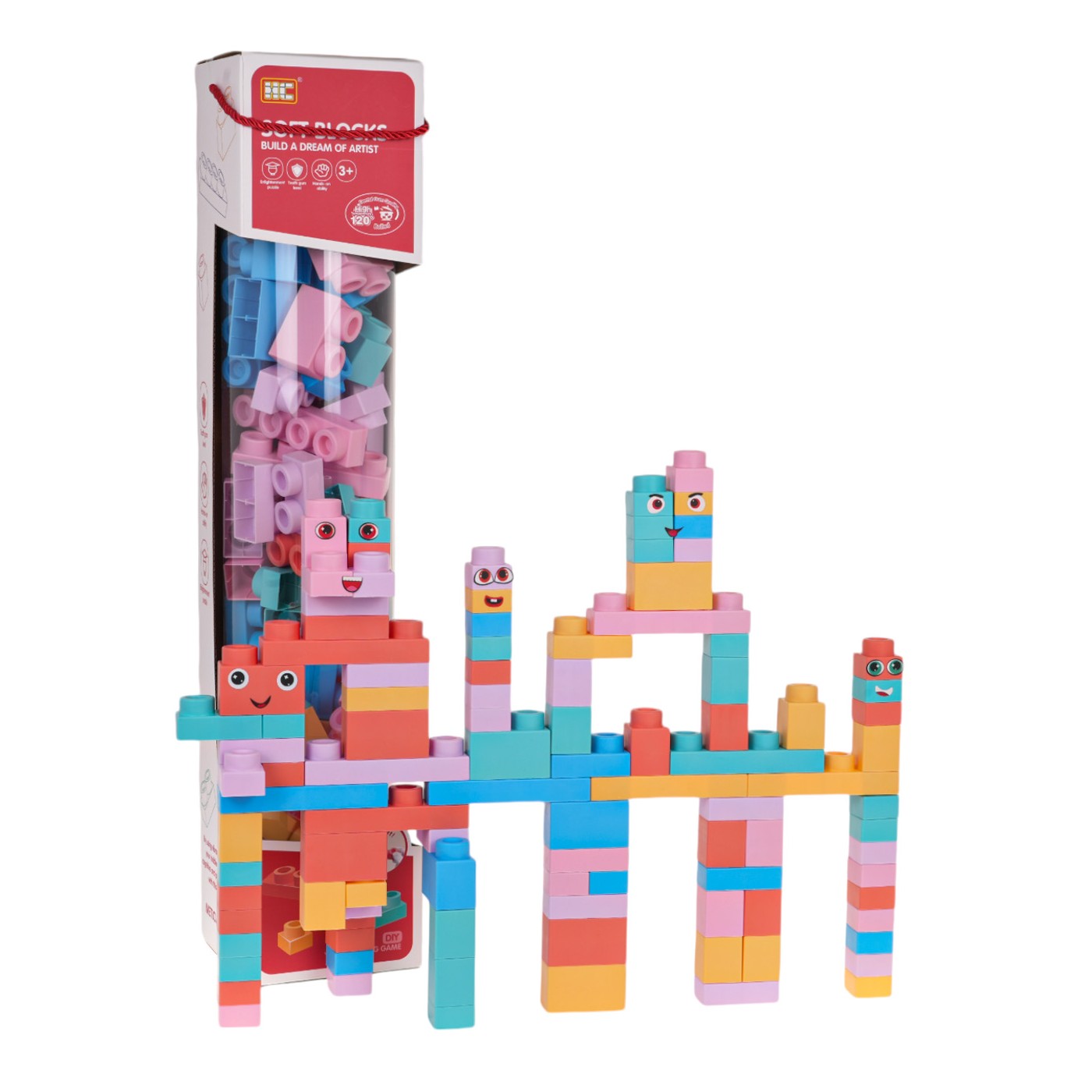 Sada farebných mäkkých kociek pre deti od 3 rokov. Súprava je vyrobená z PVC materiálu, ktorý je bezpečný pre deti a životné prostredie. Bloky sú ľahké a nemajú ostré konce. Veľmi ľahko sa udržiavajú v čistote, po naparení nestrácajú farby. Bloky sa dajú voľne ohýbať a po ohnutí sa vrátia do predchádzajúceho tvaru.