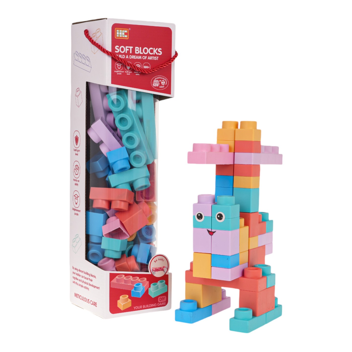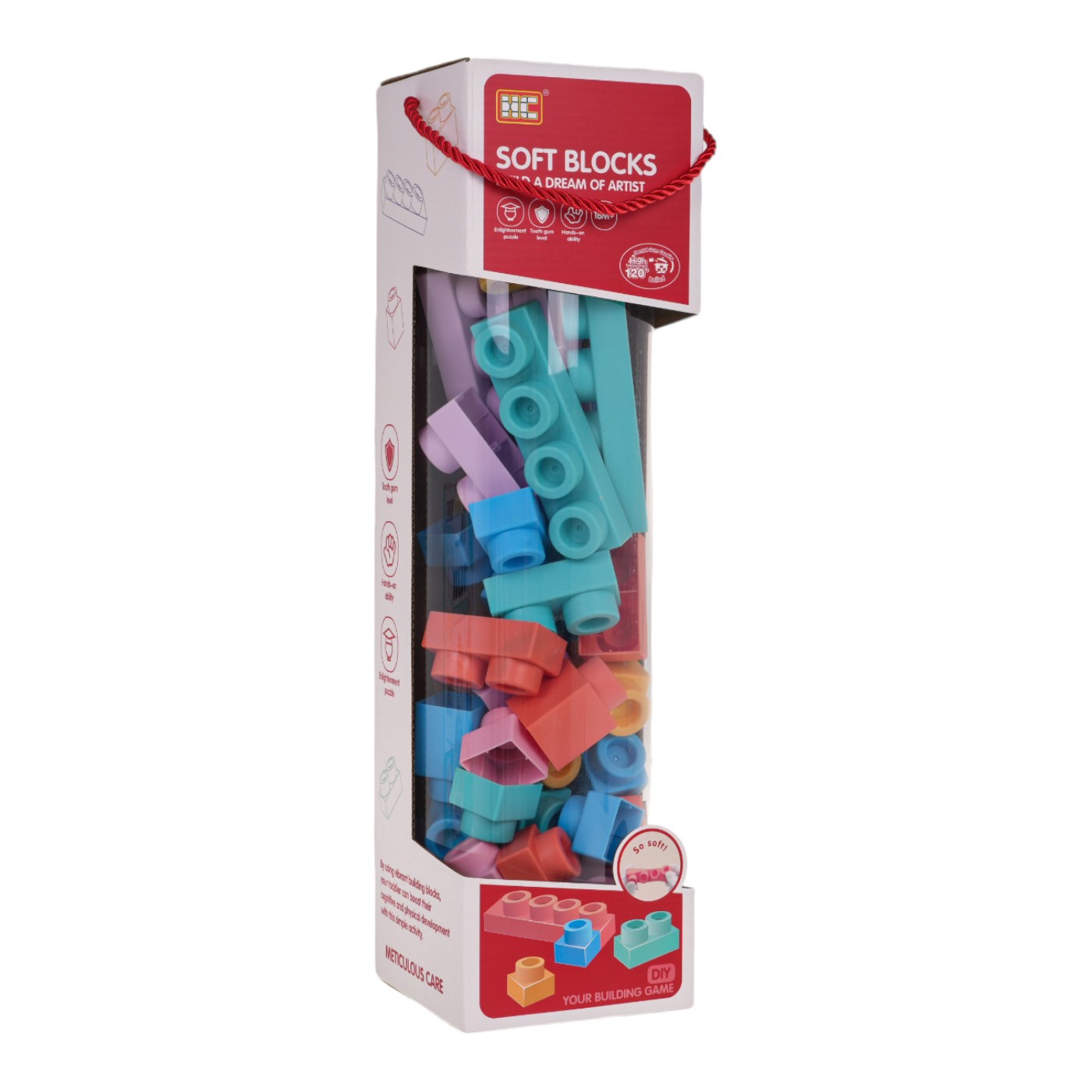 Sada farebných mäkkých kociek pre deti od 3 rokov. Súprava je vyrobená z PVC materiálu, ktorý je bezpečný pre deti a životné prostredie. Bloky sú ľahké a nemajú ostré konce. Veľmi ľahko sa udržiavajú v čistote, po naparení nestrácajú farby. Bloky sa dajú voľne ohýbať a po ohnutí sa vrátia do predchádzajúceho tvaru.