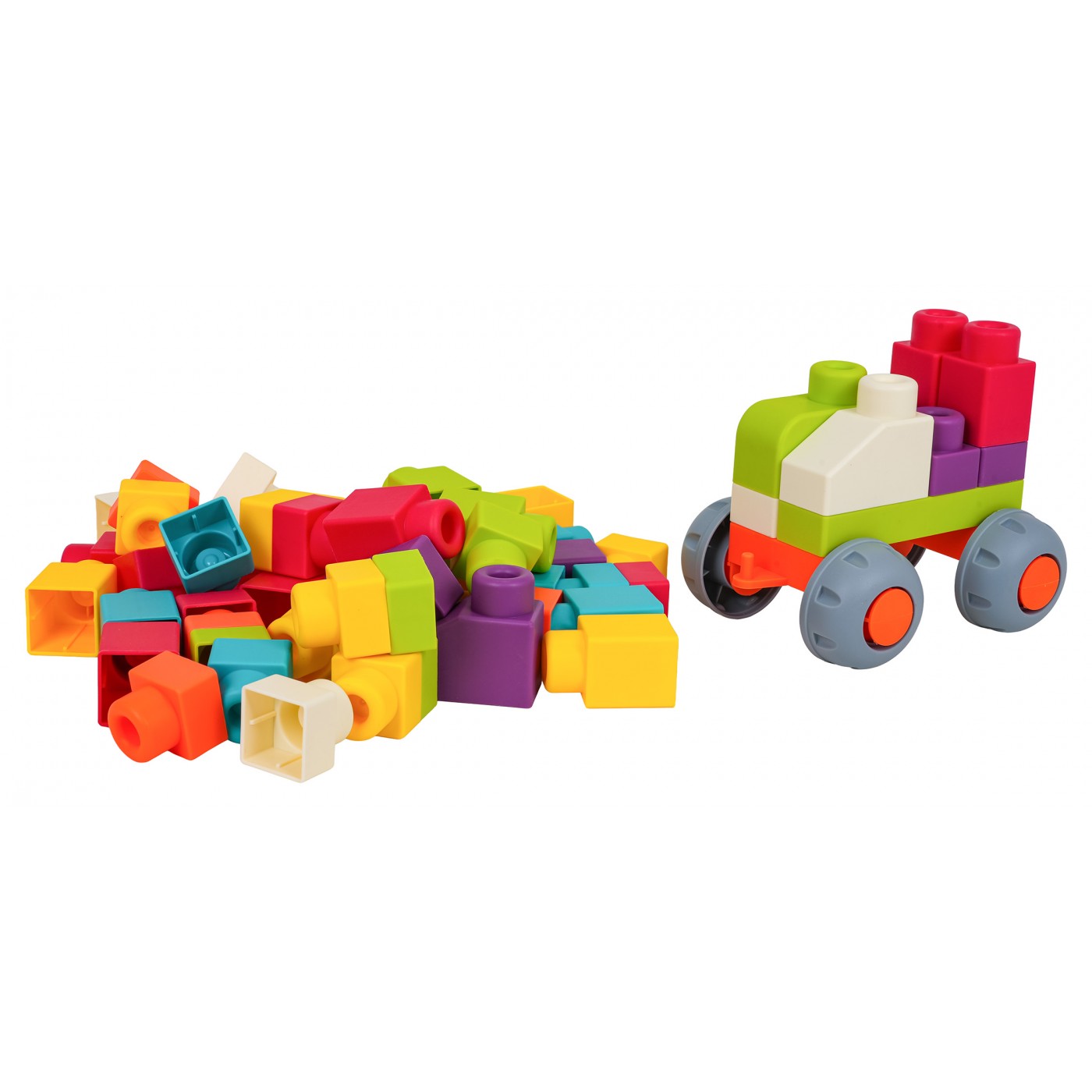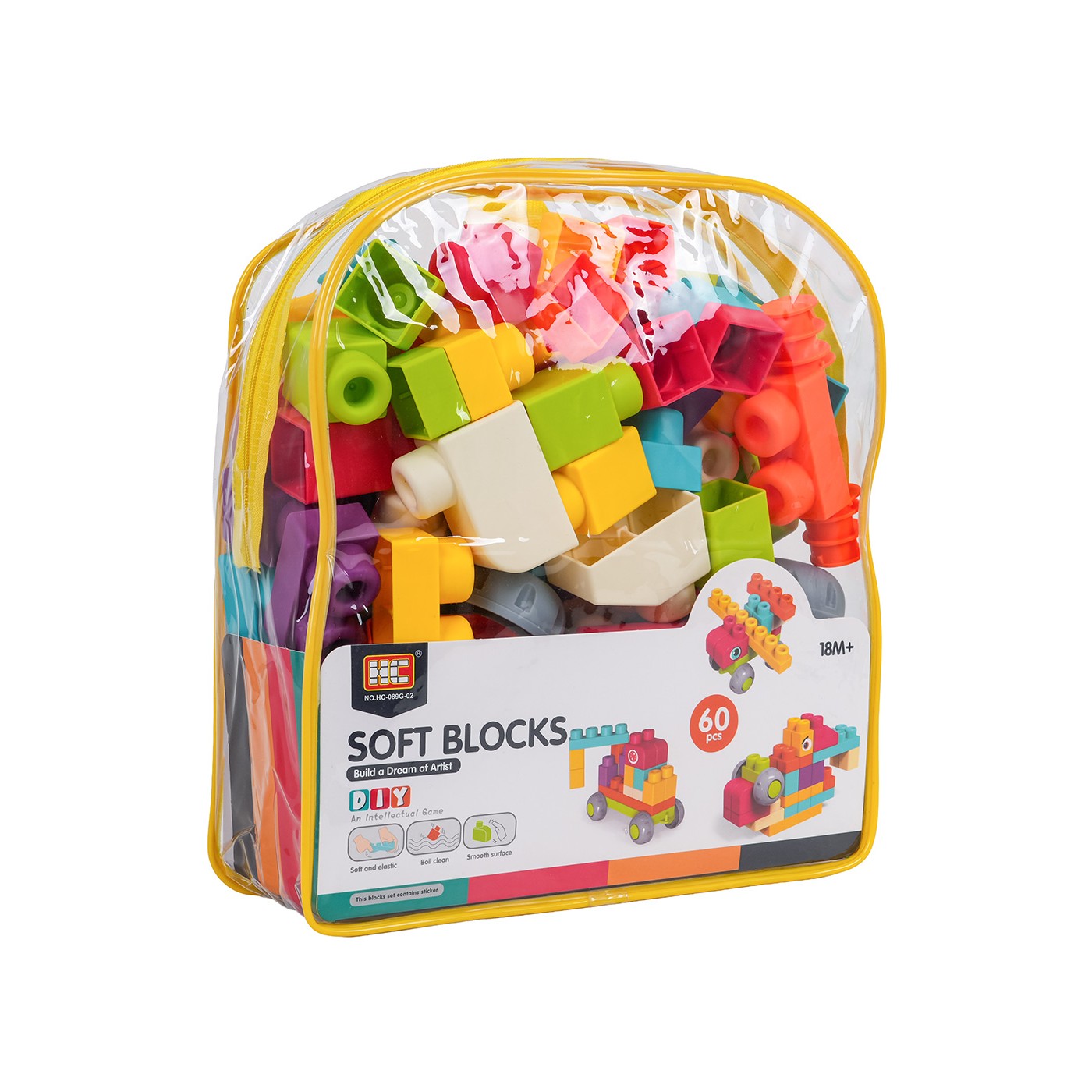 Sada farebných, mäkkých kociek s batohom pre deti od osemnástich mesiacov. Sada je vyrobená z PVC materiálu bezpečného pre deti a šetrného k životnému prostrediu. Kocky sú ľahké a nemajú ostré hrany. Veľmi ľahko sa čistia a zachovávajú si farbu aj po umytí. Kocky sa dajú ohýbať a vrátiť sa do pôvodného tvaru.