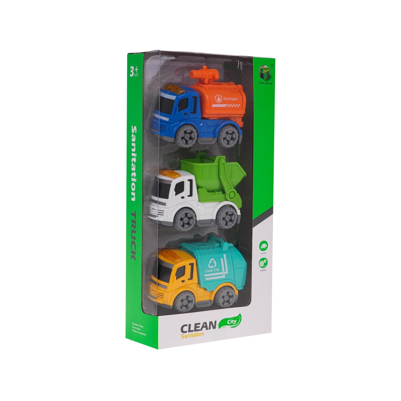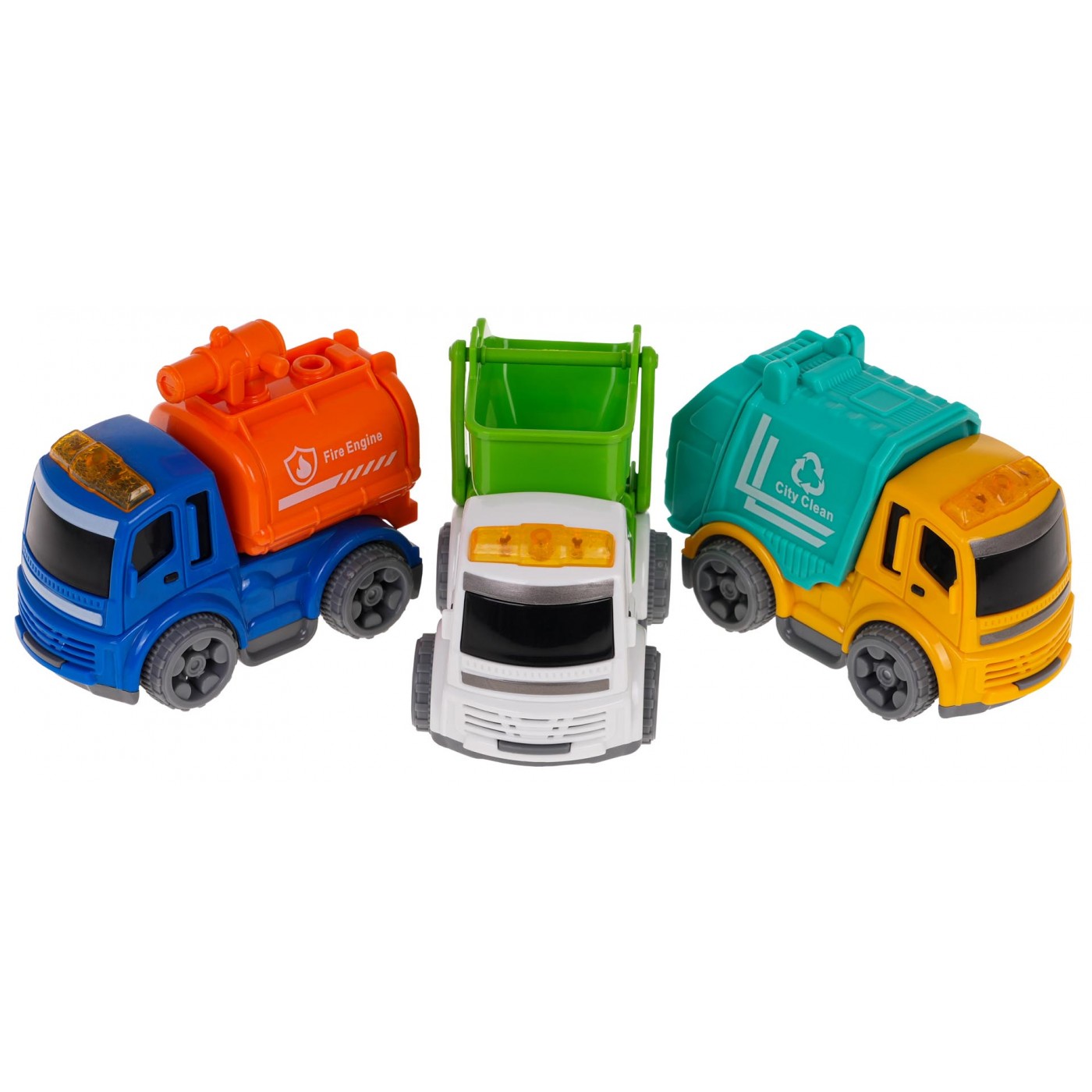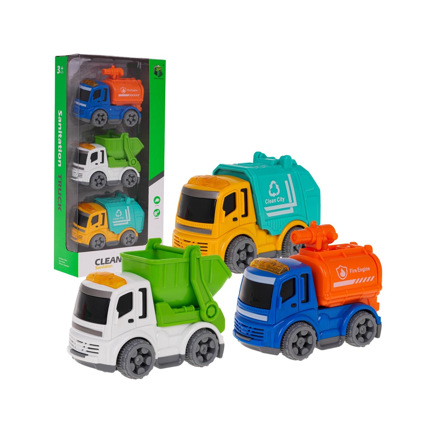 Súprava mestských vozidiel pre deti od 3 rokov. Vozidlá sú vyrobené z najkvalitnejšieho plastu v živých farbách, ktoré podnecujú deti k hre. Verne reprodukujú tie veľké známe z mestských ulíc. Vozidlá majú pohyblivé časti a sú malých rozmerov, čo znamená, že si ich môžete vziať kamkoľvek so sebou. Sada obsahuje smetiarske auto, smetiarske auto a hasičské auto.