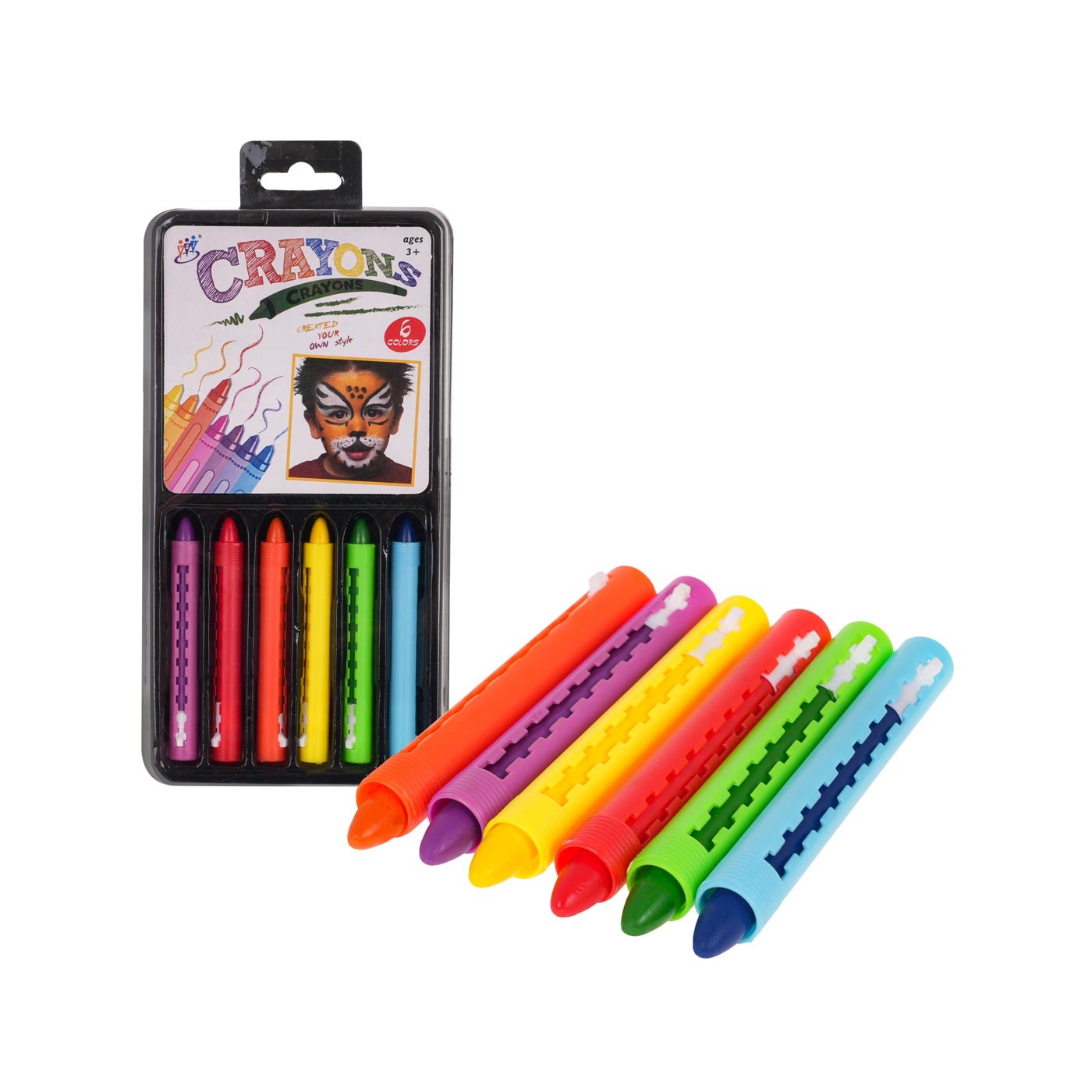 Pastelky na maľovanie na tvár, 6 farieb, pre deti od 3 rokov. Pastelky sú pre deti úplne bezpečné, vyrobené z netoxických materiálov a nespôsobujú alergie. Po hraní sa pastelky veľmi ľahko zmyjú z tváre, stačí vám mydlo a voda.