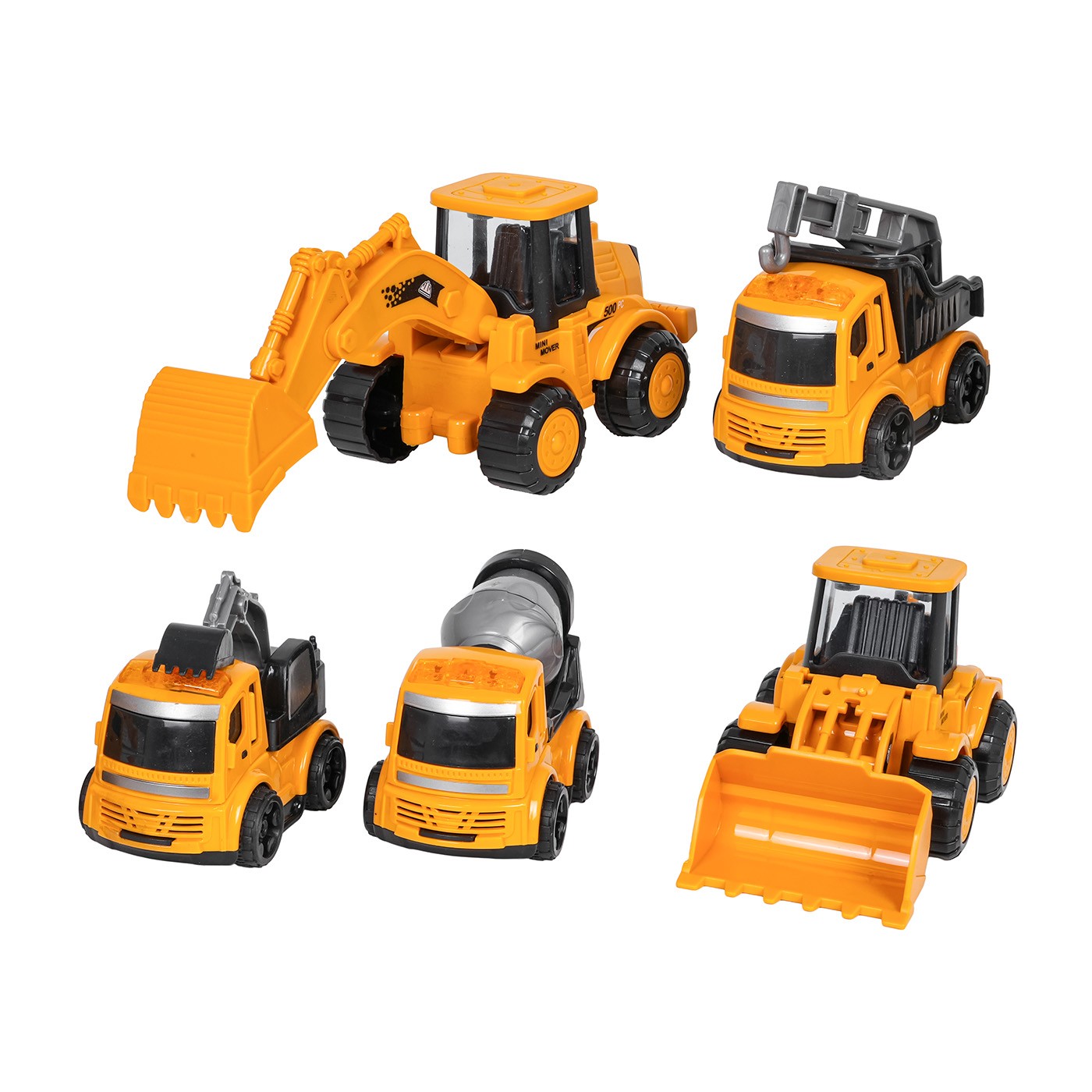 Sada piatich stavebných vozidiel