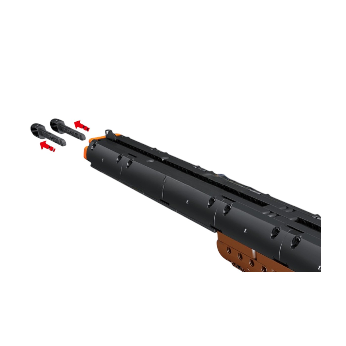 - sada 1015 stavebných blokov, - ručne ovládaná dvojhlavňová brokovnica, - bezpečná imitácia kaziet vyrobených z blokov, ktoré sú súčasťou súpravy, - dvojrýchlostná spúšť - možnosť vystreliť jeden alebo dva náboje súčasne, - pohyblivé prvky a manuálne vkladanie zásobníka, - verná reprodukcia skutočnej brokovnice, - určené pre deti od 14 rokov, - súčasťou balenia je obrázkový návod. |