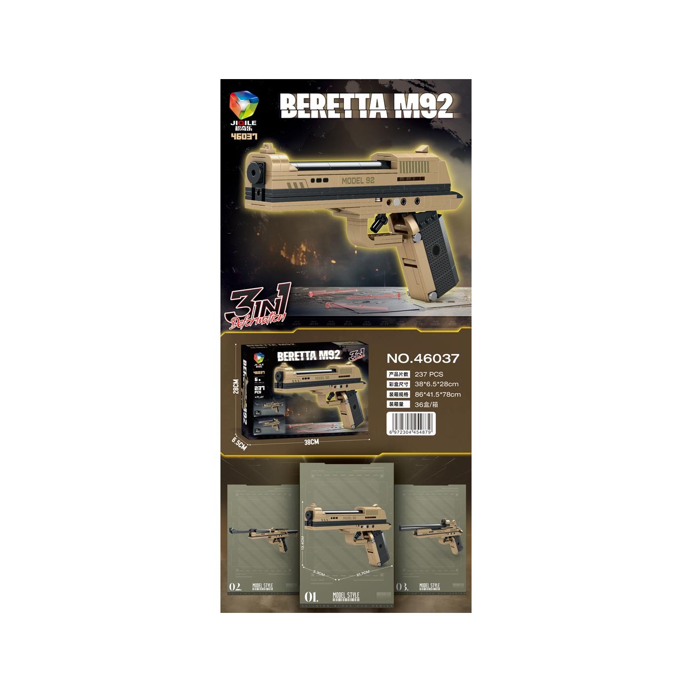 Vysokokvalitné stavebné kocky pre deti od šiestich rokov. Sada obsahuje 237 dielikov, z ktorých si môžete postaviť tri verzie zbrane. Sada obsahuje aj projektily na streľbu. Špecifikácia: - materiál: plast, - pevná konštrukcia, - určené pre deti od šiestich rokov, - môžete si postaviť 3 modely zbrane. |