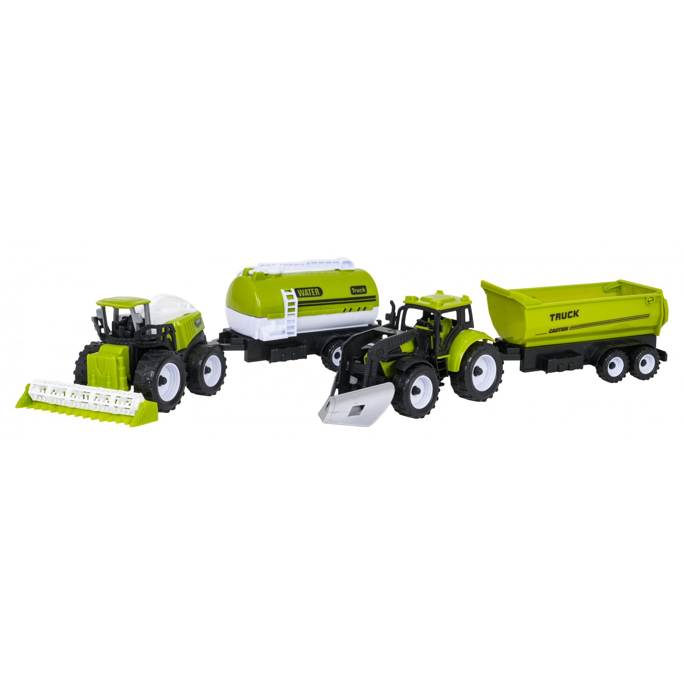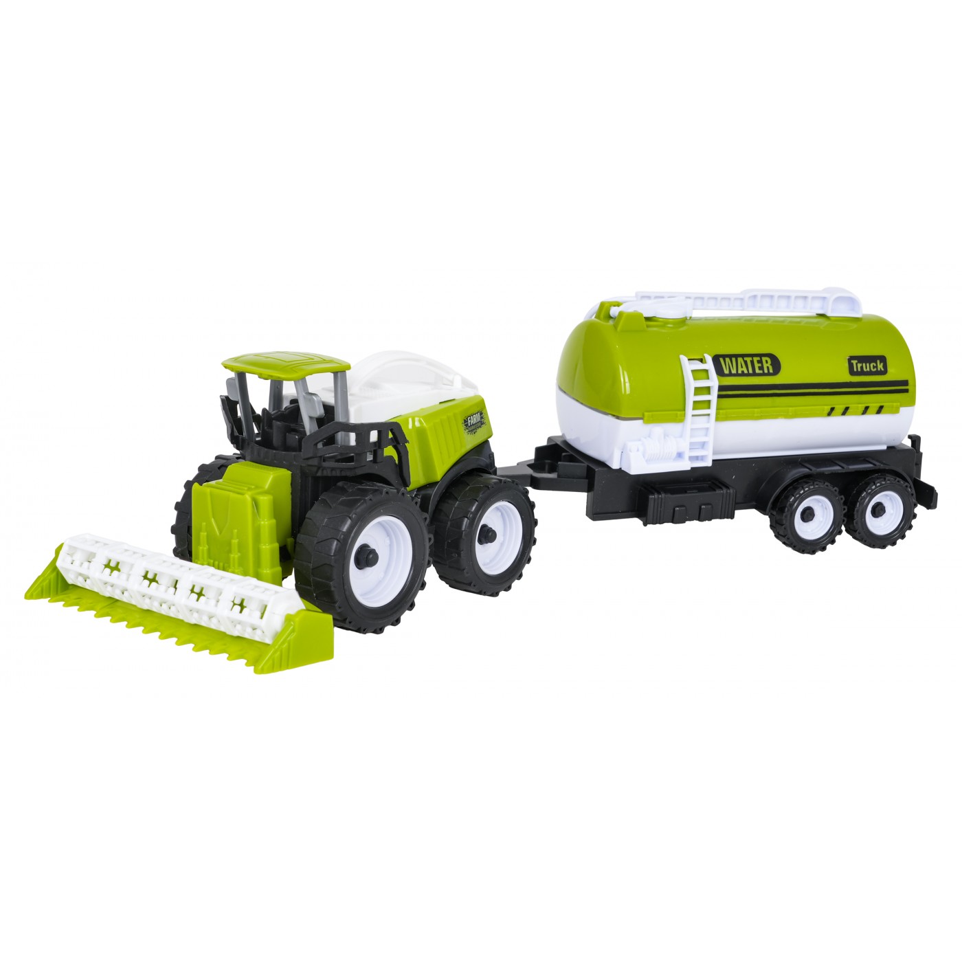 Funkcie sady: - vhodné pre deti od troch rokov, - vyrobené z najkvalitnejšieho plastu, - realistické prevedenie, - možnosť pripojenia prívesu a cisterny k traktoru a kombajnu, - pohon zadných kolies v traktore, pohon predných kolies v kombajne, - pohyblivý pluh v traktore (hore, dole), - pohyblivé prívodné potrubie v kombajne, - pohyblivé nože kombajnu, - možnosť odmontovať nože kombajnu a sklopiť žací adaptér, - otvárací vstup na nádrži a pohyblivé potrubie na nalievanie vody. |