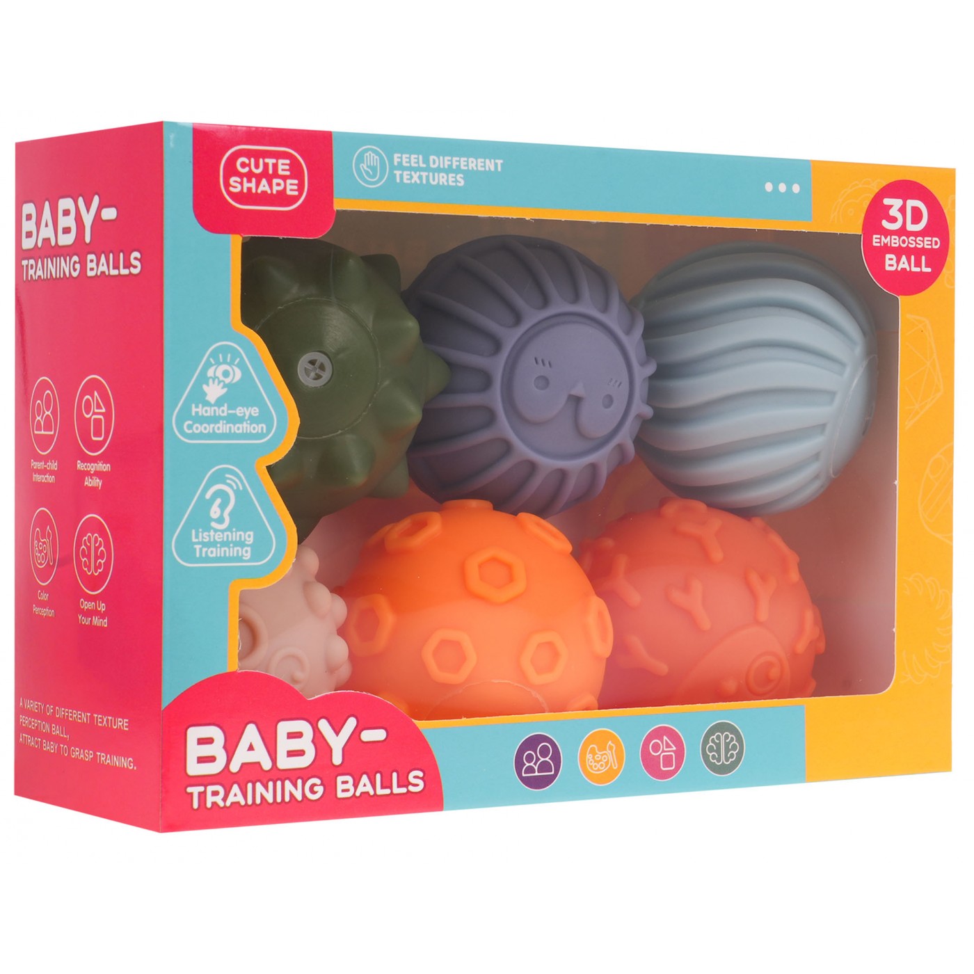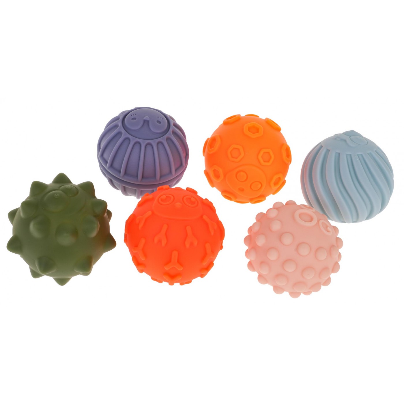 Sada 6 farebných senzorických loptičiek pre deti od 18 rokov. Rôzne farby stimulujú zmysly dieťaťa a rôzne tvary podporujú kreatívnu hru. Každá loptička vďaka svojej odlišnej textúre poskytuje dieťaťu iné zmyslové zážitky. Loptičky je možné využiť na terapeutické, vzdelávacie účely alebo ako senzorické hračky pre deti. Keď stlačíte loptičku, vydá sa z nej zvuk.