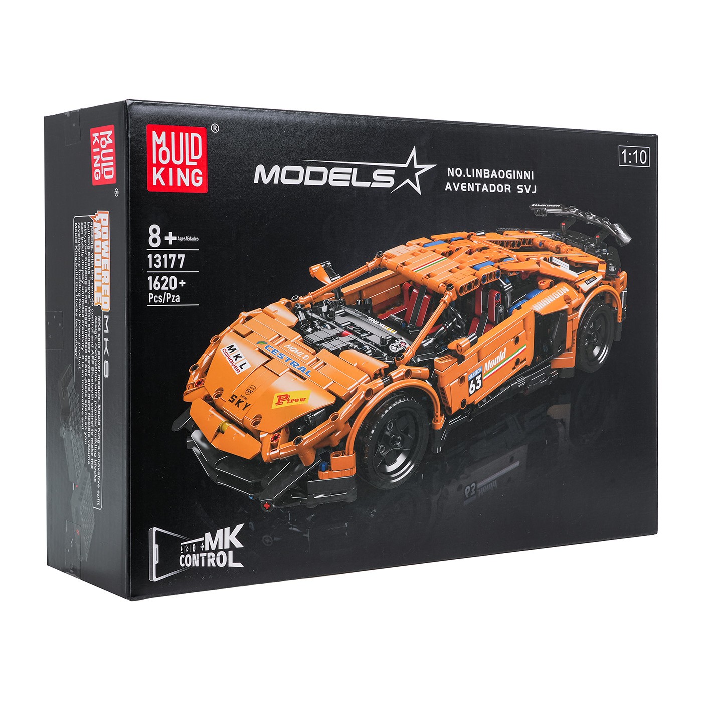 Vysokokvalitné stavebné kocky Mold King pre deti od osem rokov. Táto sada obsahuje 1 620 dielikov, ktoré sa dajú použiť na zostavenie oranžového auta na diaľkové ovládanie. Auto jazdí všetkými smermi: dopredu, dozadu, doľava a doprava. Dá sa ovládať pomocou priloženého diaľkového ovládača alebo prostredníctvom aplikácie v telefóne. Stiahnite si aplikáciu naskenovaním QR kódu na obale. Aplikácia vám umožňuje nielen pohybovať autom, ale aj navrhovať jeho pohyby. Hračka je napájaná 3,7 V nabíjateľnou batériou (súčasťou balenia), zatiaľ čo diaľkové ovládanie používa 2 x AA 1,5 V batérie (nie sú súčasťou balenia).