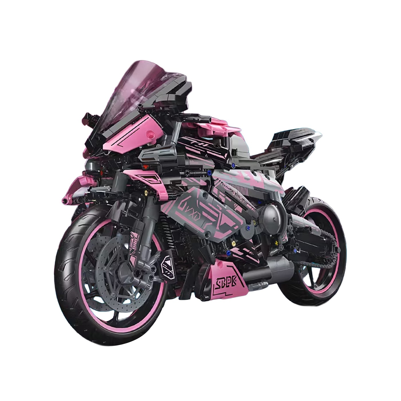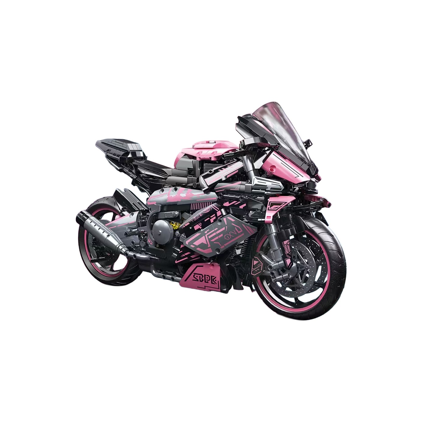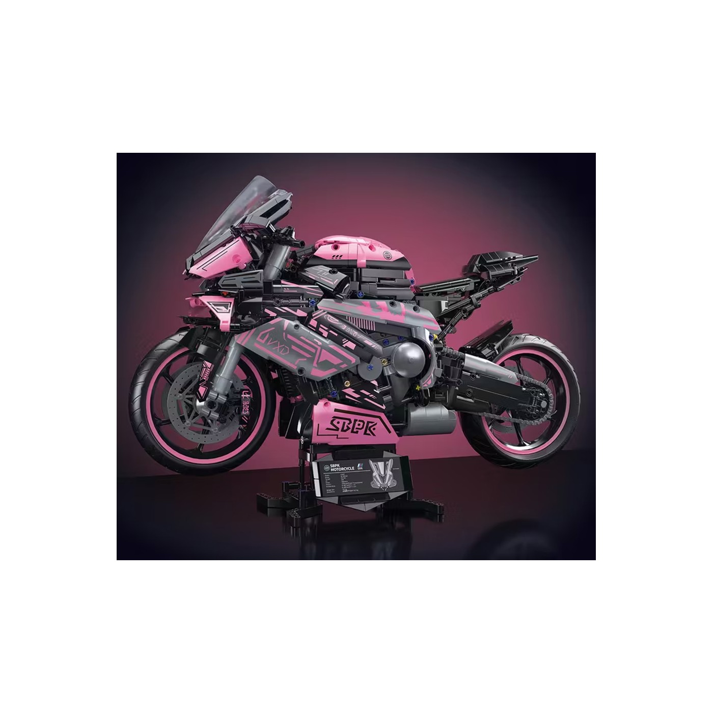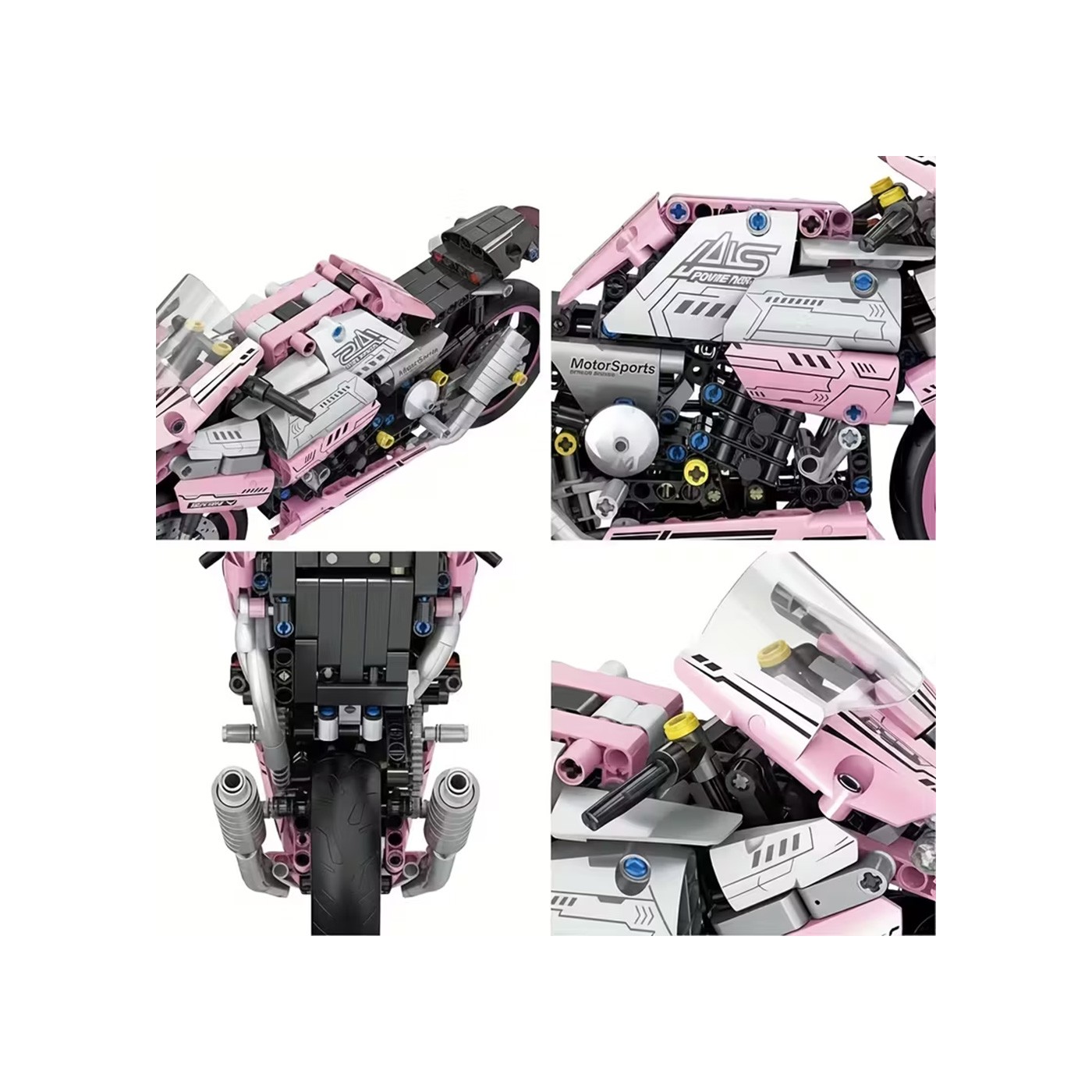 Sada stavebných kociek Ružový pretekársky motocykel, 2066 dielikov.