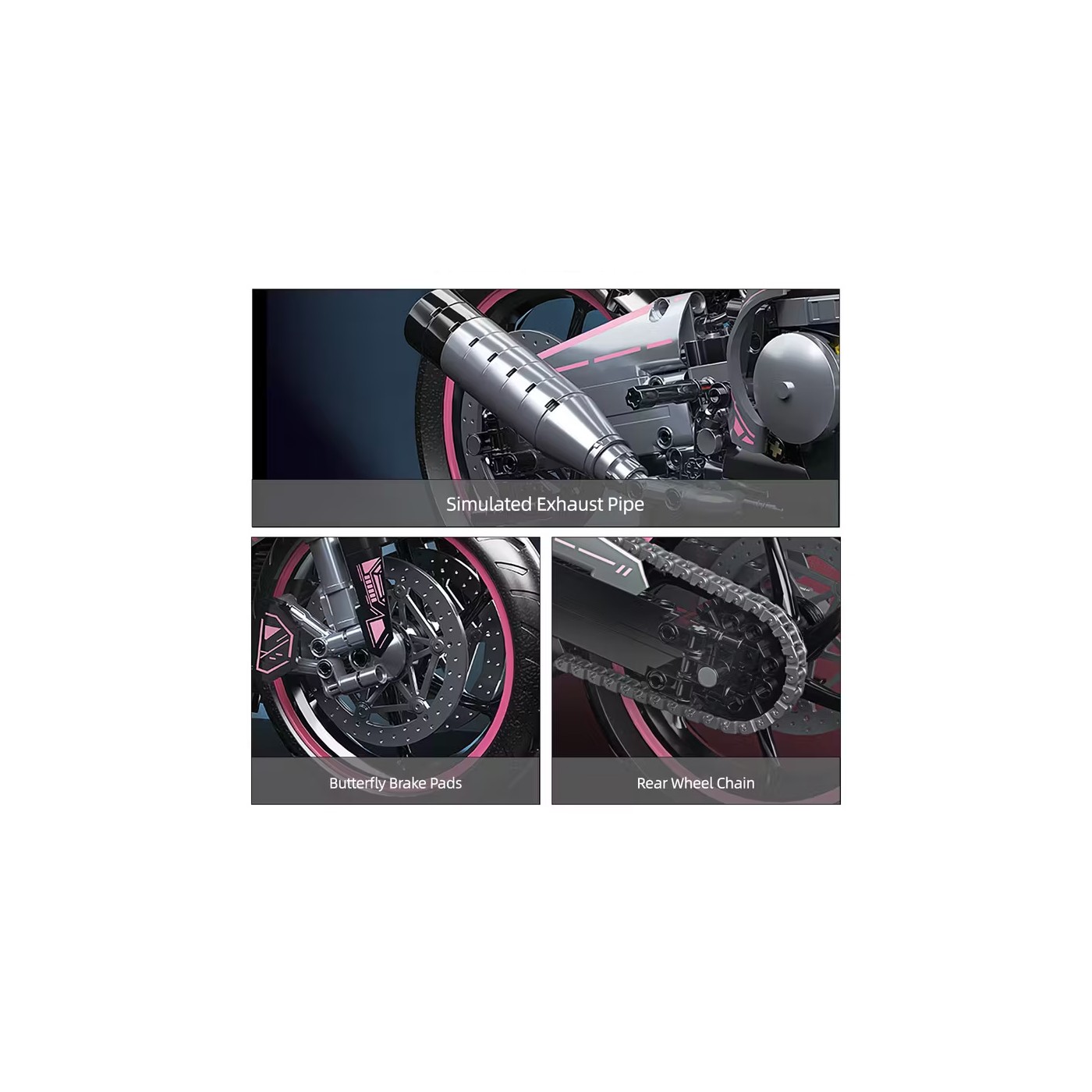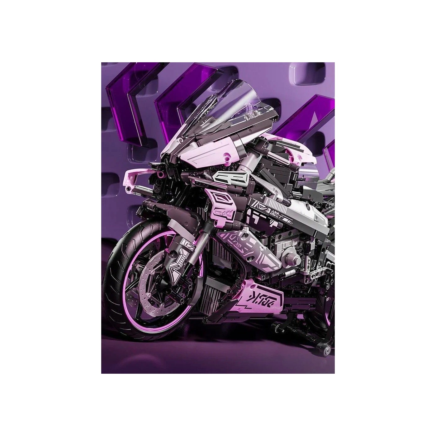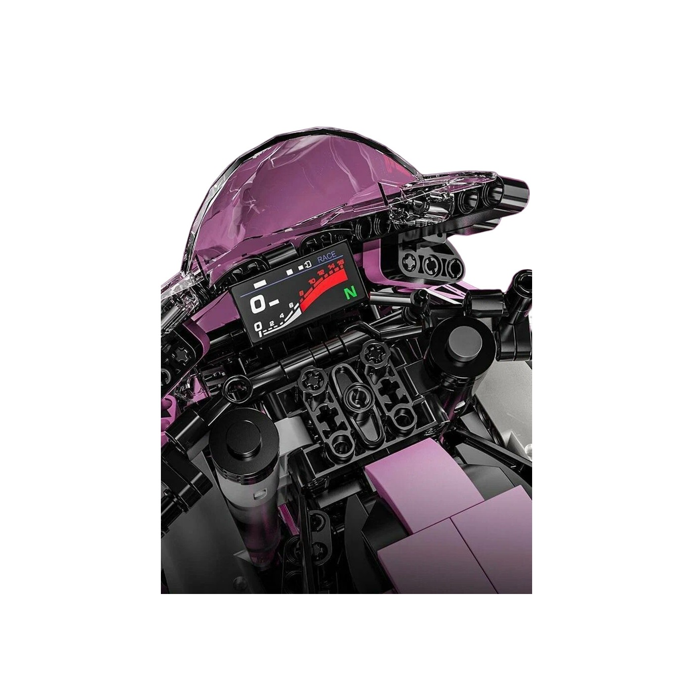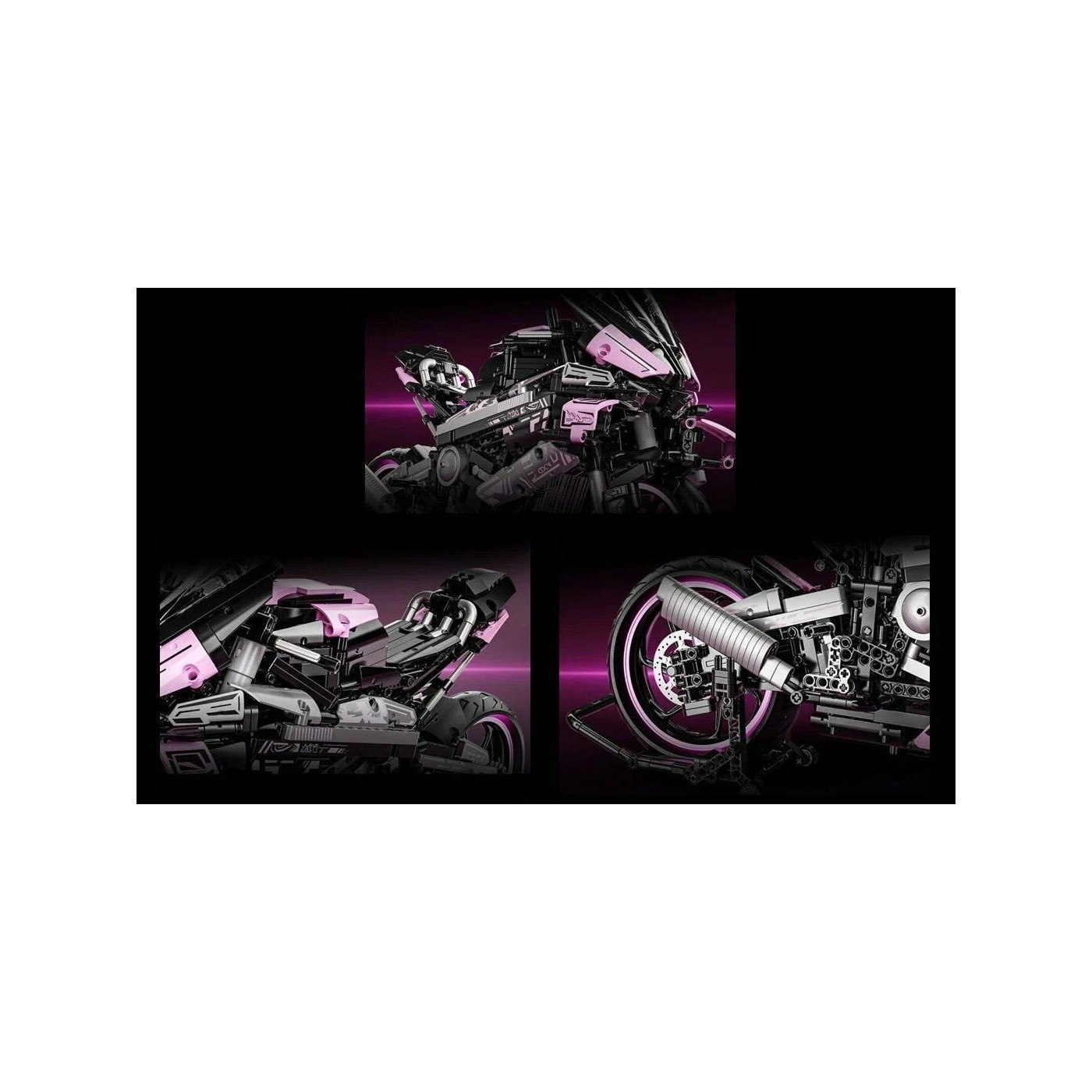 Sada stavebných kociek Ružový pretekársky motocykel, 2066 dielikov.