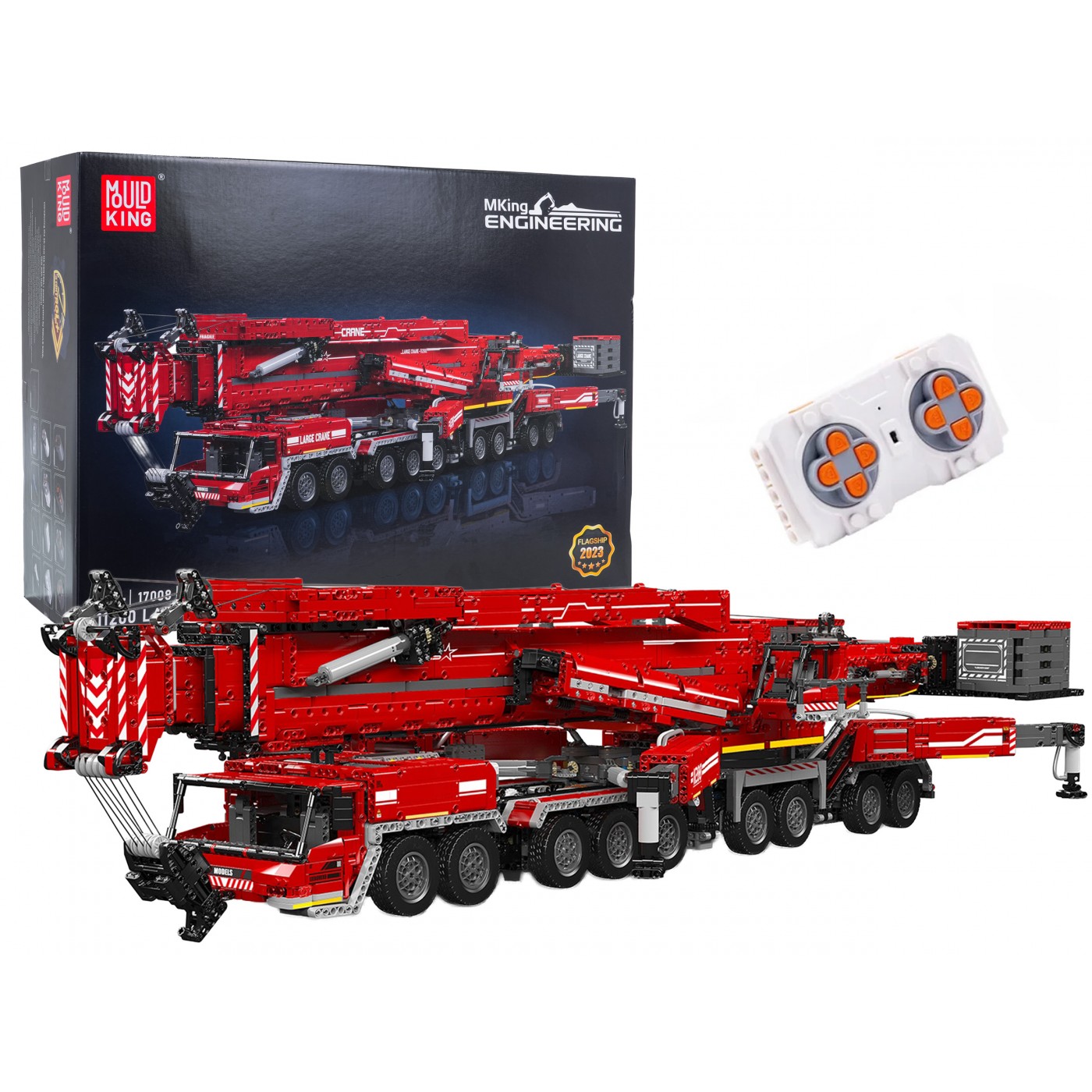Vysokokvalitné stavebné kocky Mold King pre deti od štrnástich rokov. Sada pozostáva z 8 506 dielikov, z ktorých si môžete postaviť červeného žeriava. Ovláda sa pomocou priloženého diaľkového ovládača alebo prostredníctvom aplikácie pre smartfóny. Aplikáciu si môžete stiahnuť naskenovaním QR kódu na obale. Pomocou aplikácie môžete vozidlo nielen pohybovať, ale aj navrhovať jeho pohyby. Sada je vybavená všetkými potrebnými motormi a boxmi na batérie.