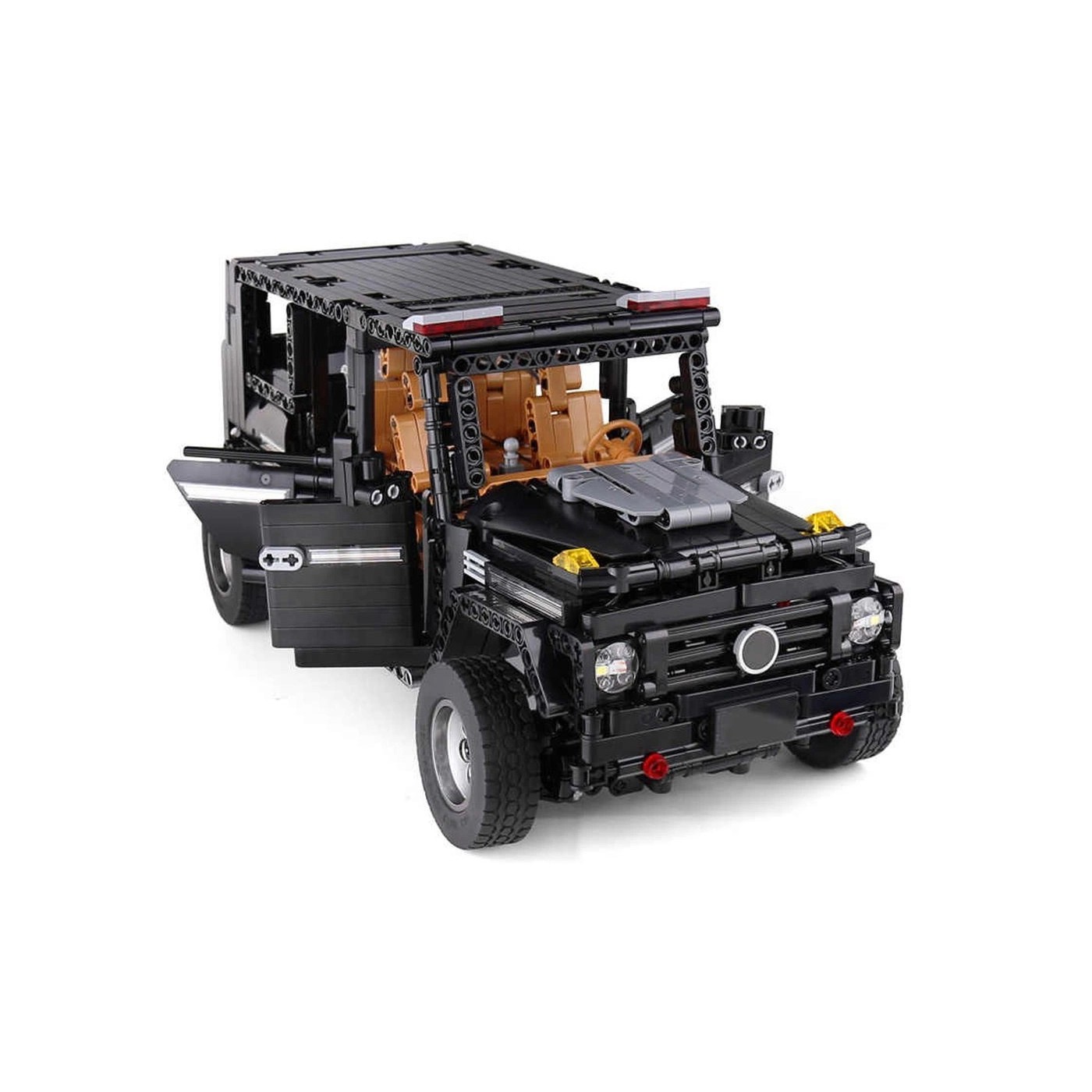 Sada 1722 stavebných kociek na svojpomocnú stavbu čierneho terénneho auta. Model je vyrobený v mierke 1:10. Hračka je určená pre deti od 14 rokov. Bloky a prvky auta sú vyrobené z kvalitného plastu a materiálu z uhlíkových vlákien.