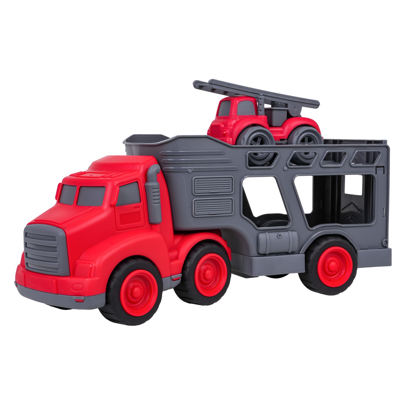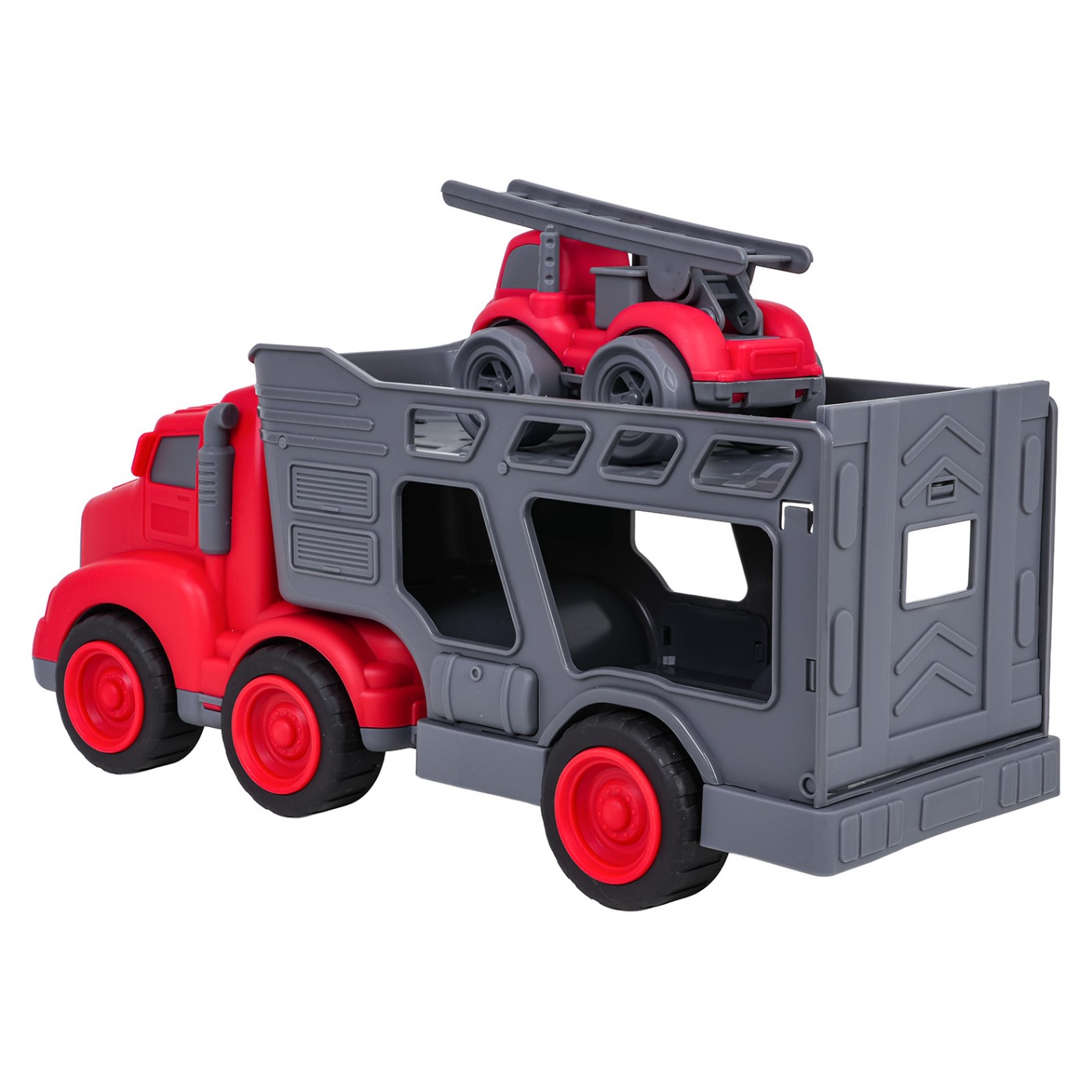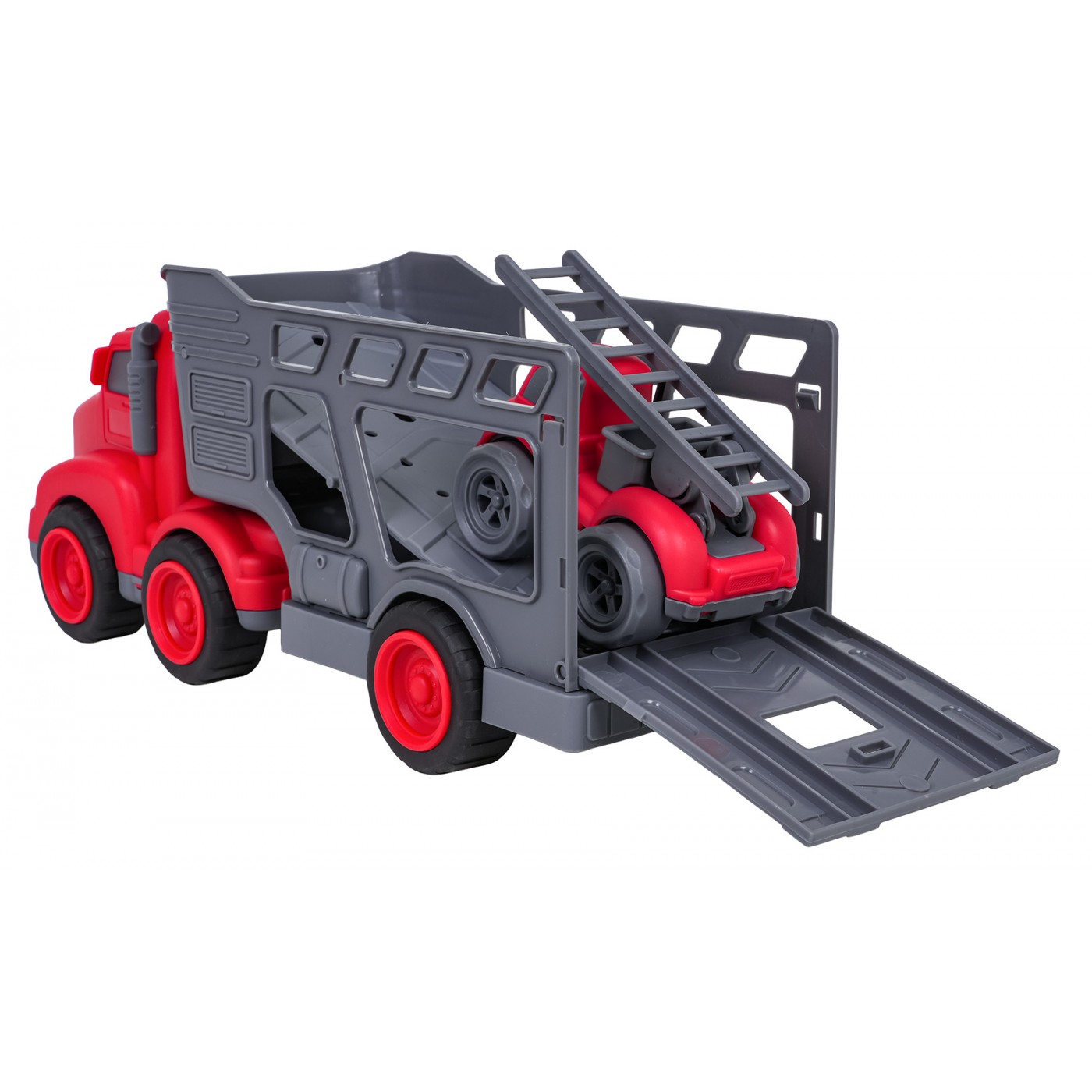 Vlastnosti: - pre deti od troch rokov, - sada vyrobená z najkvalitnejšieho plastu v živých farbách, - perfektná darčeková sada pre milovníkov hasičských vozidiel, - možnosť odpojenia prívesu od vozidla, - otváranie zadnej chlopne prívesu, - šoférovať v hasičskom aute, - schopnosť zdvíhať a spúšťať rebrík. |