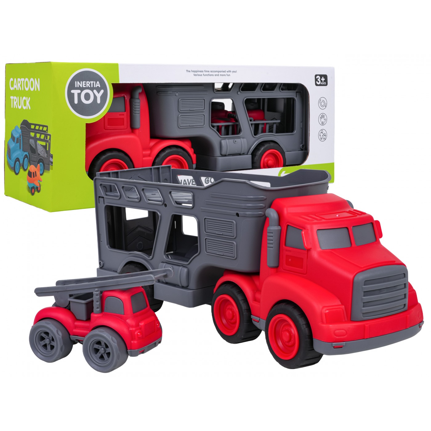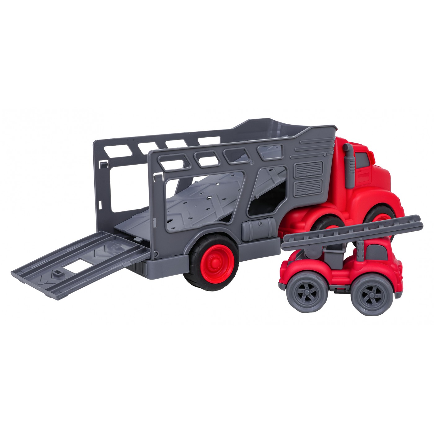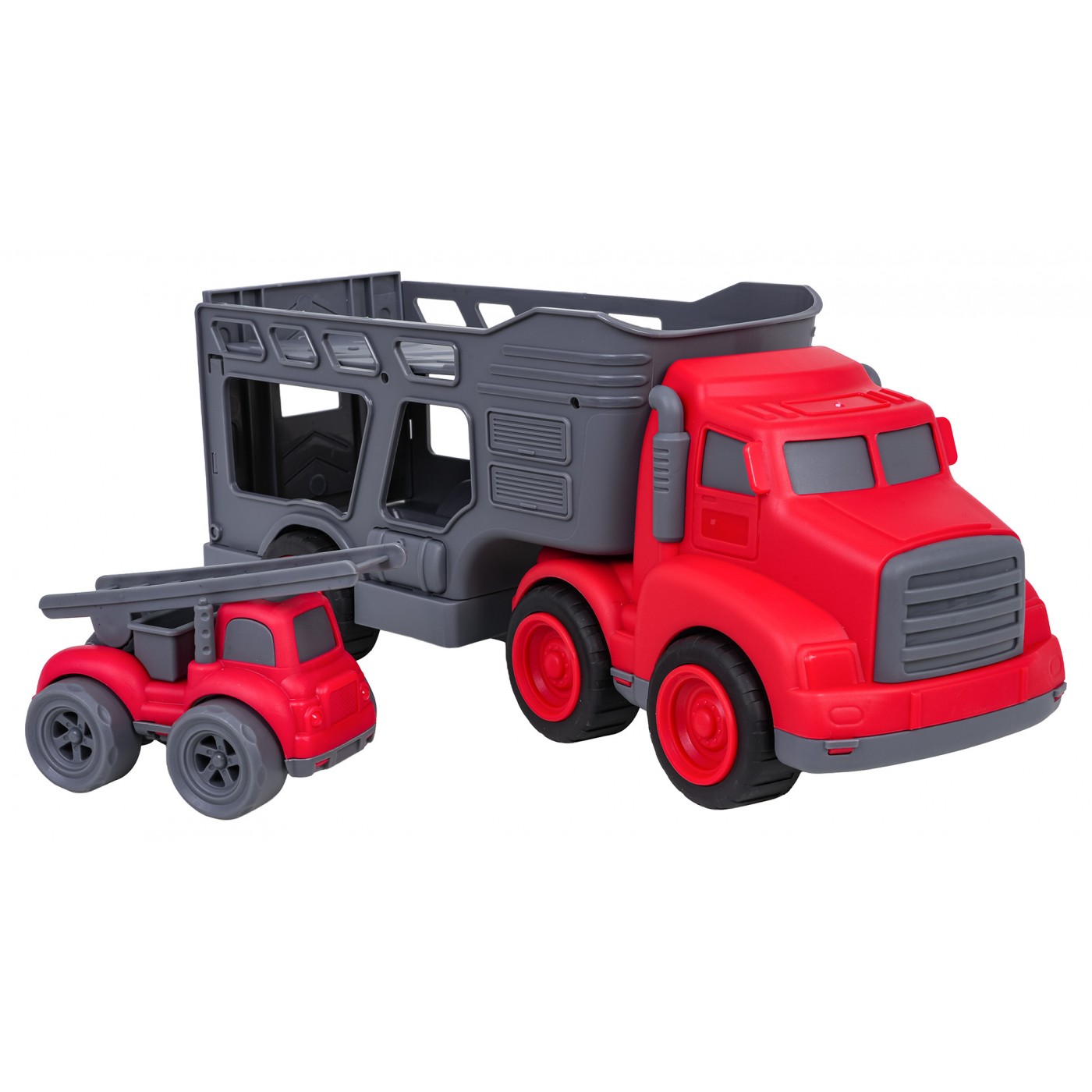 Vlastnosti: - pre deti od troch rokov, - sada vyrobená z najkvalitnejšieho plastu v živých farbách, - perfektná darčeková sada pre milovníkov hasičských vozidiel, - možnosť odpojenia prívesu od vozidla, - otváranie zadnej chlopne prívesu, - šoférovať v hasičskom aute, - schopnosť zdvíhať a spúšťať rebrík. |