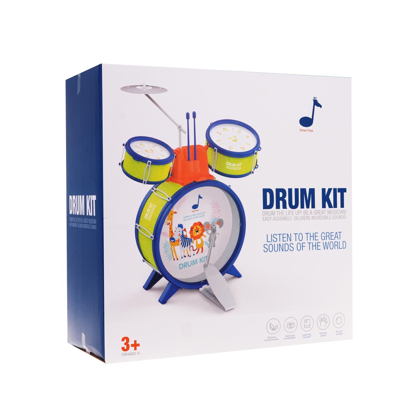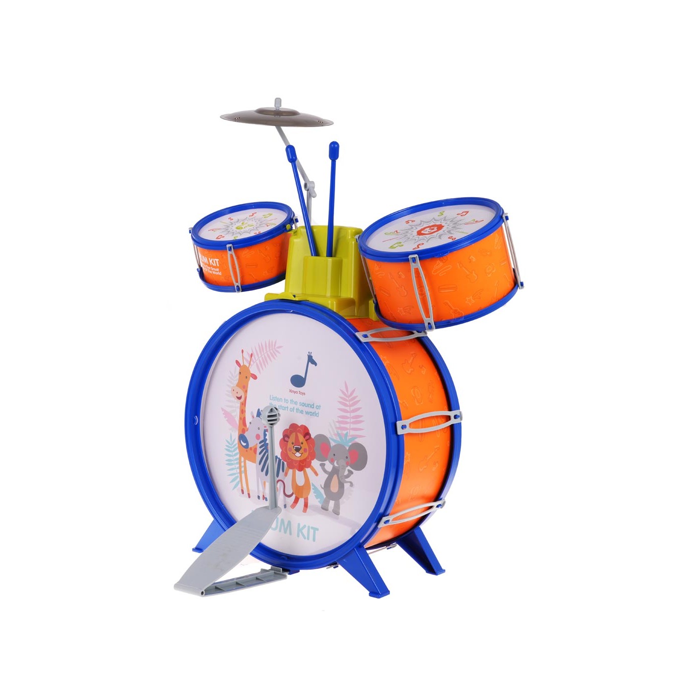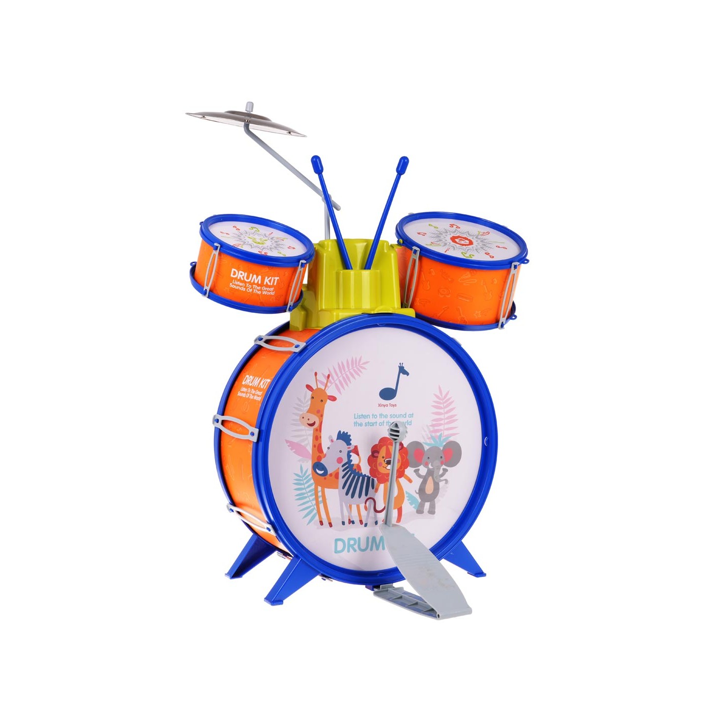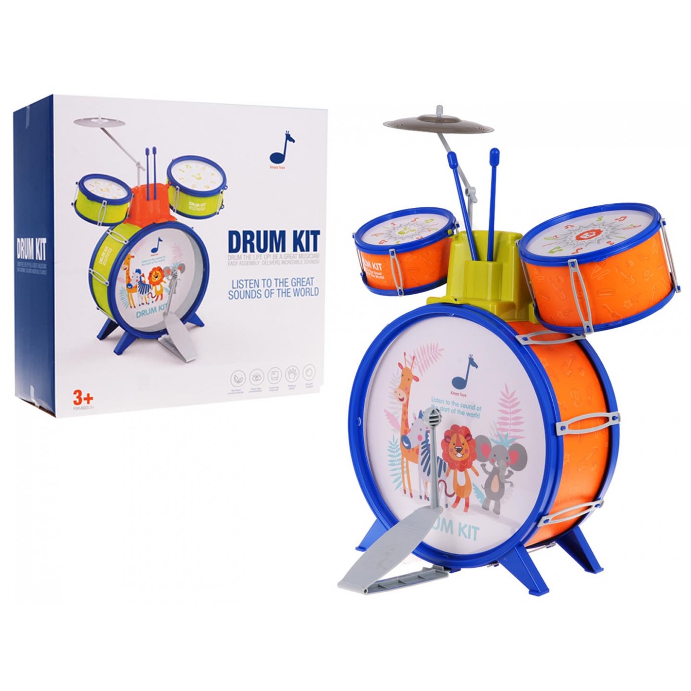 Farebné Safari bubny pre deti od 3 rokov. Súprava pozostáva z 3 bubnov, taniera a palíc. Je vyrobená z najkvalitnejších materiálov v živých farbách, ktoré upútajú pohľad dieťaťa a povzbudia ho k hre. Na veľkom bubne je kresba zvieratiek. Zvuk z veľkého bubna sa spúšťa stlačením nožného pedálu a z horných bubnov a činelu údermi palíc. Hra s touto sadou rozvíja záujem dieťaťa o hudbu a talent, učí zmysel pre rytmus a precvičuje koordináciu oko-ruka.