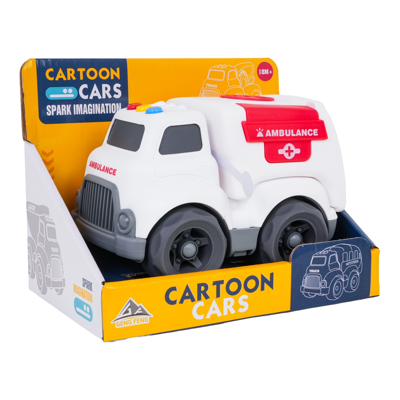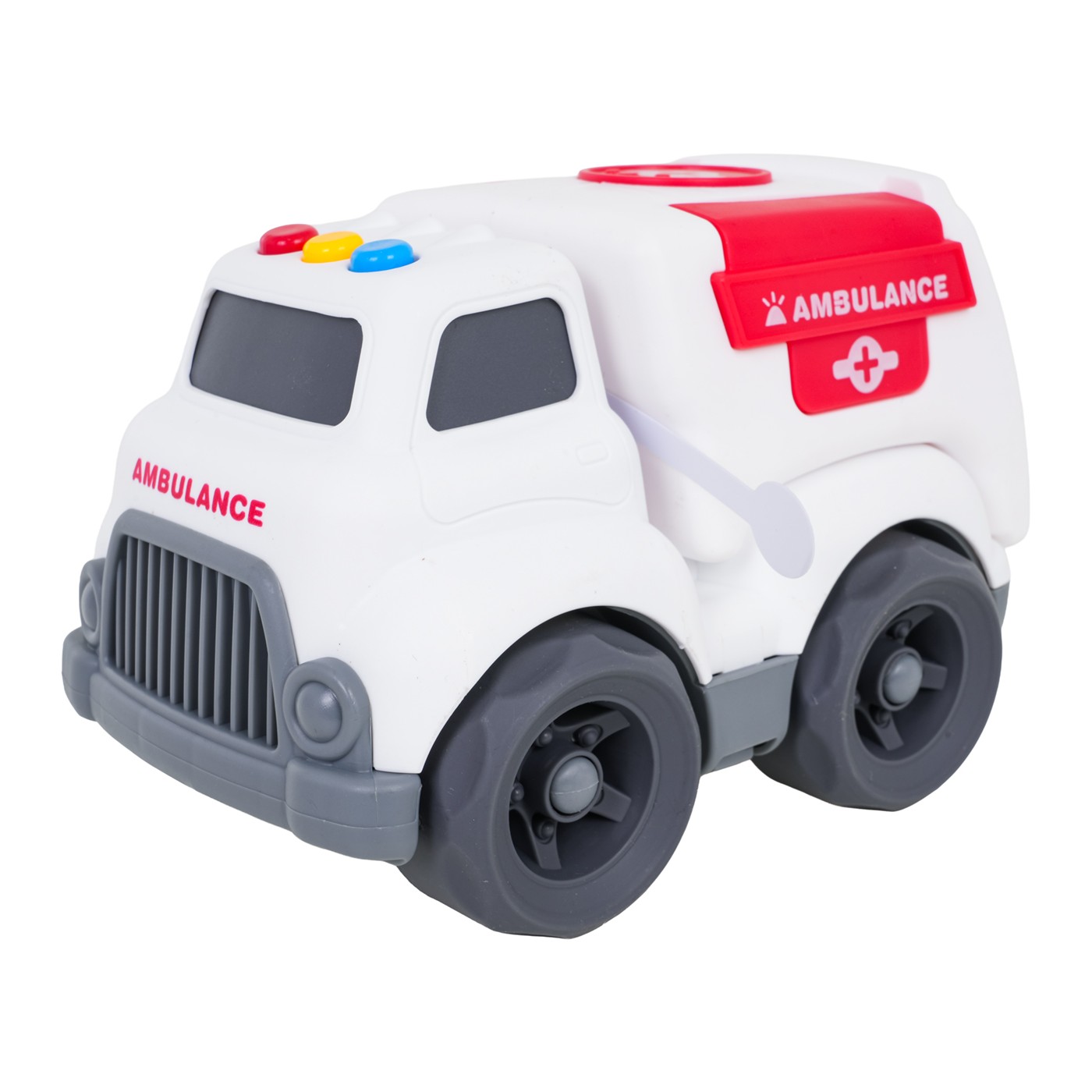 Interaktívna sanitka pre deti od osemnástich mesiacov. Táto hračka je vyrobená z najkvalitnejších materiálov a nemá ostré hrany. Zvukové a svetelné tlačidlá na streche sanitky spúšťajú zvuky ako štartovanie, jazda, cúvanie a po stlačení sa ozve veselá melódia. Svetlá na streche tiež blikajú. Hračka je napájaná 4 batériami LR44 (súčasťou balenia).