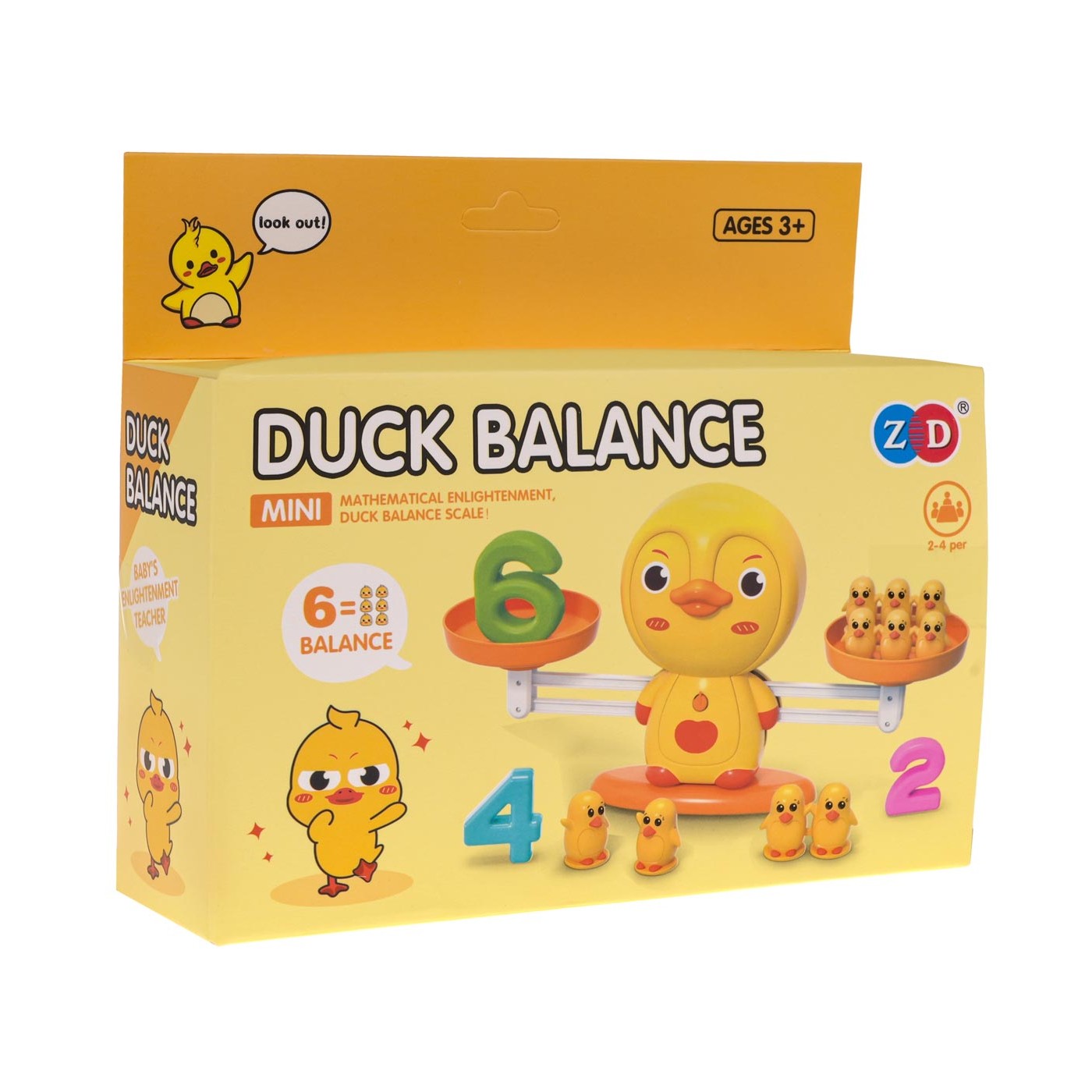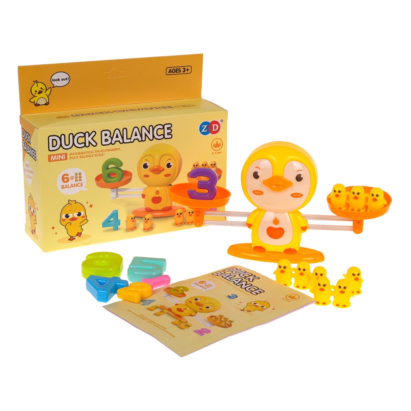 Scalees Balancing Duck arkádová hra pre deti od 3 rokov. Táto fascinujúca hra poskytne vášmu dieťaťu dlhé hodiny vzdelávacej zábavy. Hra pozostáva z váhy s roztomilou kačičkou vo vnútri, závažiami v podobe malých kačičiek a čísel a kartičky s matematickými úlohami. Na jednu stranu váhy umiestňujeme čísla a na druhú príslušný počet kačiek, aby sme udržali rovnováhu. Hra rozvíja sčítacie schopnosti, logické myslenie, predstavivosť a kreativitu. Dieťa sa učí základom matematiky a fyziky.