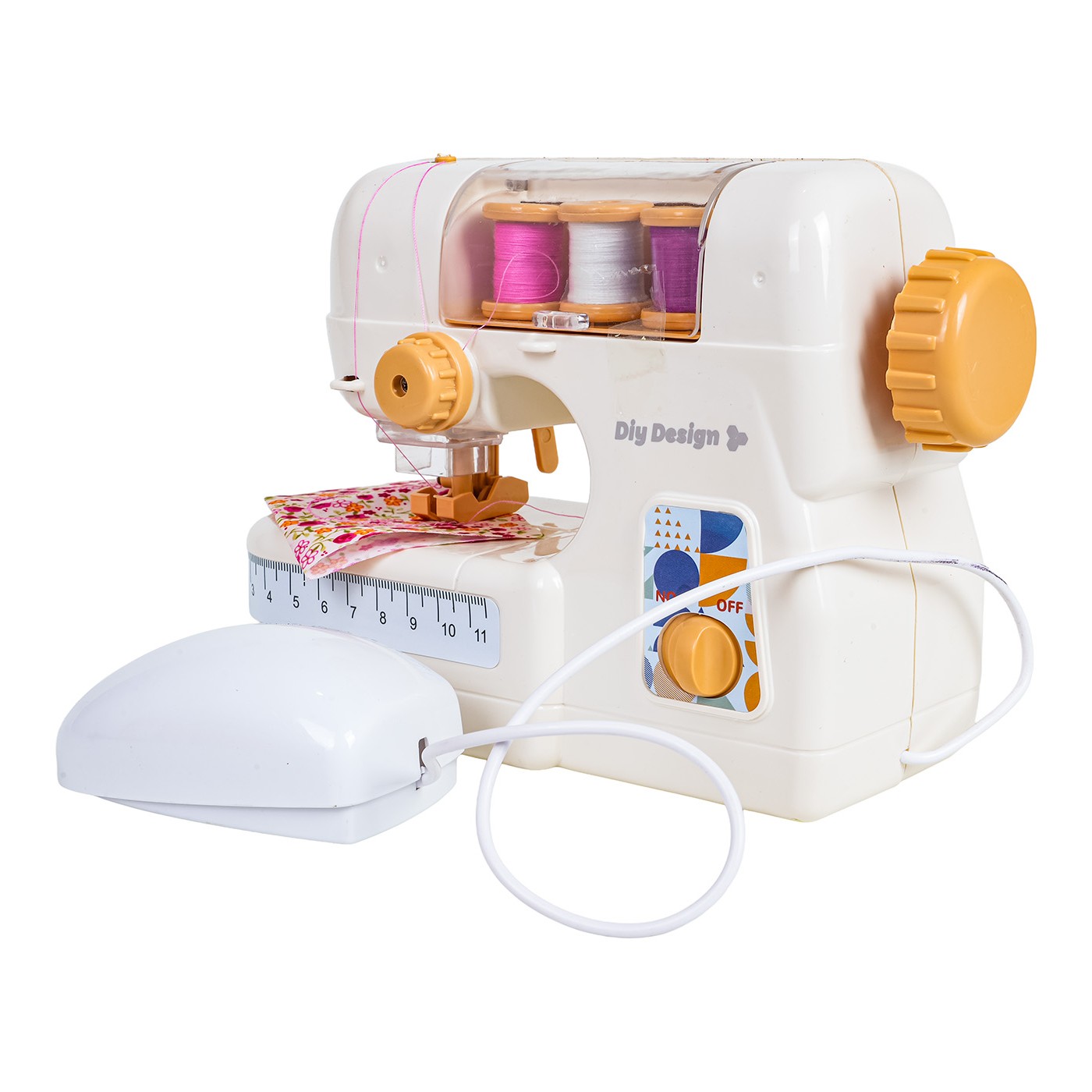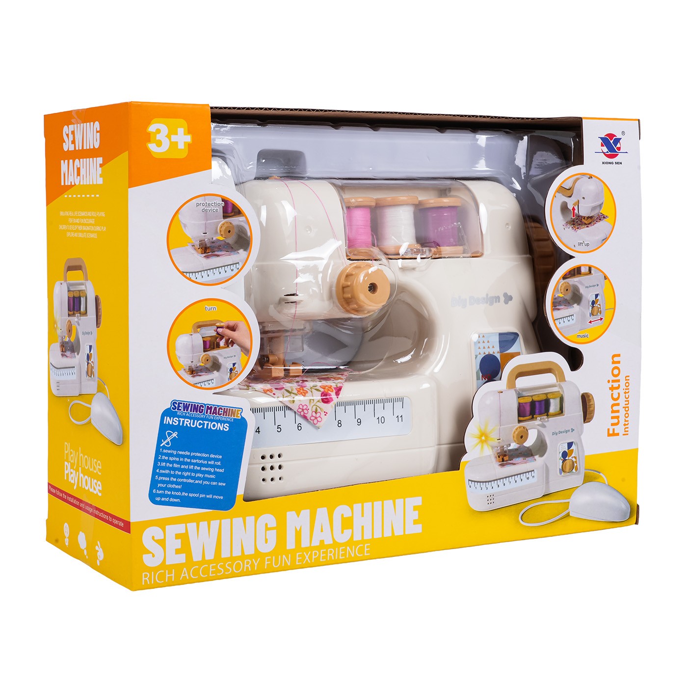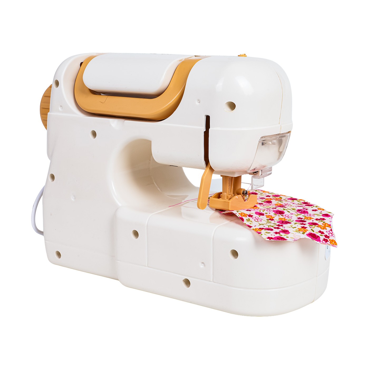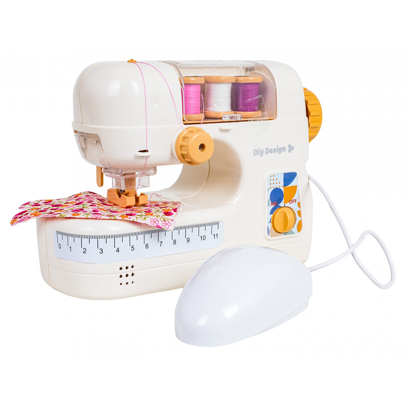 Interaktívny šijací stroj so zvukovými a svetelnými efektmi pre deti od troch rokov. Táto hračka je vyrobená z odolných materiálov a je bezpečná pre deti. Stroj má zabudovanú ihlu, ktorá zabraňuje zraneniu. Hračka je vybavená praktickou myšou na aktiváciu stroja, zdvíhačom ihly a zdvíhačom prítlačnej pätky. Počas prevádzky stroja svieti kontrolka a počuť zvuky šitia. Sada obsahuje aj tri cievky nití a kúsok látky. Hra so strojom podporuje rozvoj koordinácie oko-ruka a kreativity. Stroj je napájaný 4 x 1,5 V AA batériami (nie sú súčasťou balenia).