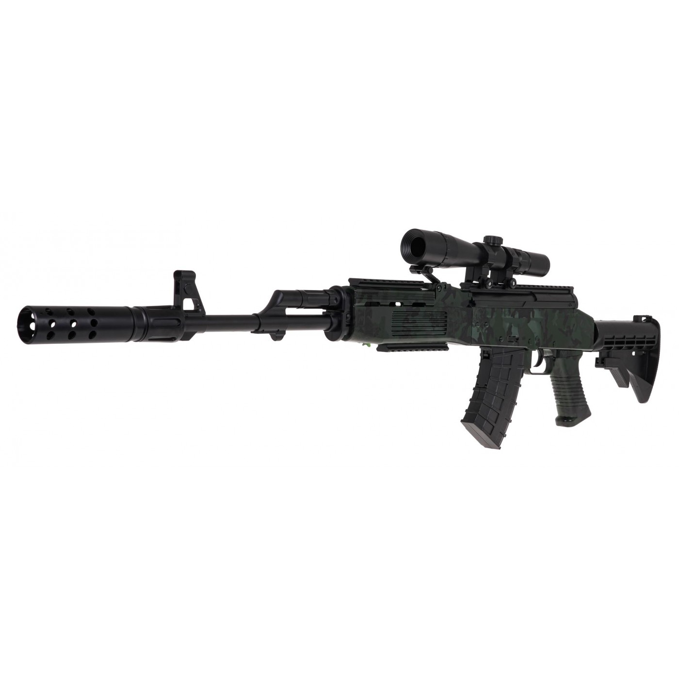 - hračkárska puška SKS s príslušenstvom, - možnosť inštalácie pohyblivých častí, ako je hlaveň, tlmič, zásobník, pažba, - možnosť inštalácie hľadáčika s lupou a nastavením zoomu, - manuálny alebo automatický režim snímania, - sada obsahuje vrecúško s hydrogélovými guličkami, - hydrogélové guličky pri náraze prasknú a ich použitie je bezpečné, - verná reprodukcia skutočnej pušky, - určené pre deti od 14 rokov, - priložený montážny návod. |
