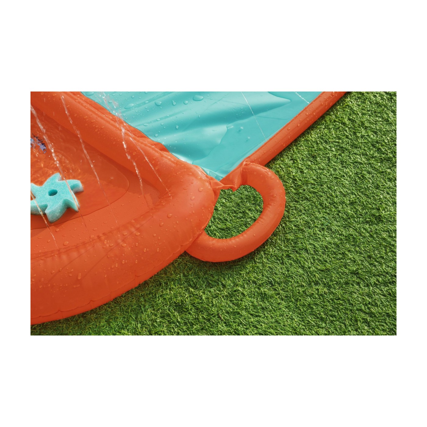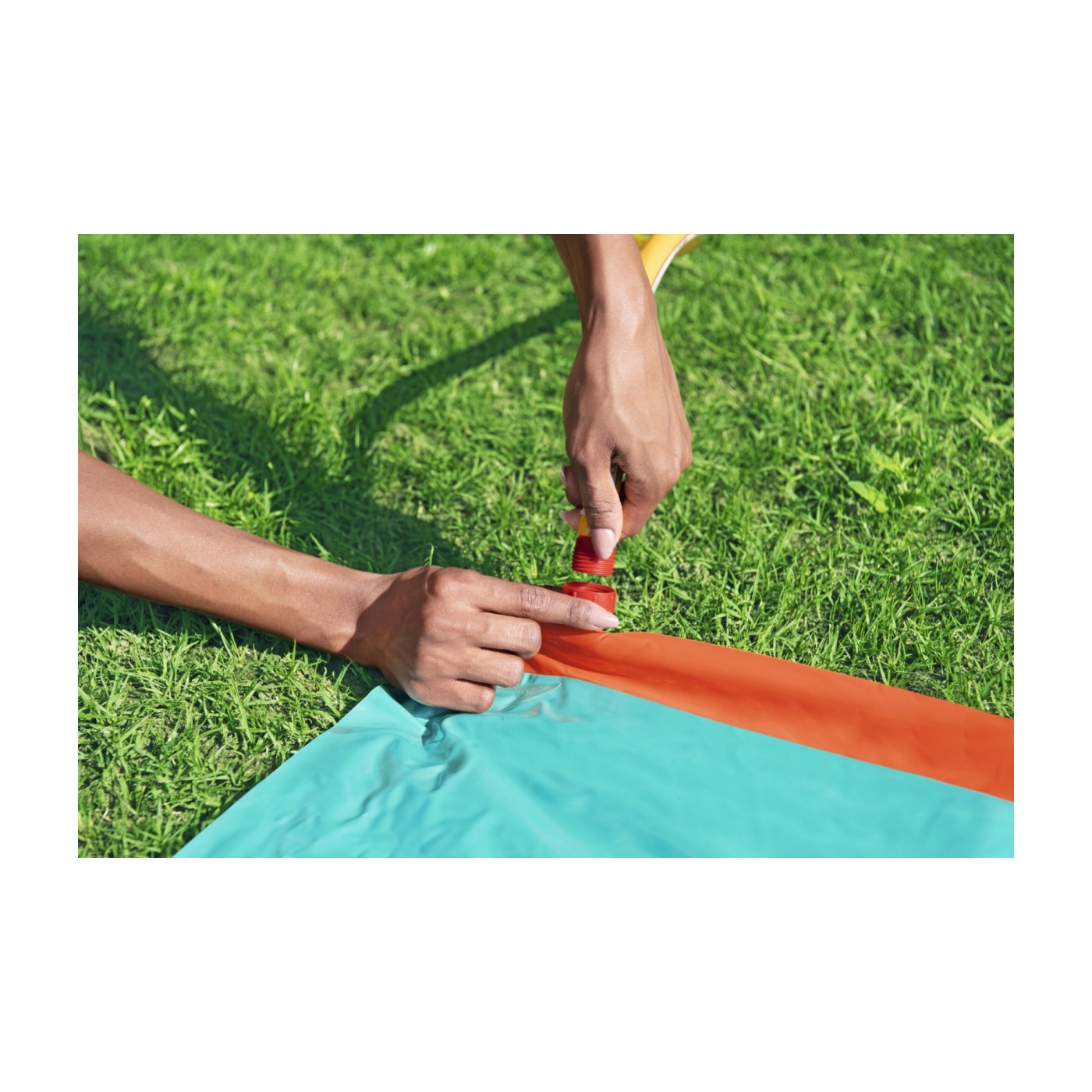 | * Zawór spustowy * Żadne przybory nie są potrzebne. Podłącz przejściówkę do węża ogrodowego i ZJEŻDŻAJ! * 4.88-metrowa zjeżdżalnia z dwoma torami jest idealna do zawodów i zabawy w grupie * Woda spływa do basenu zapewniając duży rozprysk na koniec zjazdu * Wbudowane spryskiwacze zapewniają efekt kaskady i utrzymują śliską powierzchnię torów | |