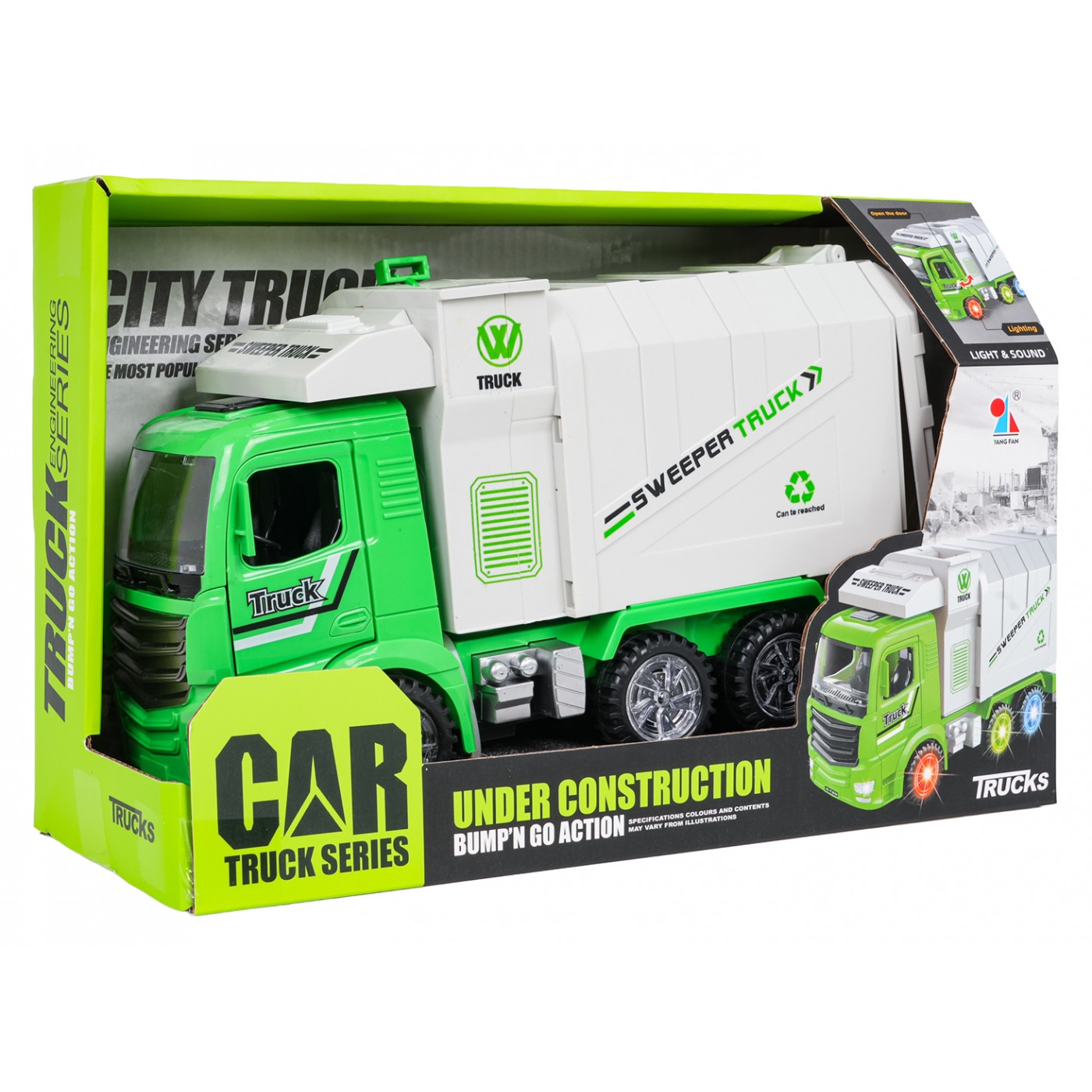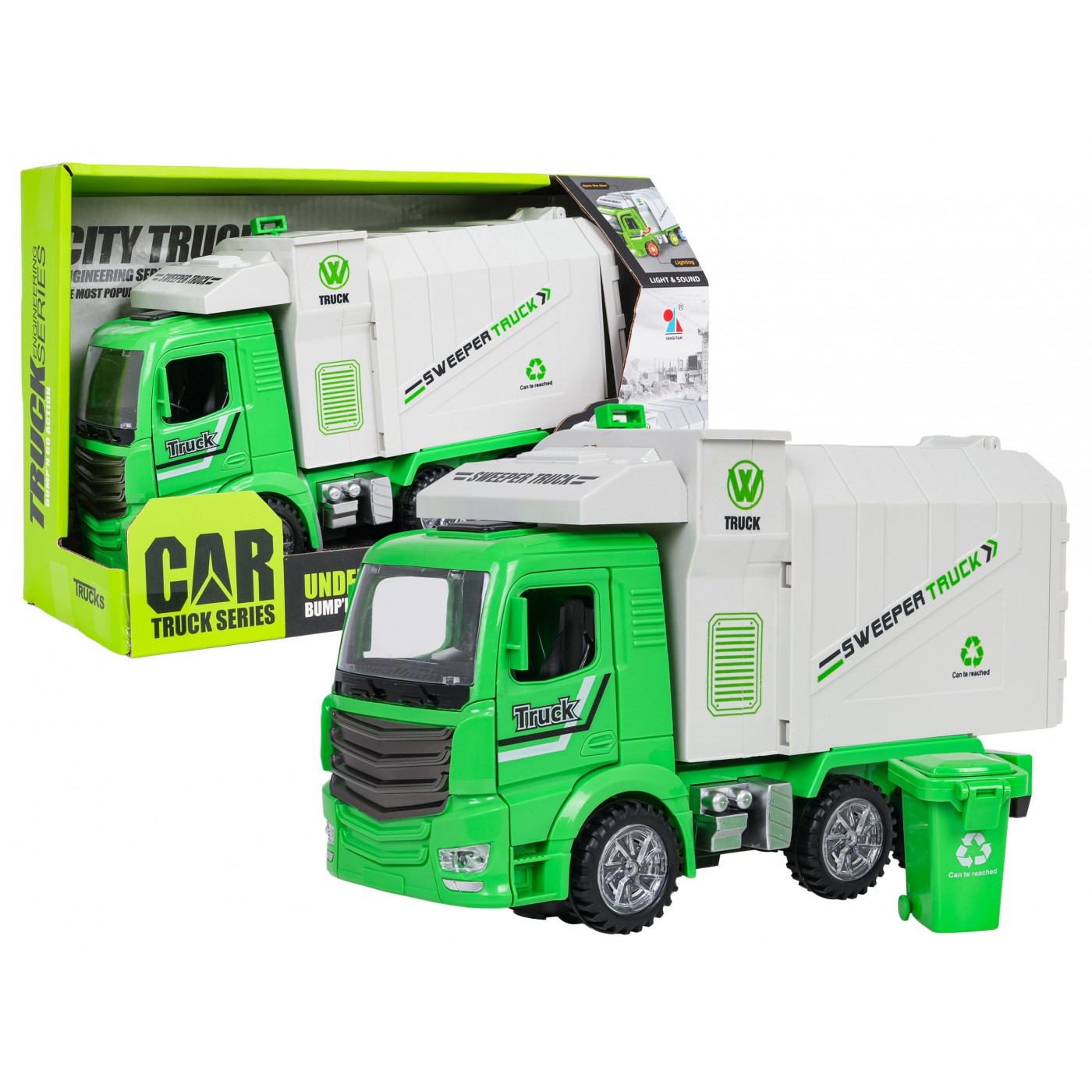 Smetiarske auto so svetlami a zvukmi zelené