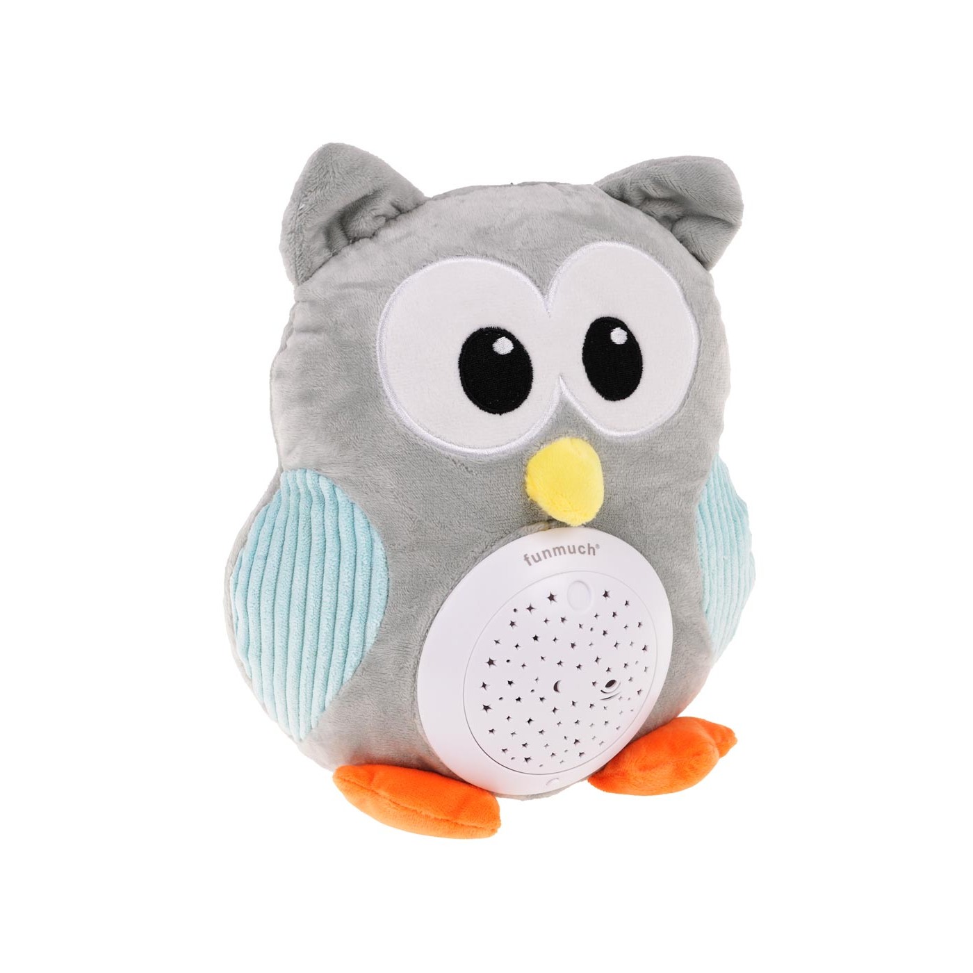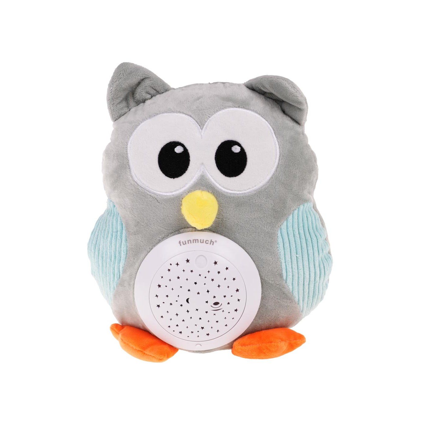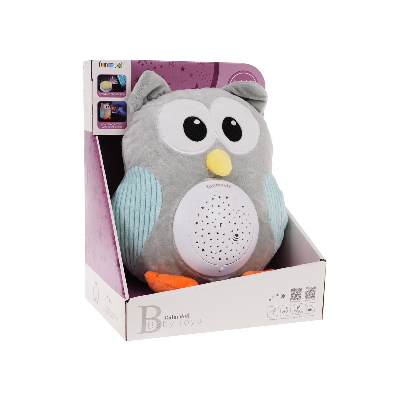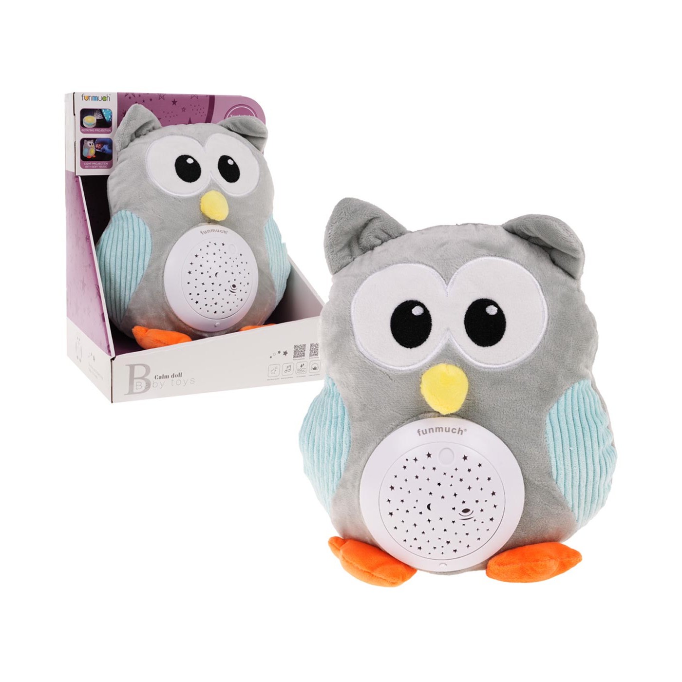 Plyšová veľká sova so zabudovaným projektorom a hracou skrinkou je zmyslová hračka pre deti od prvých dní života. Mäkký, na dotyk príjemný maskot má v brušku modul, ktorý produkuje skvelé zvuky a efekty. Modul je odnímateľný a sovičku je možné prať v práčke, takže bude vždy čistá a voňavá. Modul je napájaný 3 x AA 1,5V batériami (nie sú súčasťou balenia). Funkcie modulu: