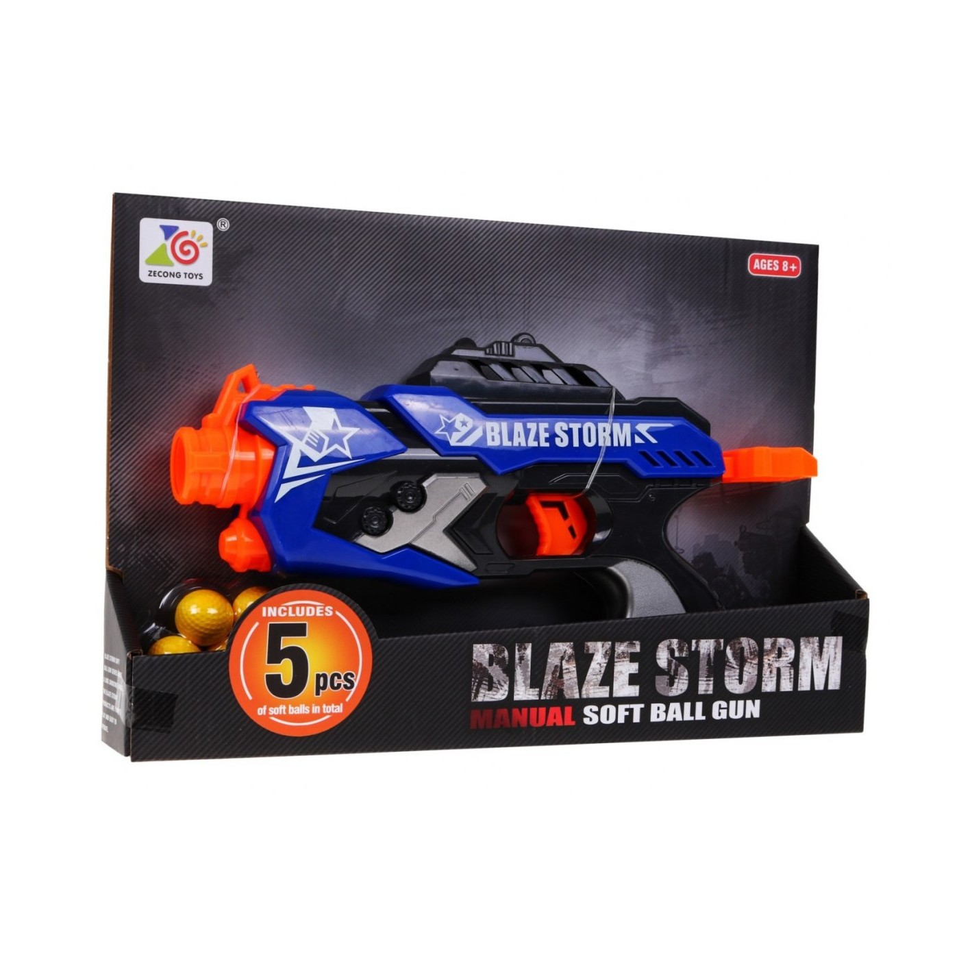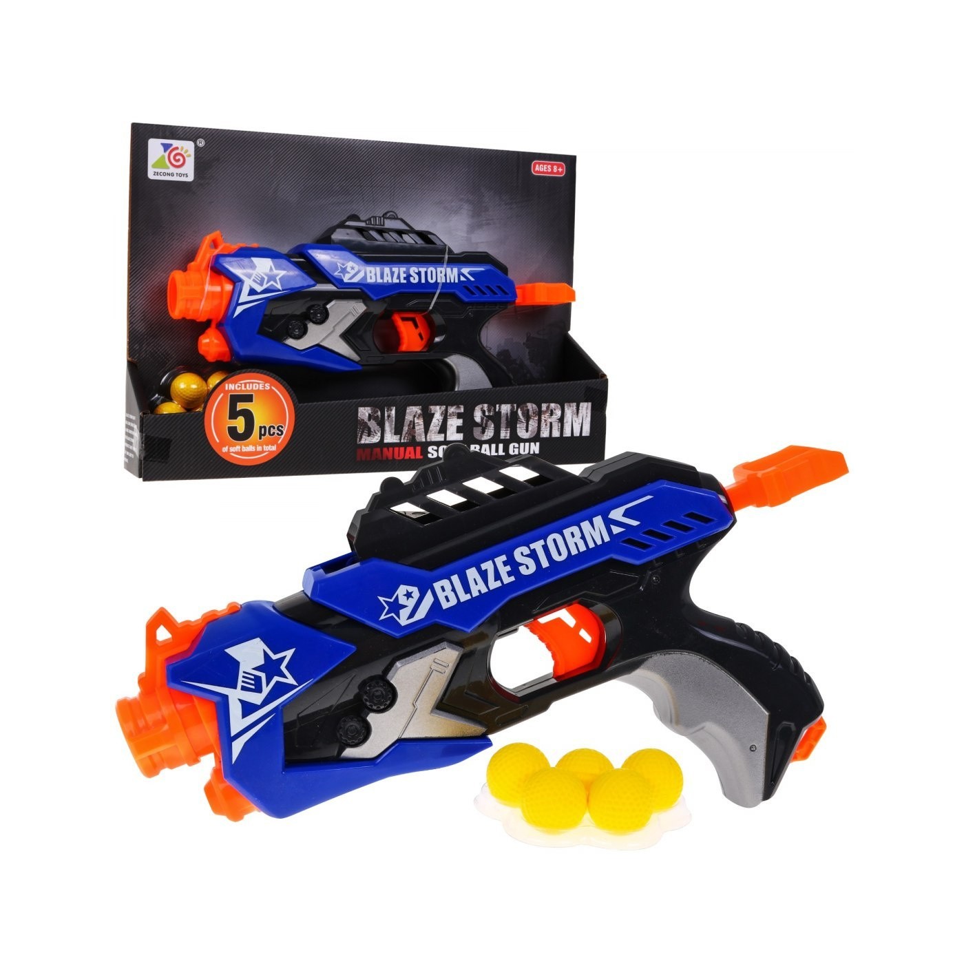 Pružinová Pištoľ pre deti 8+ Blaze Storm 5 nábojov Guľôčky z peny + Ručný mechanizmus