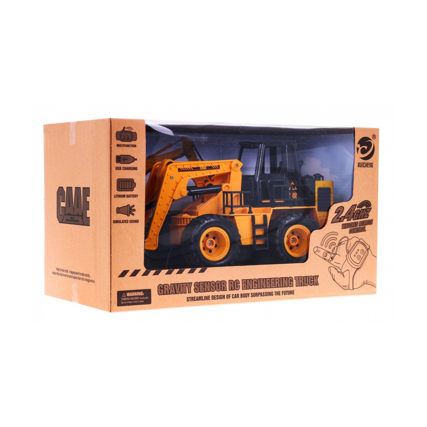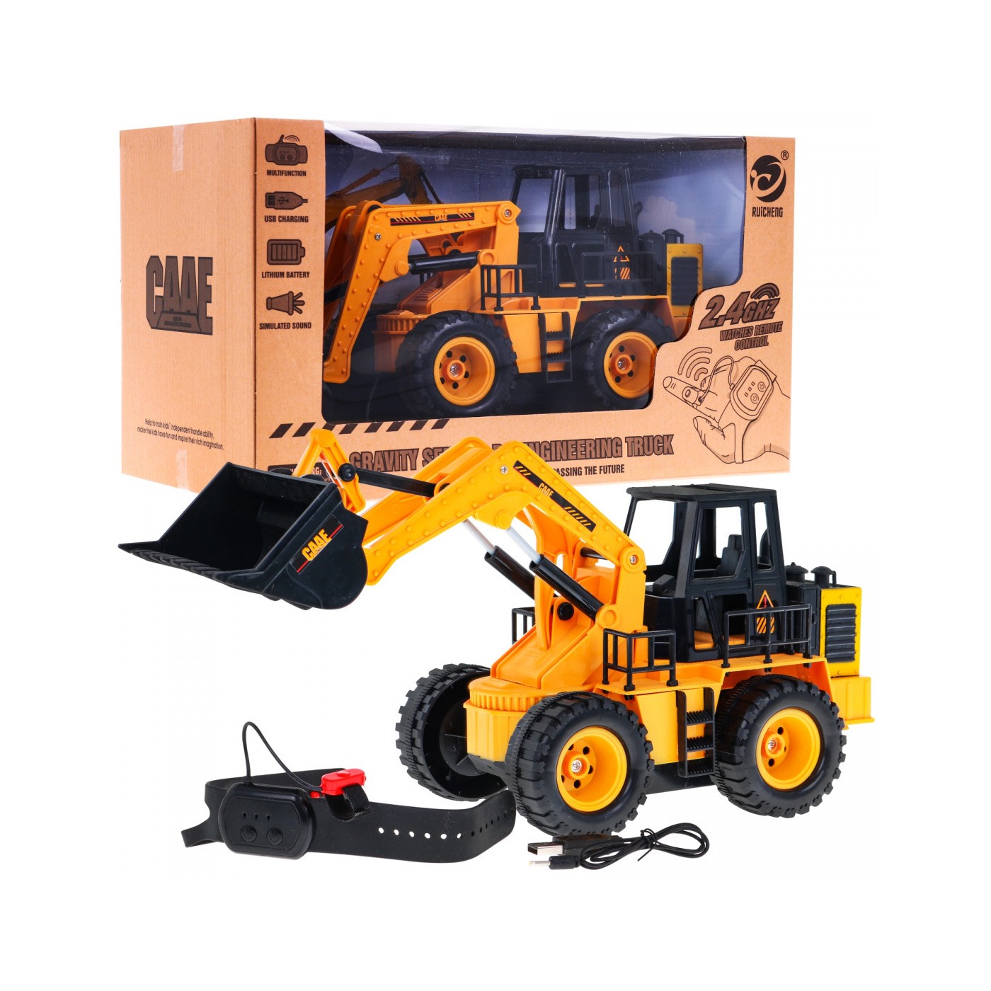 | Funkcje | - jazda tył i przód, - skręt w prawo i lewo, - ruchoma łyżka w górę i w dół, - odgłosy budowy, - praca na falach 2,4 GHZ. |
