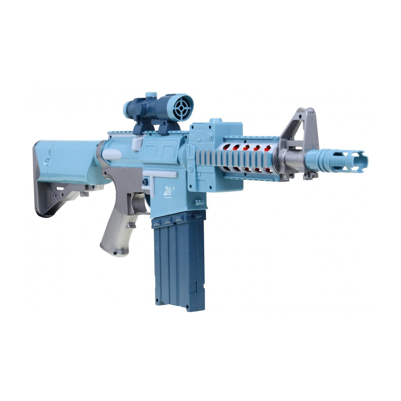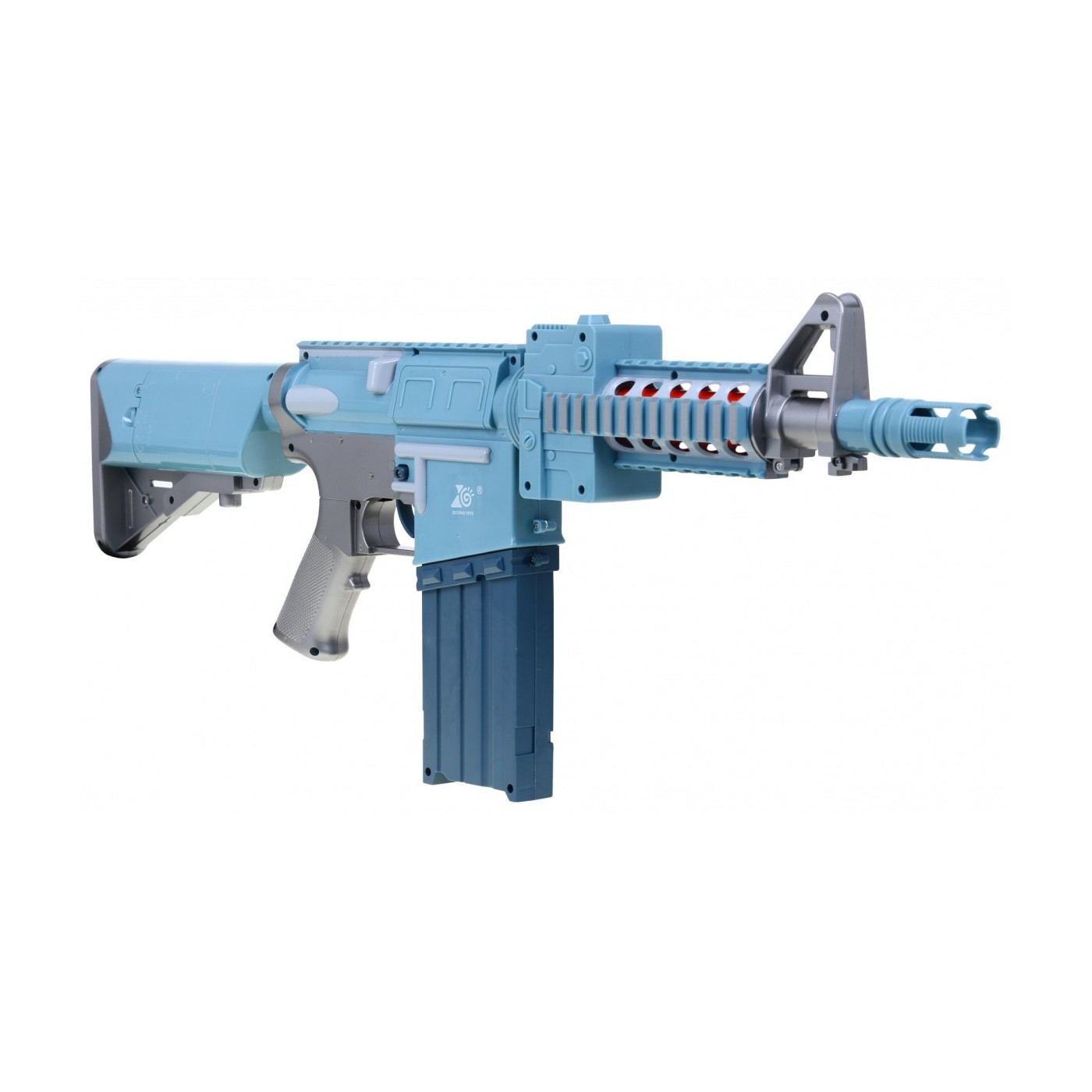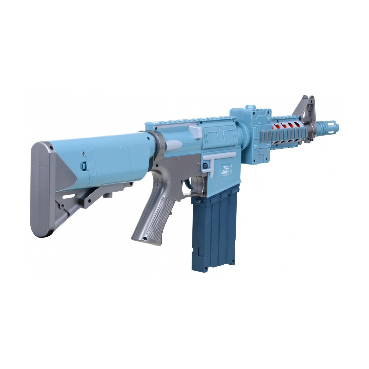 | | Typ karabinku – wyrzutnia kolbowa, magazynowa, pełny elektryczny automat. Typ ładowania – magazynek ładowany od dołu. Pojemność magazynku - 10 sztuk. Mechanizm napędowy wyrzutni – pełny, automatyczny, elektryczny kompresor zasilany 5 bateriami 1,5V typ AA (brak w zestawie). Mechanizm spustowy - strzały pojedyncze (naciśniecie spustu - wyrzut 1 pociski). Blokada języka spustu - przełącznik ON-OFF blokuje spust. Szybkostrzelność – 3 strzały na sekundę. Celownik taktyczny - imitacja celownika optycznego (można go zdemontować). Lufa - długa lufa posiadająca dwie ruchome rolki stabilizujące wylot pocisku. Zasięg - ok. 10 metrów. |