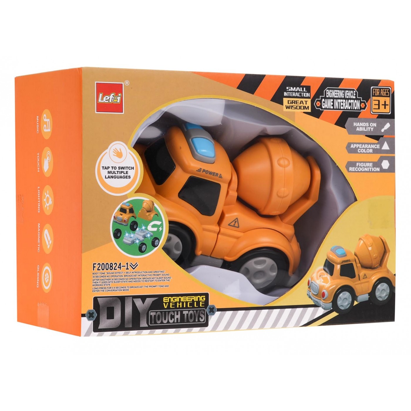 Interaktívne stavebné autíčko, miešačka na betón s magnetmi pre deti od 3 rokov. Autíčko je vyrobené z najkvalitnejšieho plastu a má zvukové a svetelné efekty. Po stlačení kapoty vozidla budeme počuť zvuky domiešavača betónu pri práci, detský smiech či veselé pesničky. Zvukové efekty bude sprevádzať blikanie farebných svetiel na vrchnej časti vozidla. Vozidlo dokážeme rozobrať na prvé komponenty bez použitia akéhokoľvek náradia. Jednotlivé prvky majú magnety, vďaka ktorým sa ľahko a natrvalo spájajú navzájom. Hračka je napájaná 3 x AG13 batériami (sú súčasťou balenia).