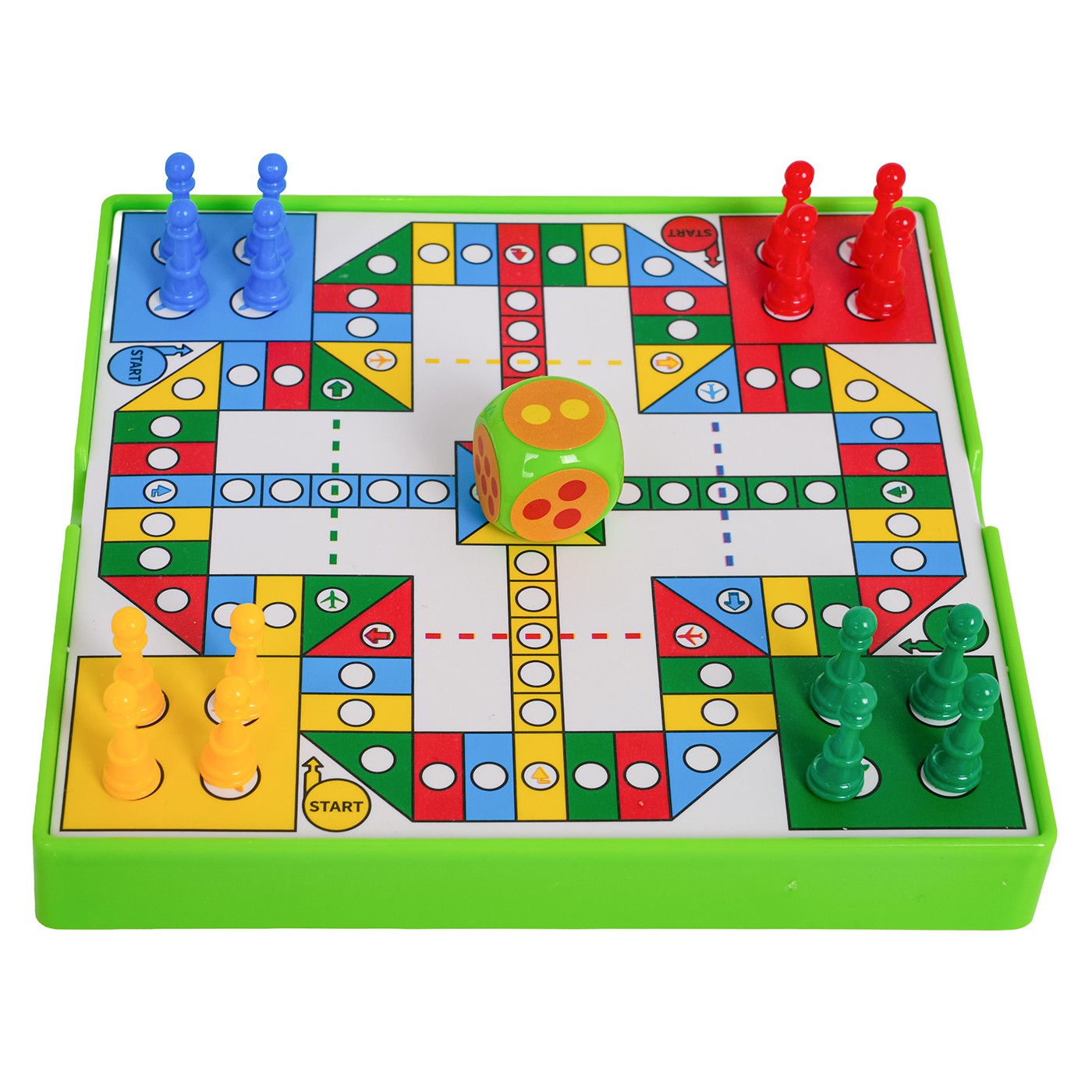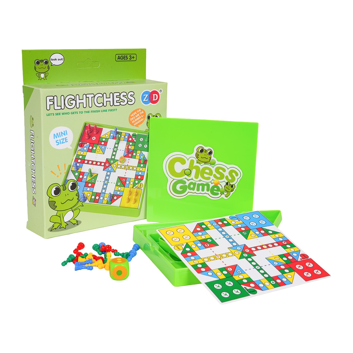 Spoločenská hra Ludo the Frog je určená pre deti od troch rokov. Vďaka kompaktným rozmerom si ju môžete ľahko vziať kamkoľvek so sebou. Pravidlá hry: Každý hráč dostane štyri figúrky rovnakej farby. Potom každý hráč hodí kockou. Hru začína hráč s najvyšším súčtom. Figúrka sa môže umiestniť na hraciu dosku až po hode 6. Prvý hráč, ktorý hodí šestkou, hodí znova a posunie svoju figúrku o počet políčok určený kockou. Vždy, keď hráč hodí 6, môže do hry vložiť ďalšiu figúrku alebo posunúť figúrky na hracej doske. Ak figúrka dopadne na figúrku iného hráča, figúrka je zajatá a vrátená na štartovacie políčko. Ak hráč dopadne na políčko, ktoré už je obsadené jeho figúrkou, figúrky tvoria blok a súper ich nemôže pohnúť. Vyhráva hráč, ktorý ako prvý umiestni všetky svoje figúrky na cieľovú čiaru.