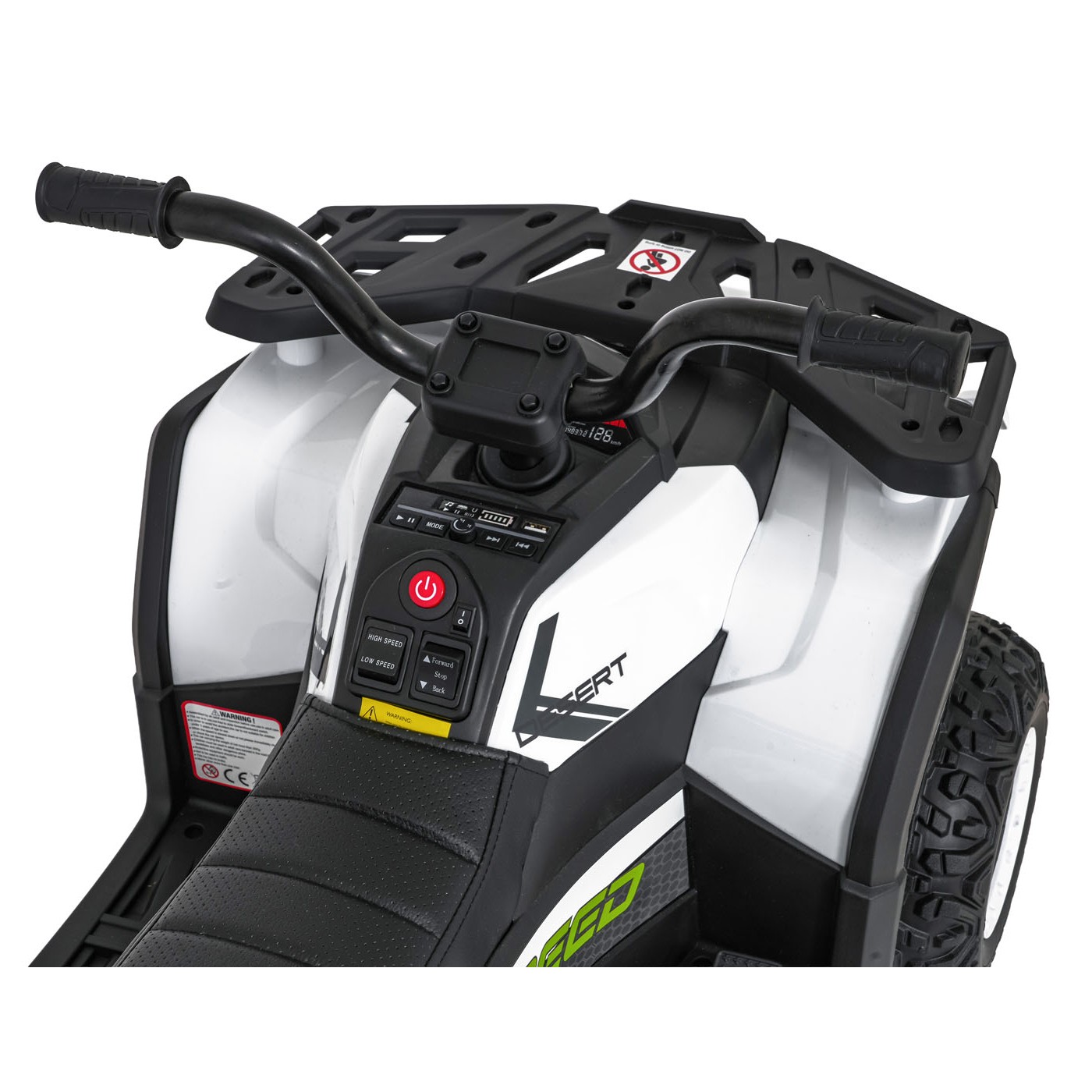 Quad ATV 2.4GHz na batériu pre deti Biely + Diaľkové ovládanie + Kolesá EVA + Rádio MP3 + Pomalý štart
