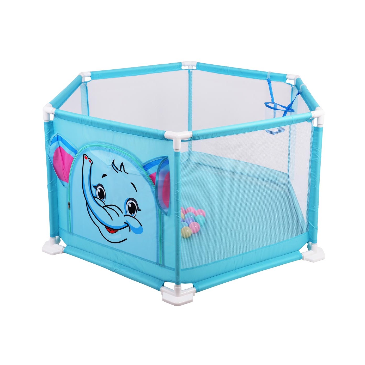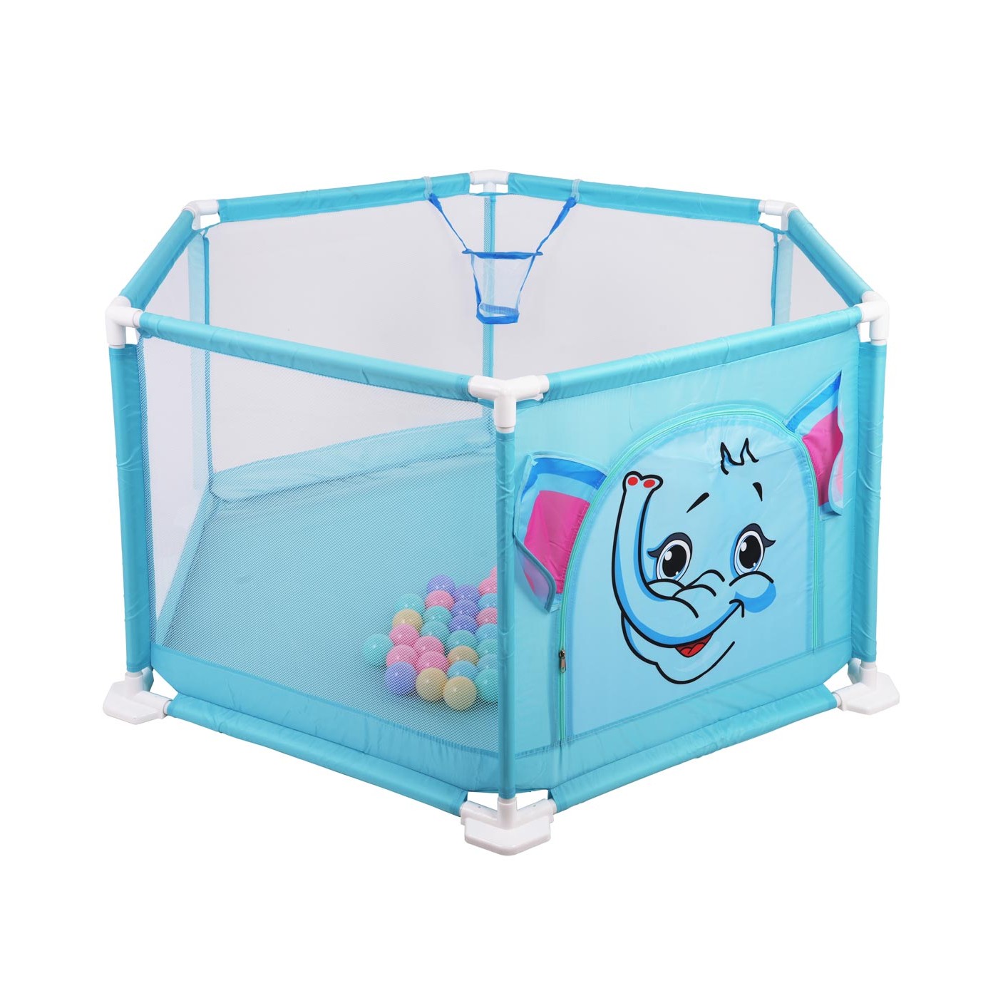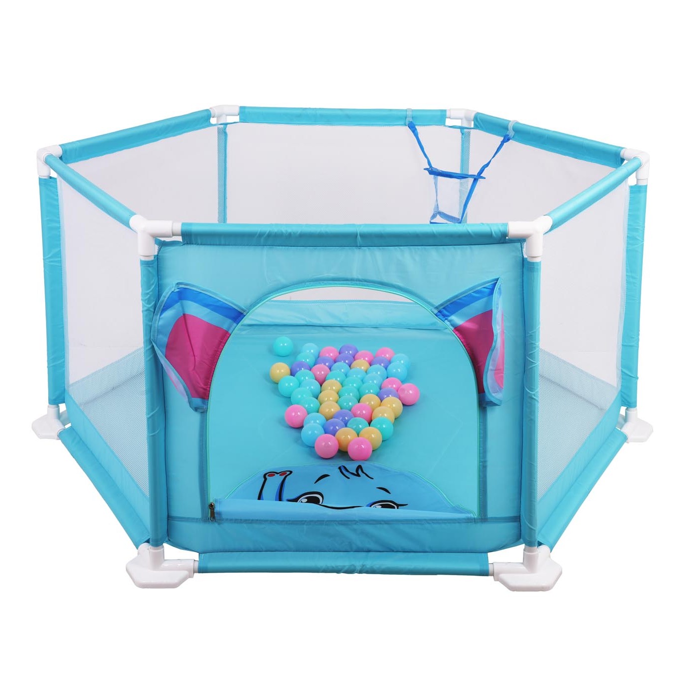 V ceně ohrádka s basketbalovým míčem a míči pro děti od 3 let. Ohrádka je lehká, takže ji lze rychle přemístit na požadované místo. Vhodné pro vnitřní nebo venkovní použití. Materiál, ze kterého je vyroben, se velmi snadno čistí a dezinfikuje. Ohrádka má 5 síťových stěn, takže můžeme dítě snadno pozorovat. Stěna s veselým slonem je na zip, takže vaše ratolest může volně vstupovat i odcházet. Na jedné ze stěn uvnitř je koš na míčky a sada obsahuje 50 míčků. Ohrádka je pro miminko naprosto bezpečná a stabilní.