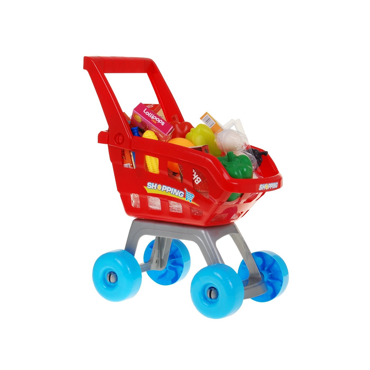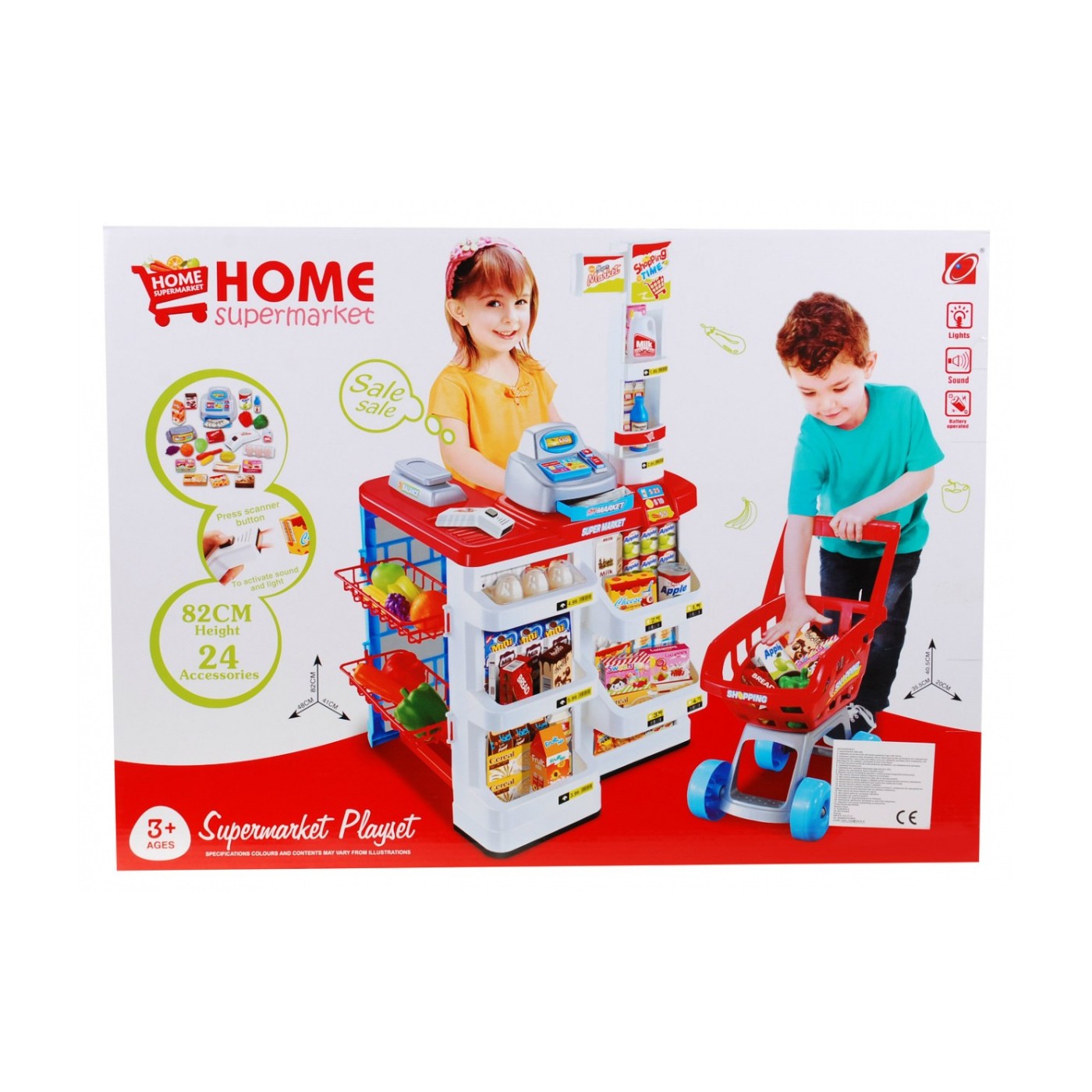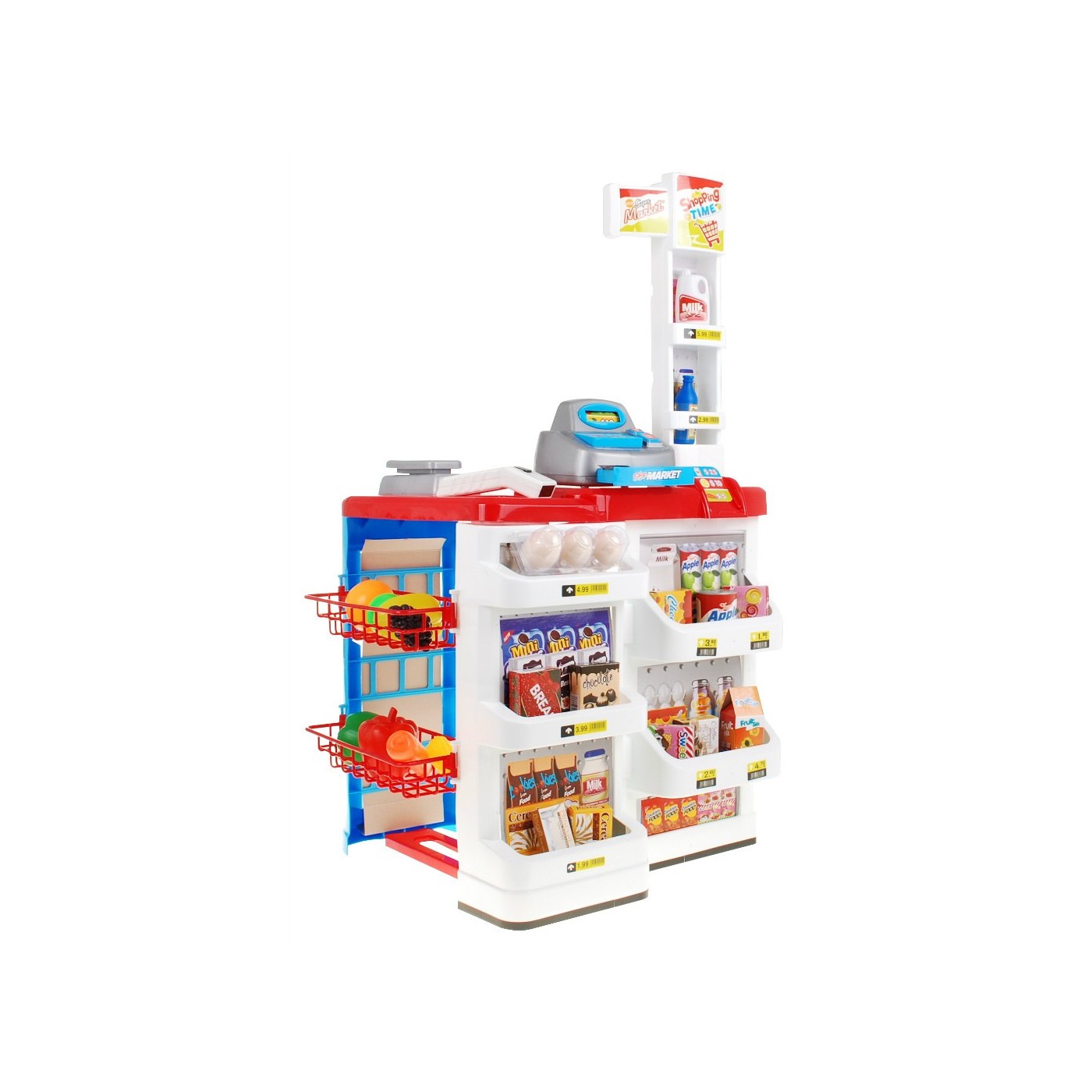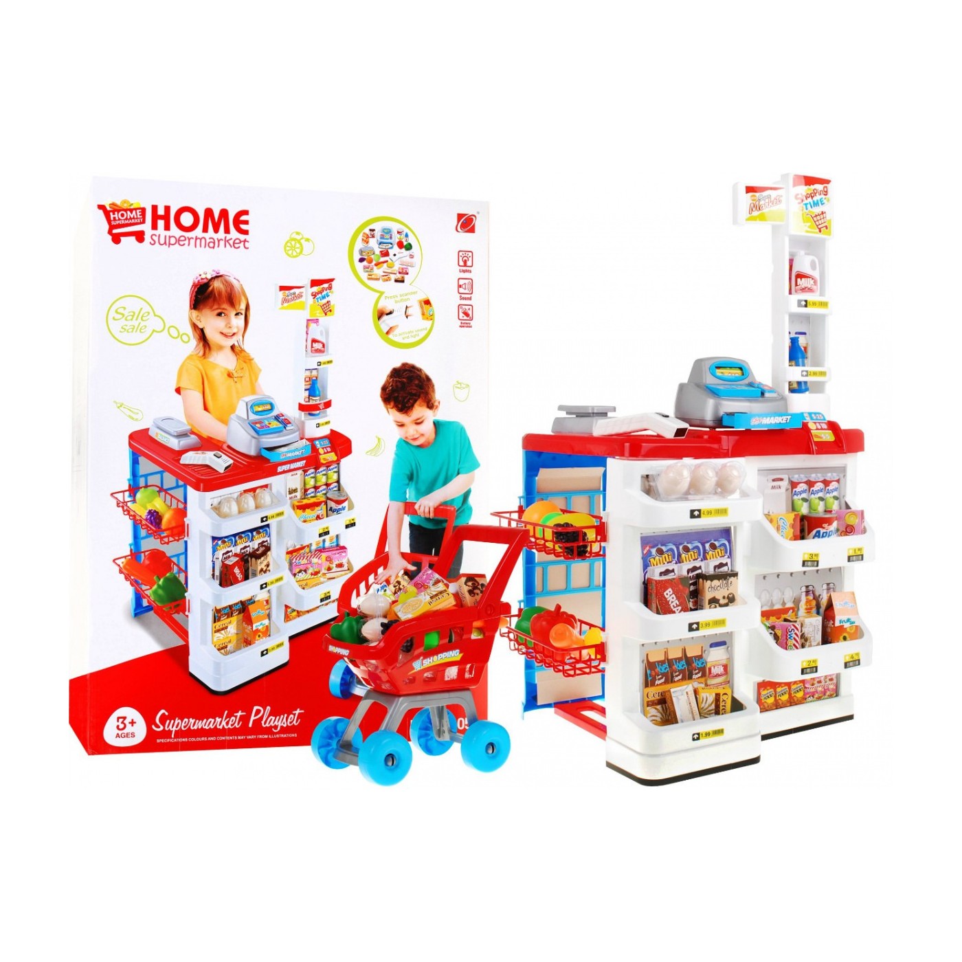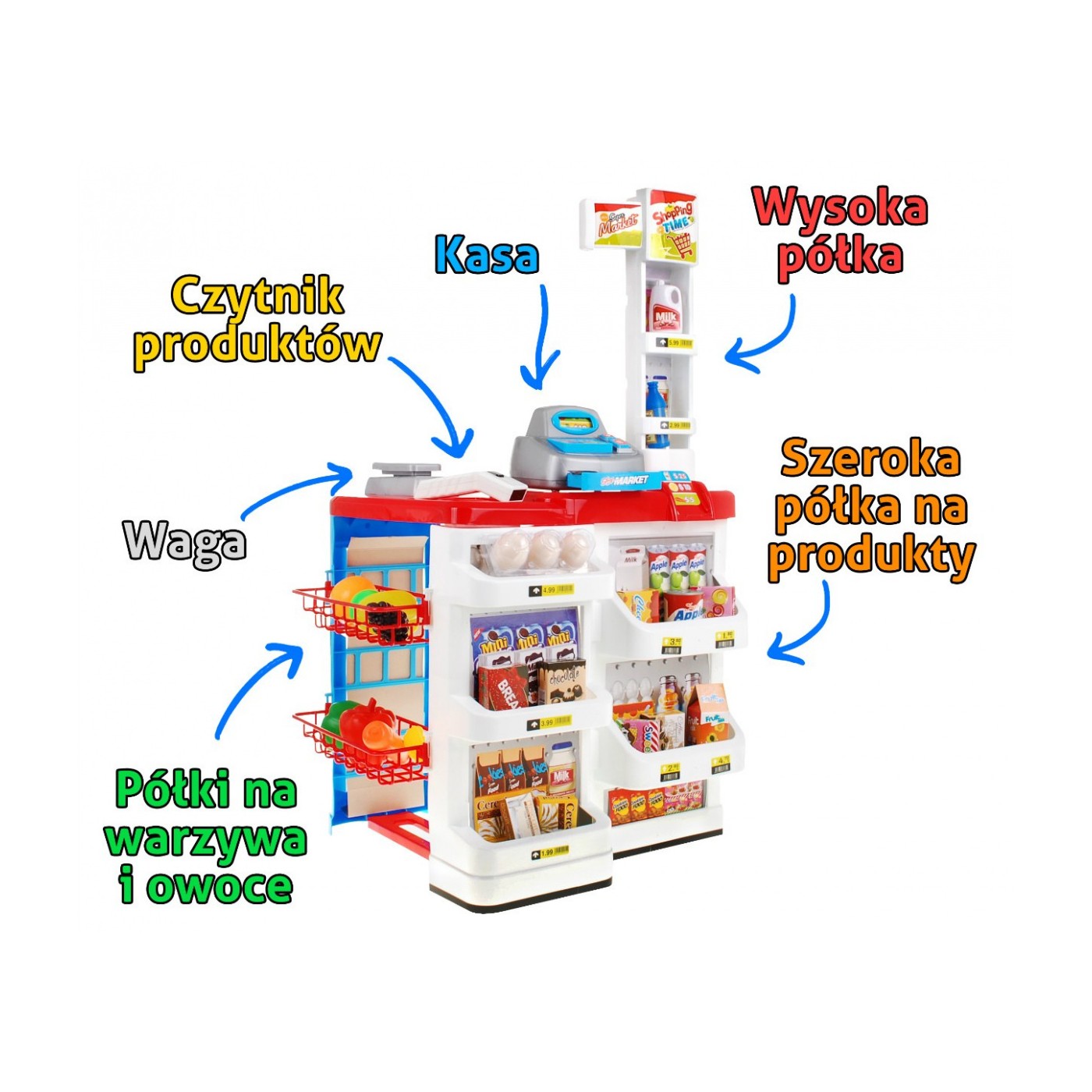 Supermarket pre deti 3+ Červený Hra v obchode 24 ks. Vozík + Tovar + Interaktívny skener