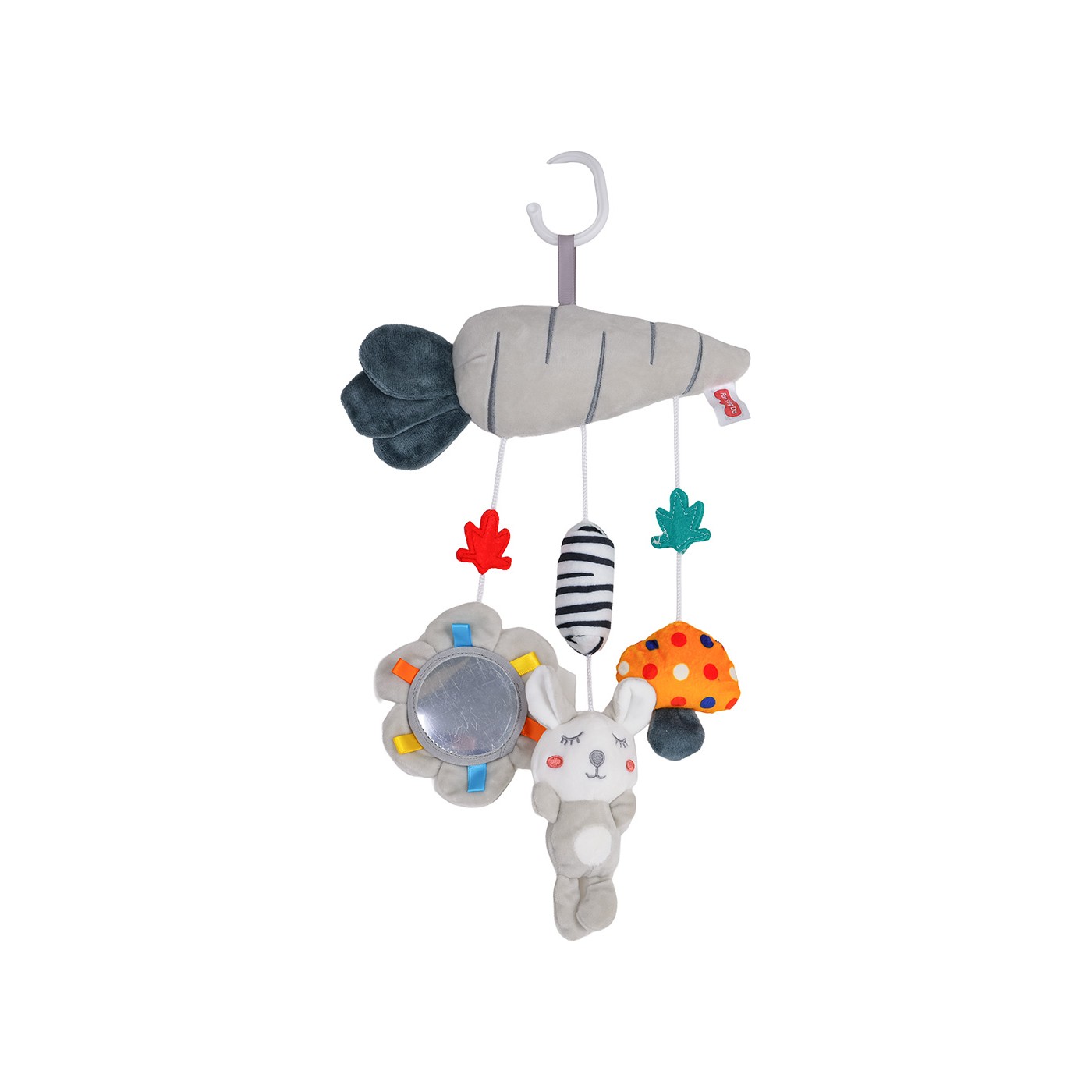 Vlastnosti: - vhodné pre deti od prvých dní života, - vyrobené z bezpečných, vysokokvalitných materiálov, - živé farby povzbudzujú dieťa, aby siahalo a chytalo, - vŕzgajúce prvky: huba, - šuštiace prvky: listy mrkvy, - eolské zvony, - bezpečnostné zrkadlo, - dá sa pripevniť na postieľku, kočík, autosedačku a pod. |