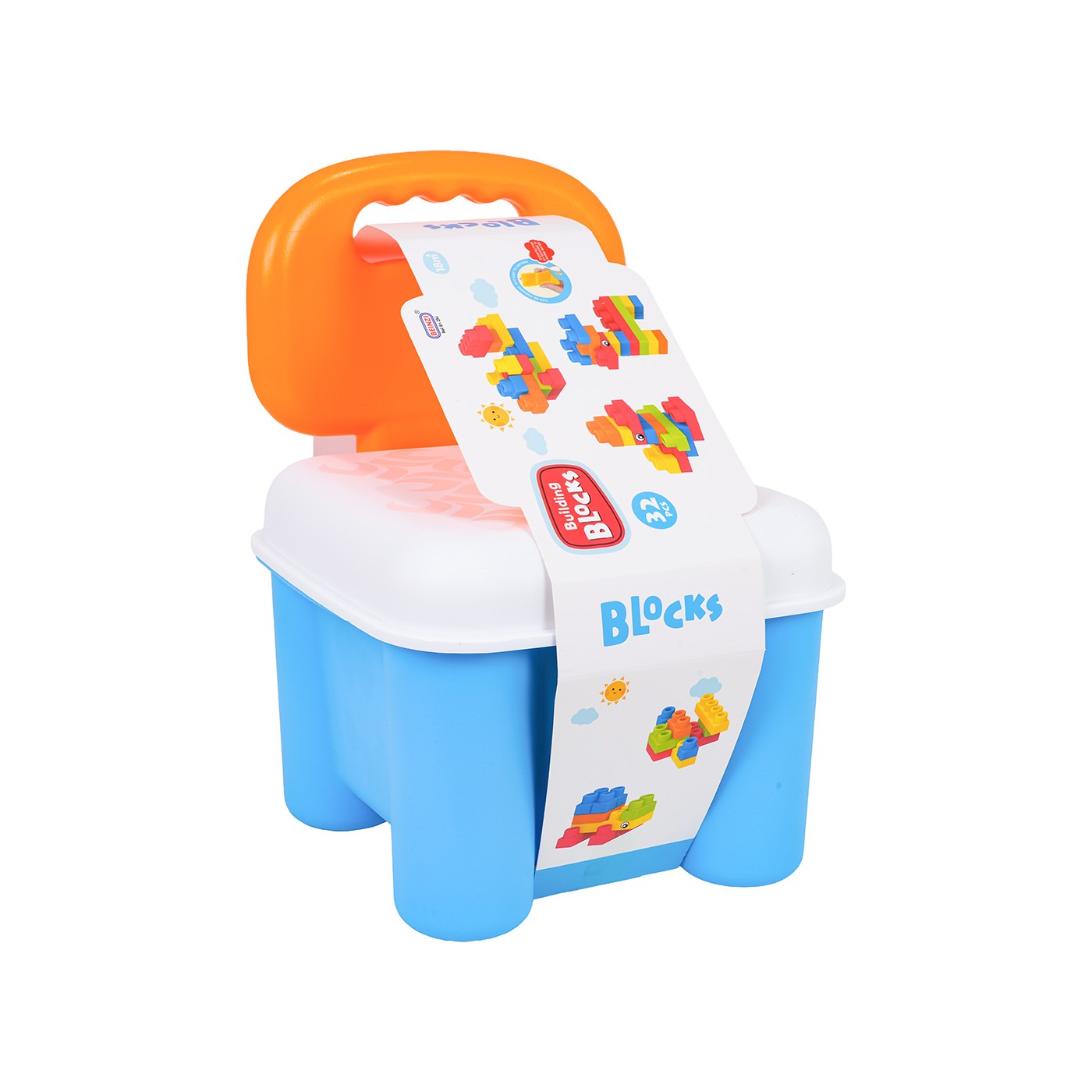 Sada farebných, mäkkých kociek s úložným priestorom v tvare stoličky pre deti od osemnástich mesiacov. Kocky sú vyrobené z bezpečného a ekologického PVC, sú ľahké a nemajú ostré hrany. Veľmi ľahko sa čistia a zachovávajú si farbu aj po umytí. Kocky sa dajú ohýbať a po ohnutí sa vrátia do pôvodného tvaru. Úložný priestor má operadlo, takže ho vaše dieťatko môže používať ako stoličku.