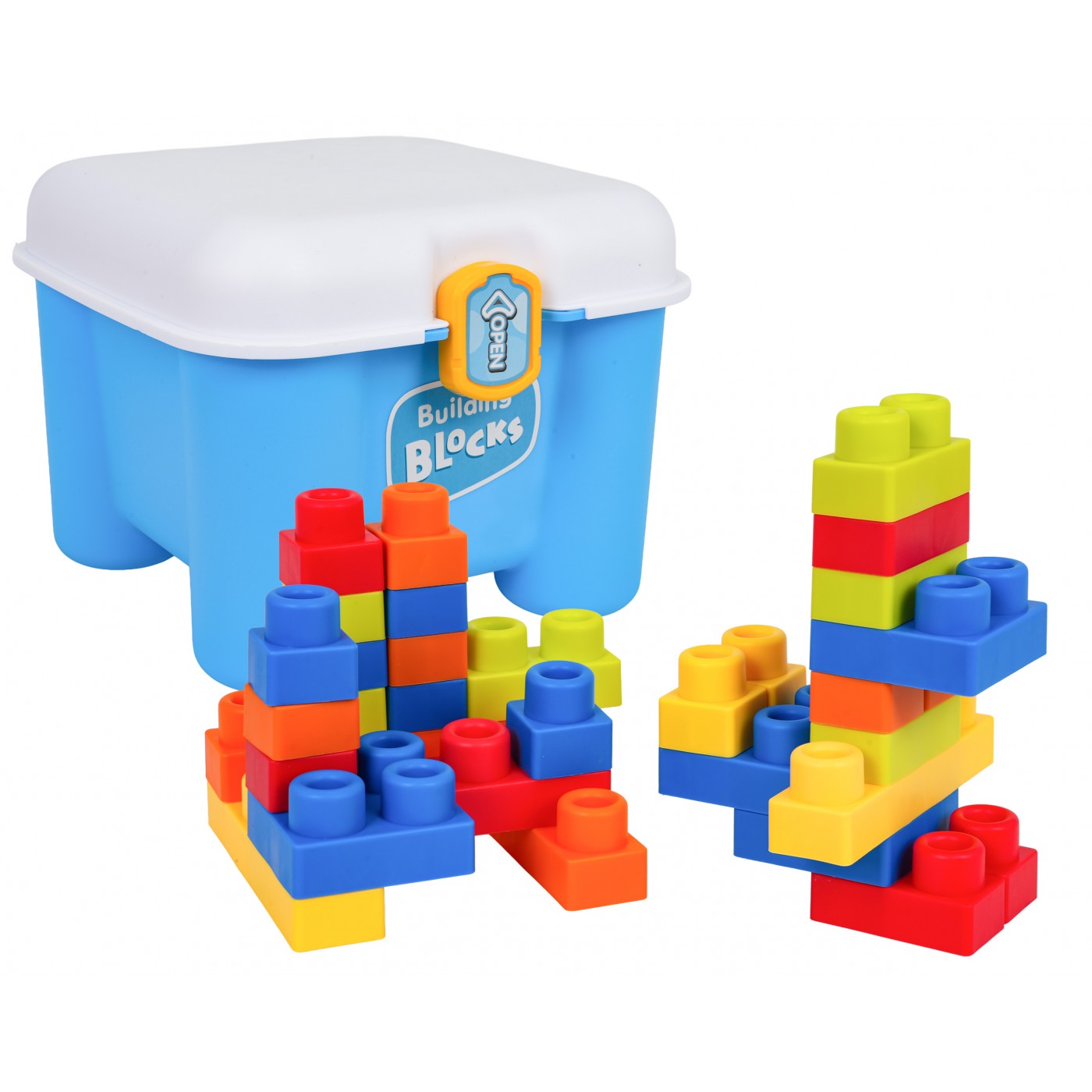 - 32-dielne bloky, - ozdobné nálepky, - obrázkové pokyny, - úložný priestor na kocky s operadlom. |