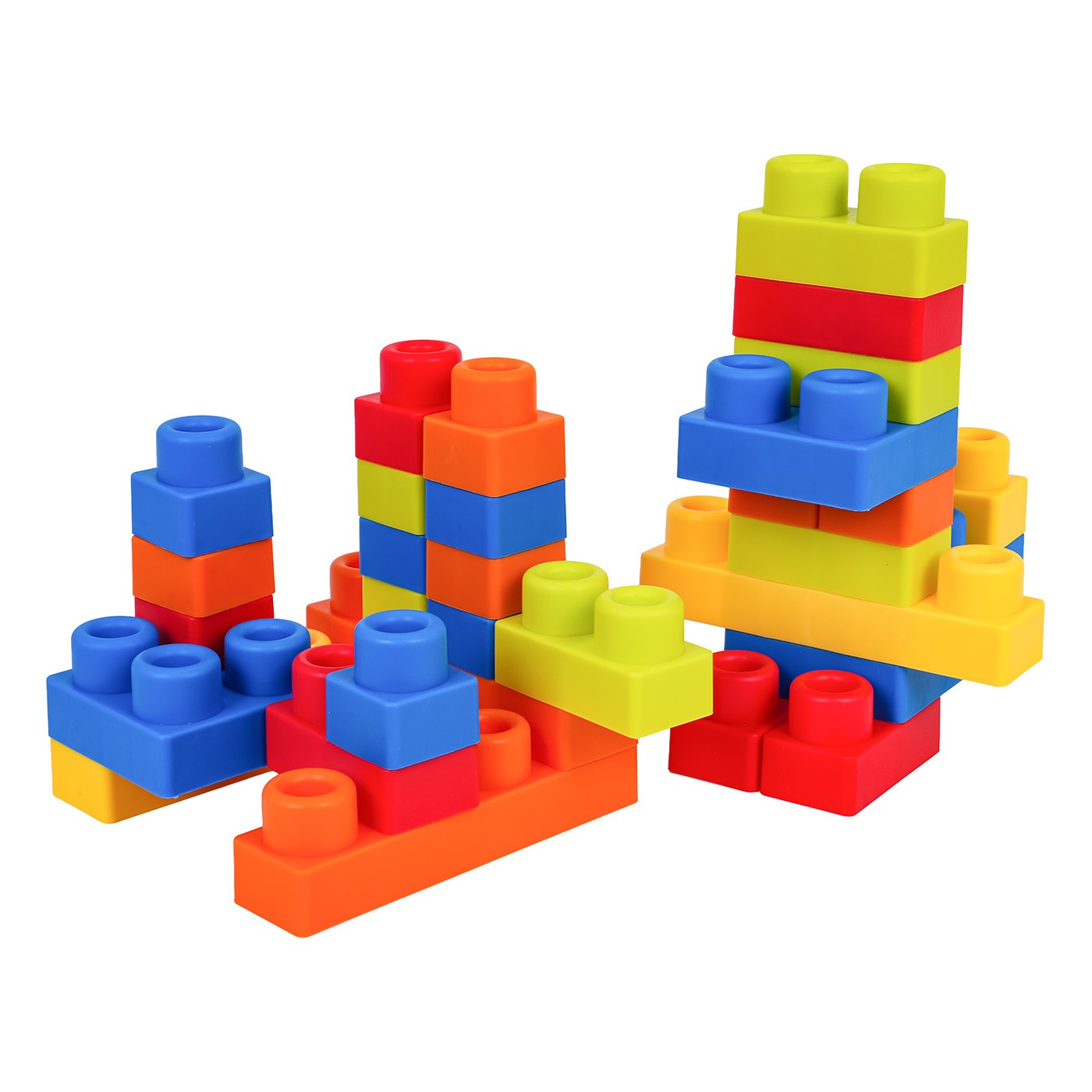 Funkcie sady: - určené pre deti staršie ako tri roky, - 32 položiek v sade, - vyrobené v živých farbách, ktoré priťahujú pozornosť dieťaťa a povzbudzujú k hre, - bloky sa ľahko čistia, po naparovaní nestrácajú farbu, - nemajú ostré konce, - dajú sa voľne ohýbať, - úložný priestor na kocky v tvare stoličky. |