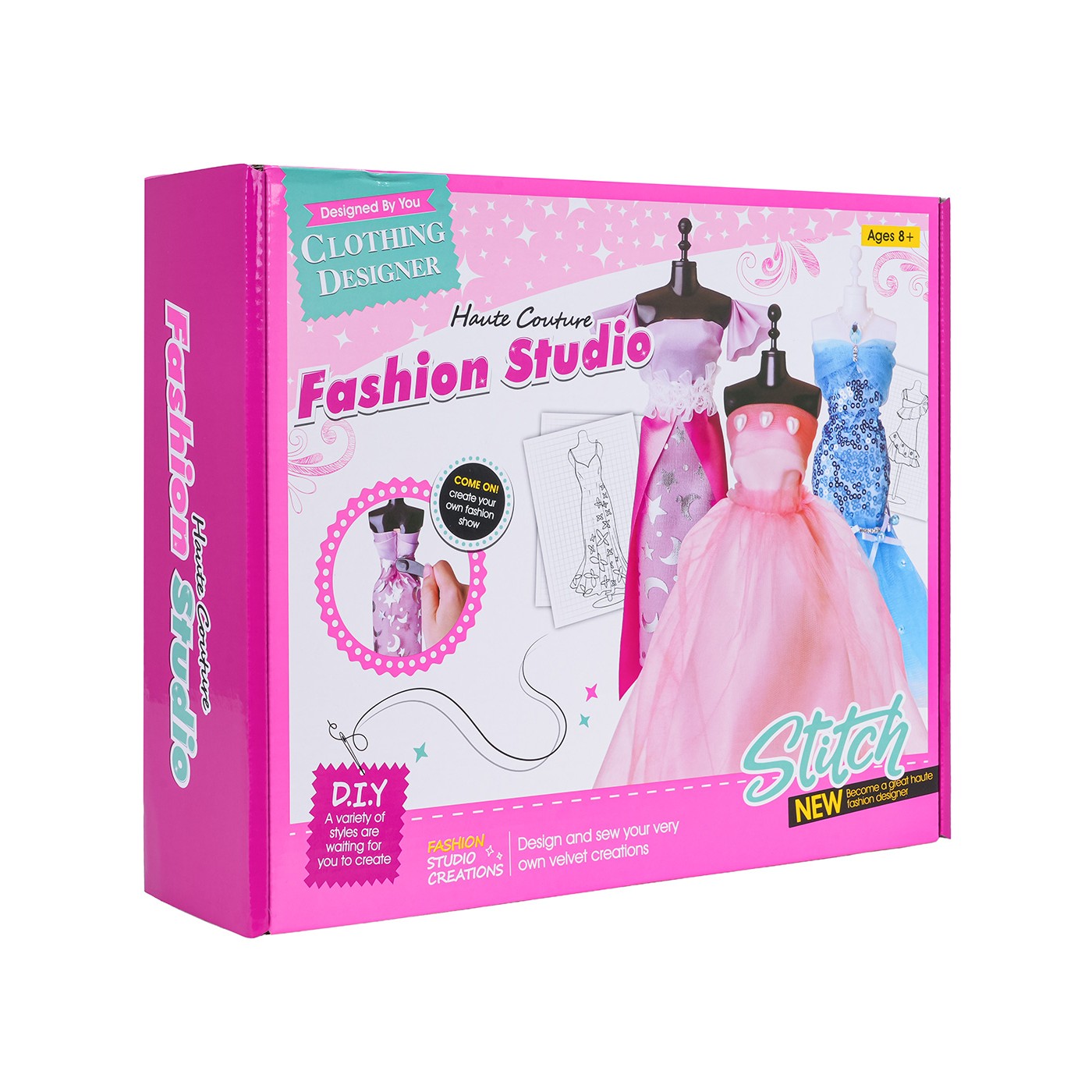 Kreatívna sada na navrhovanie šiat pre bábiky pre deti od ôsmich rokov. Sada obsahuje všetko, čo potrebujete na navrhnutie vysnívaného outfitu, od začiatku do konca. Obsahuje pravítko, pastelku, nožnice, farebné látky, stuhy, štítky na oblečenie, pásku, volániky a päť figurín. Sada zdokonaľuje manuálne zručnosti, rozvíja zmysel pre estetiku a rozširuje vaše obzory.